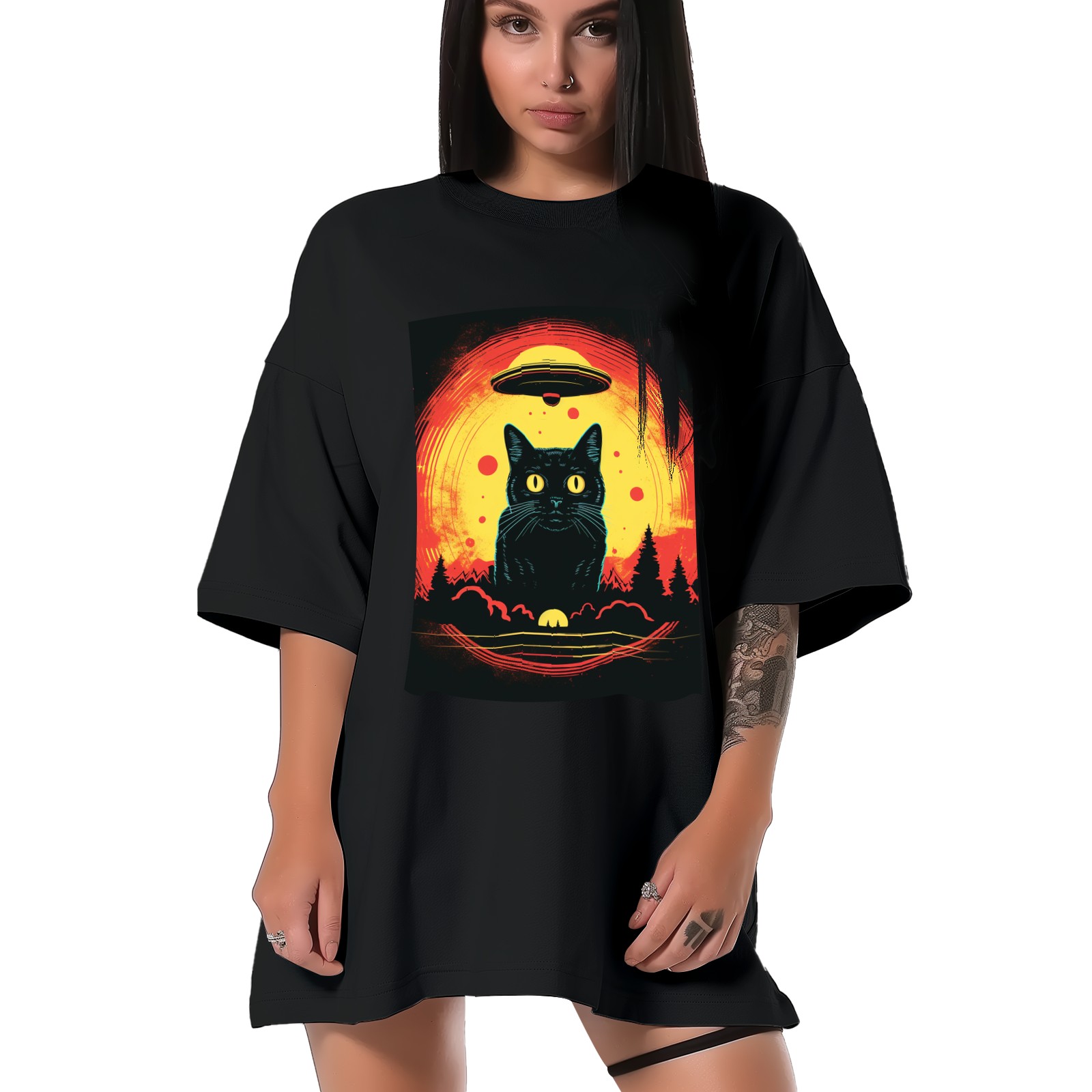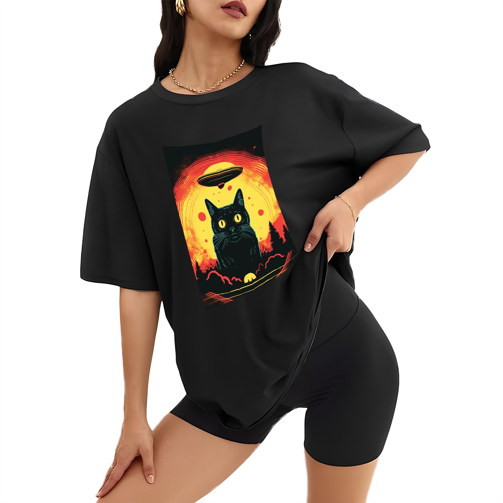 Plus Size Shirt for Women Black Tops for Women Short Sleeves Shirt for Women Retro Black Cat (20) T Shirt Crewneck Shirt for Women XS