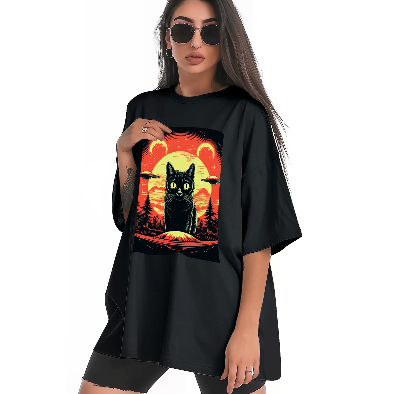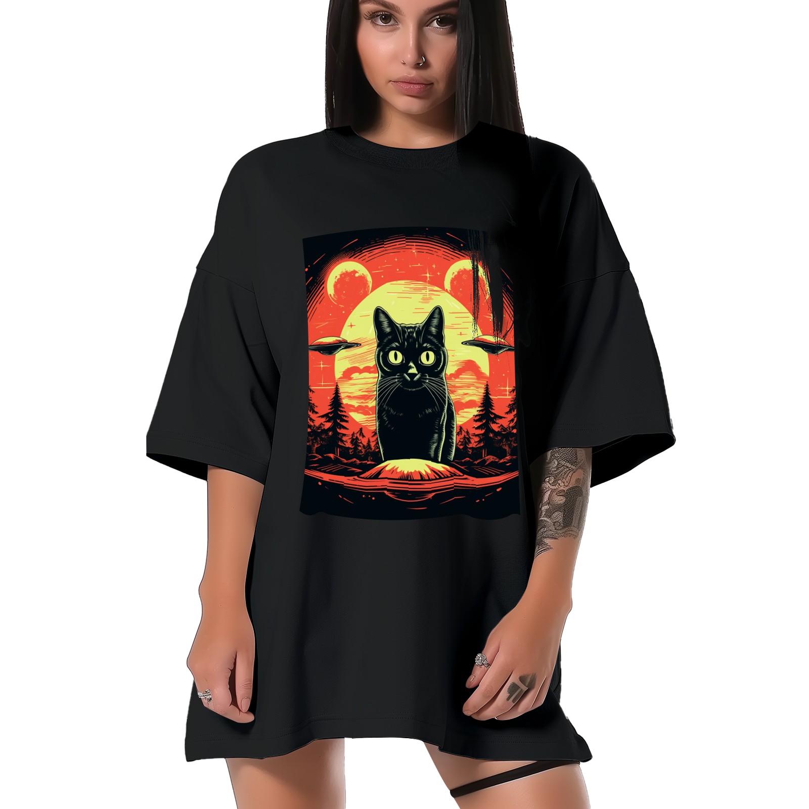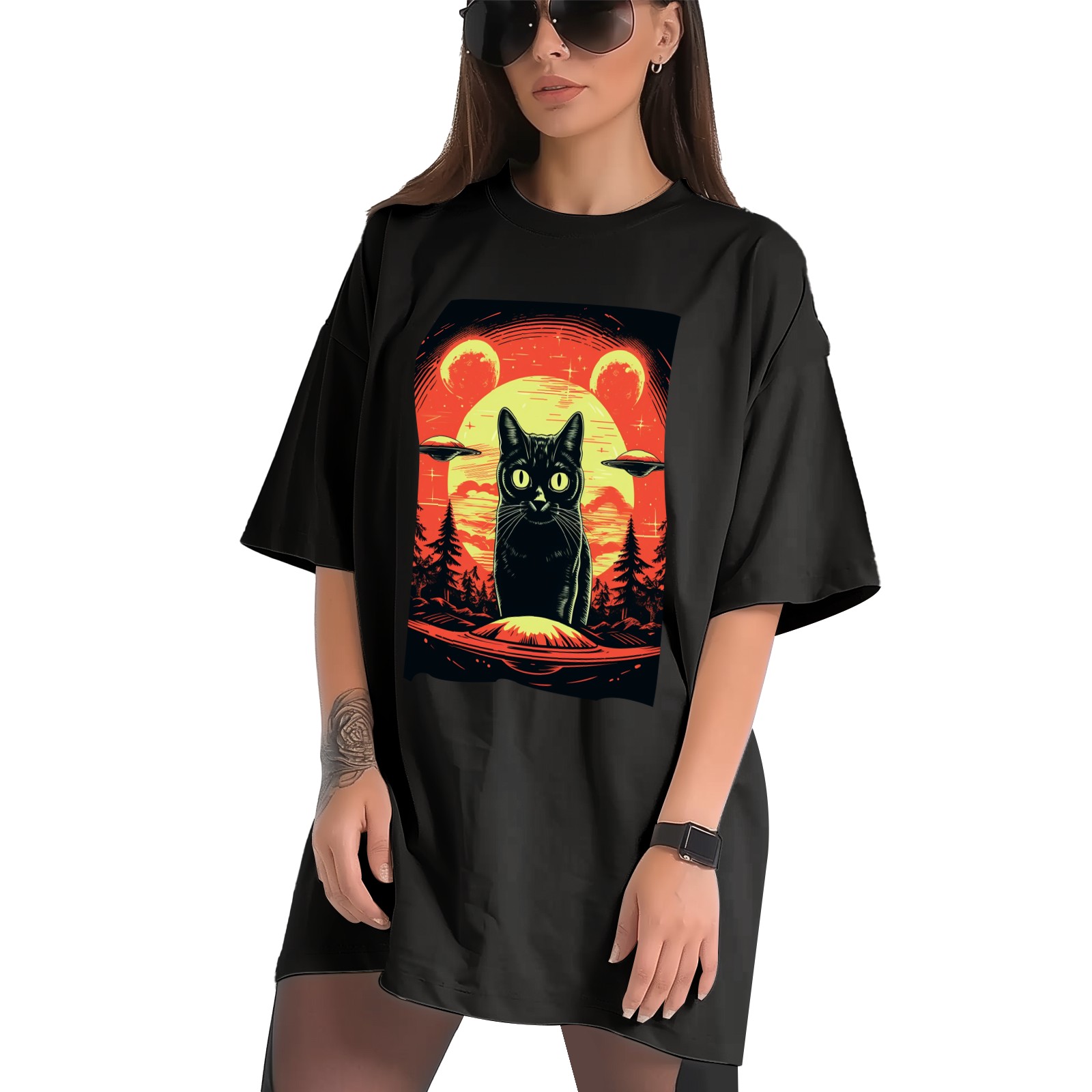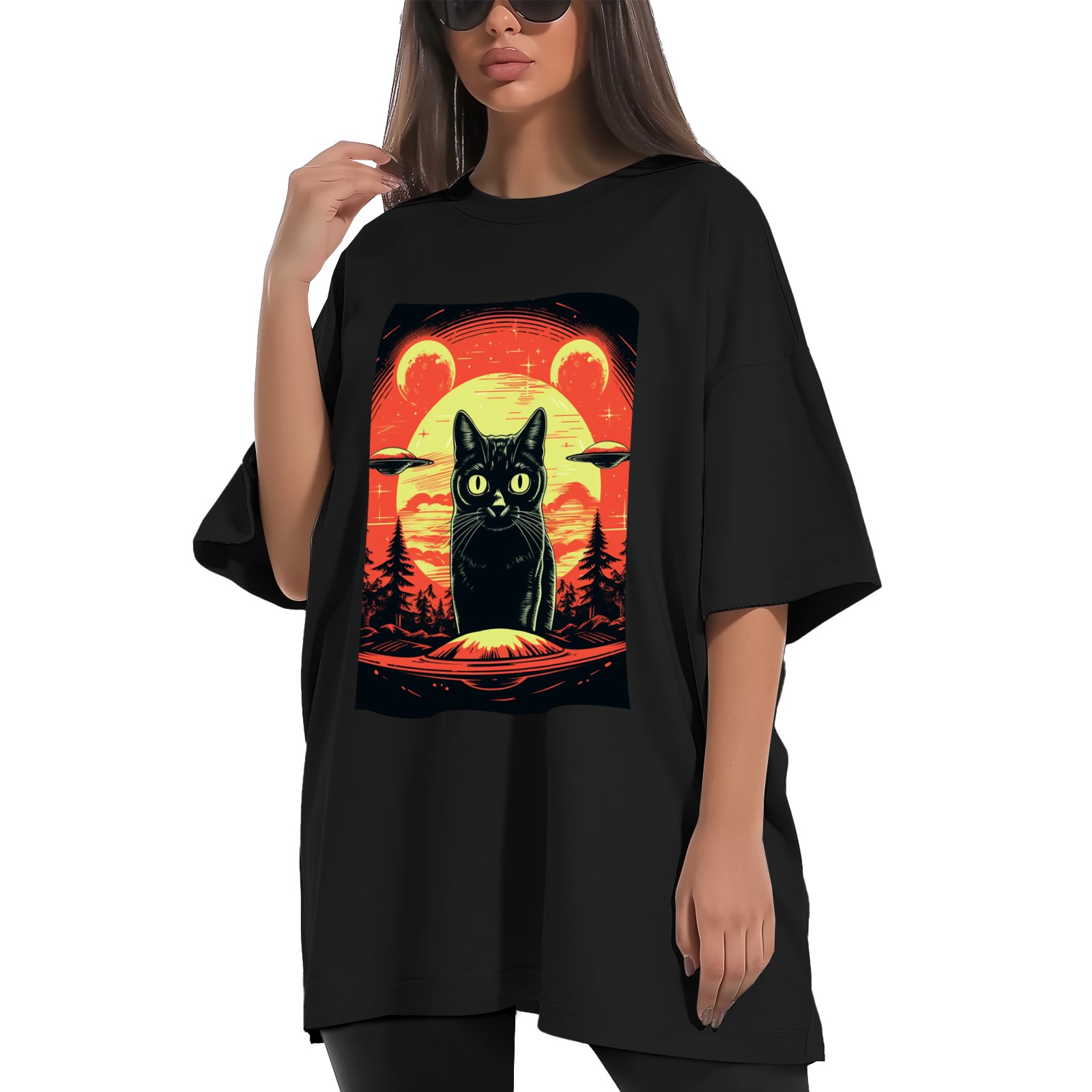 Plus Size Shirt for Women Black Tops for Women Short Sleeves Shirt for Women Retro Black Cat (18) T Shirt Crewneck Shirt for Women XS