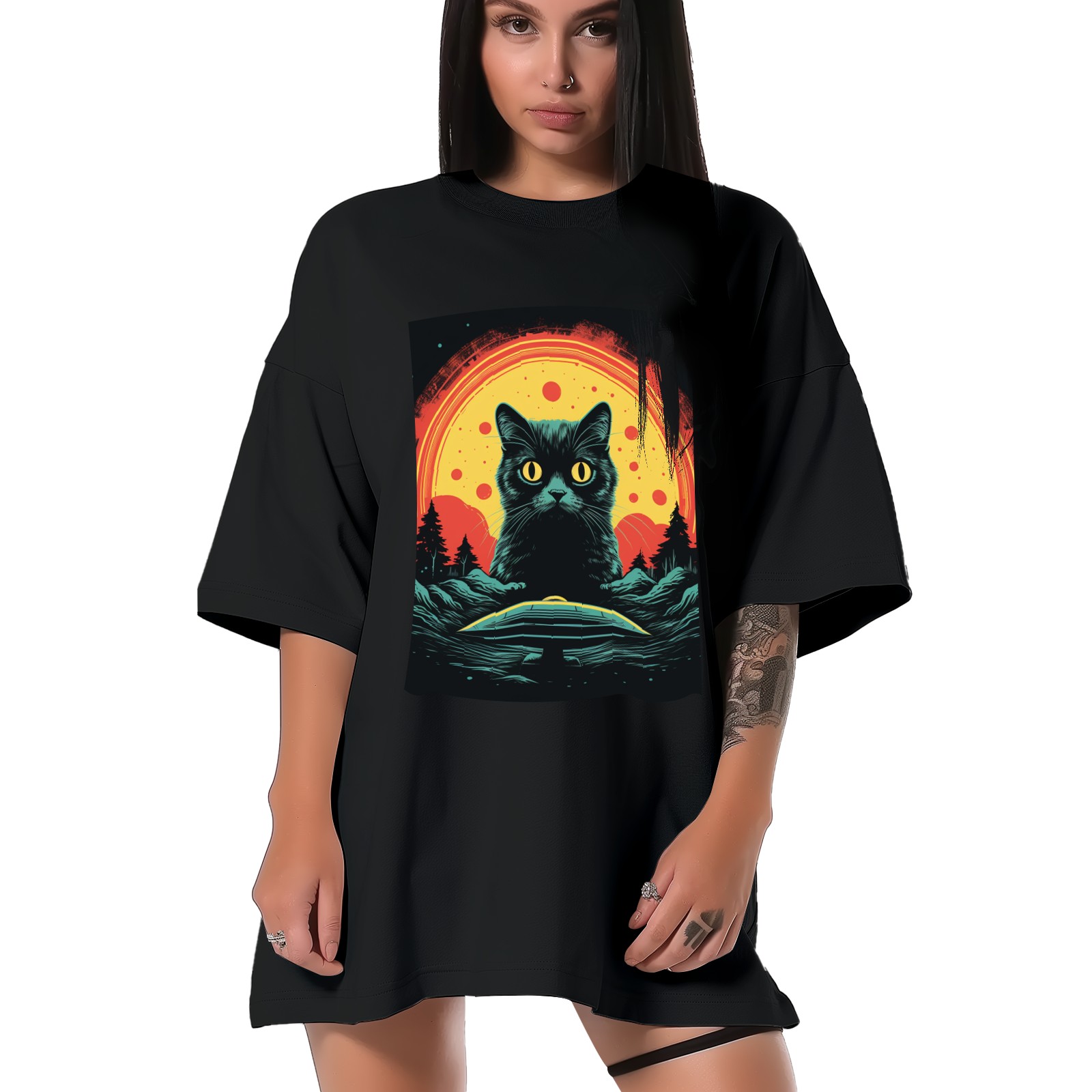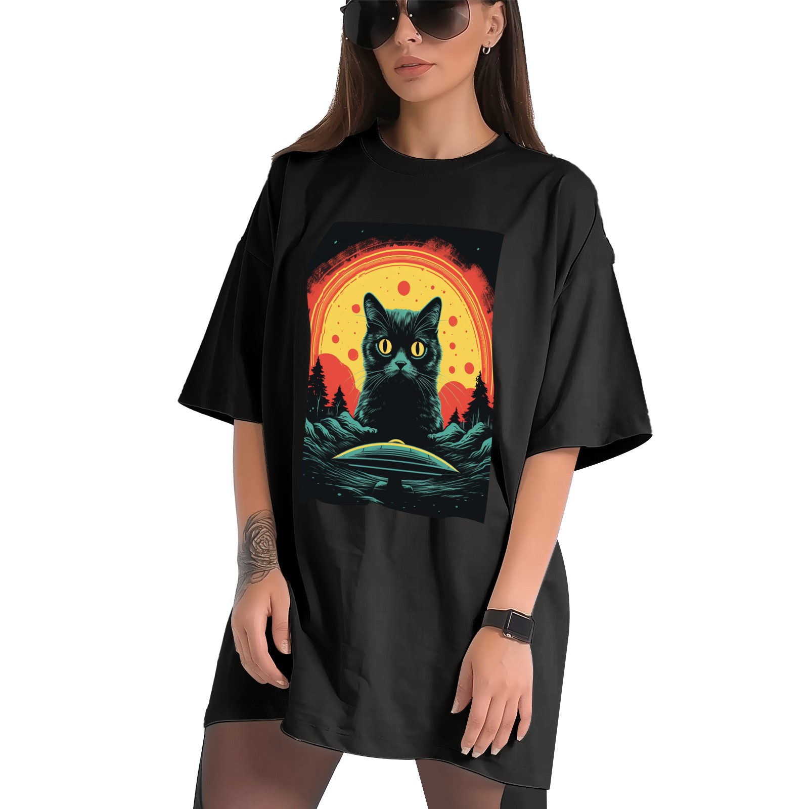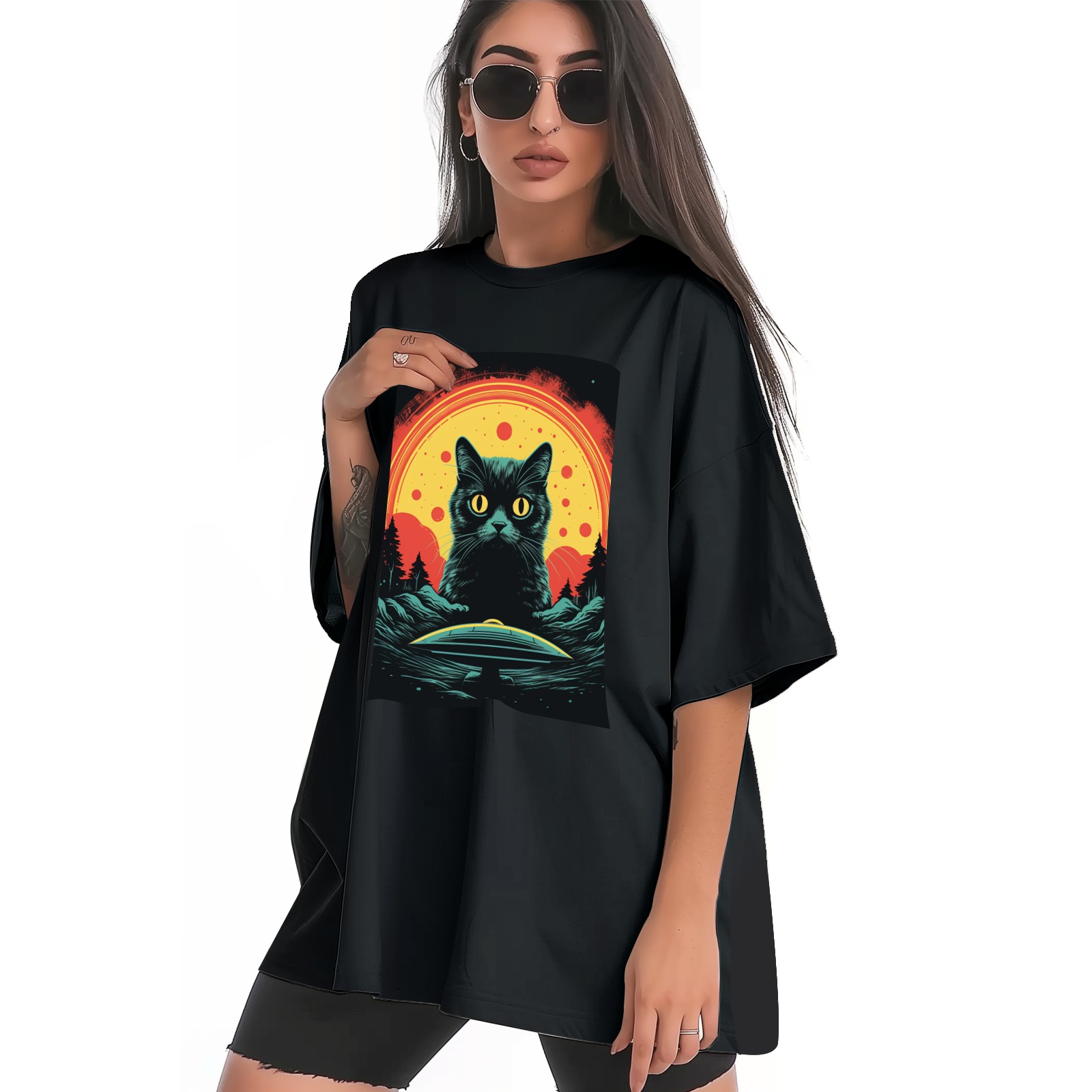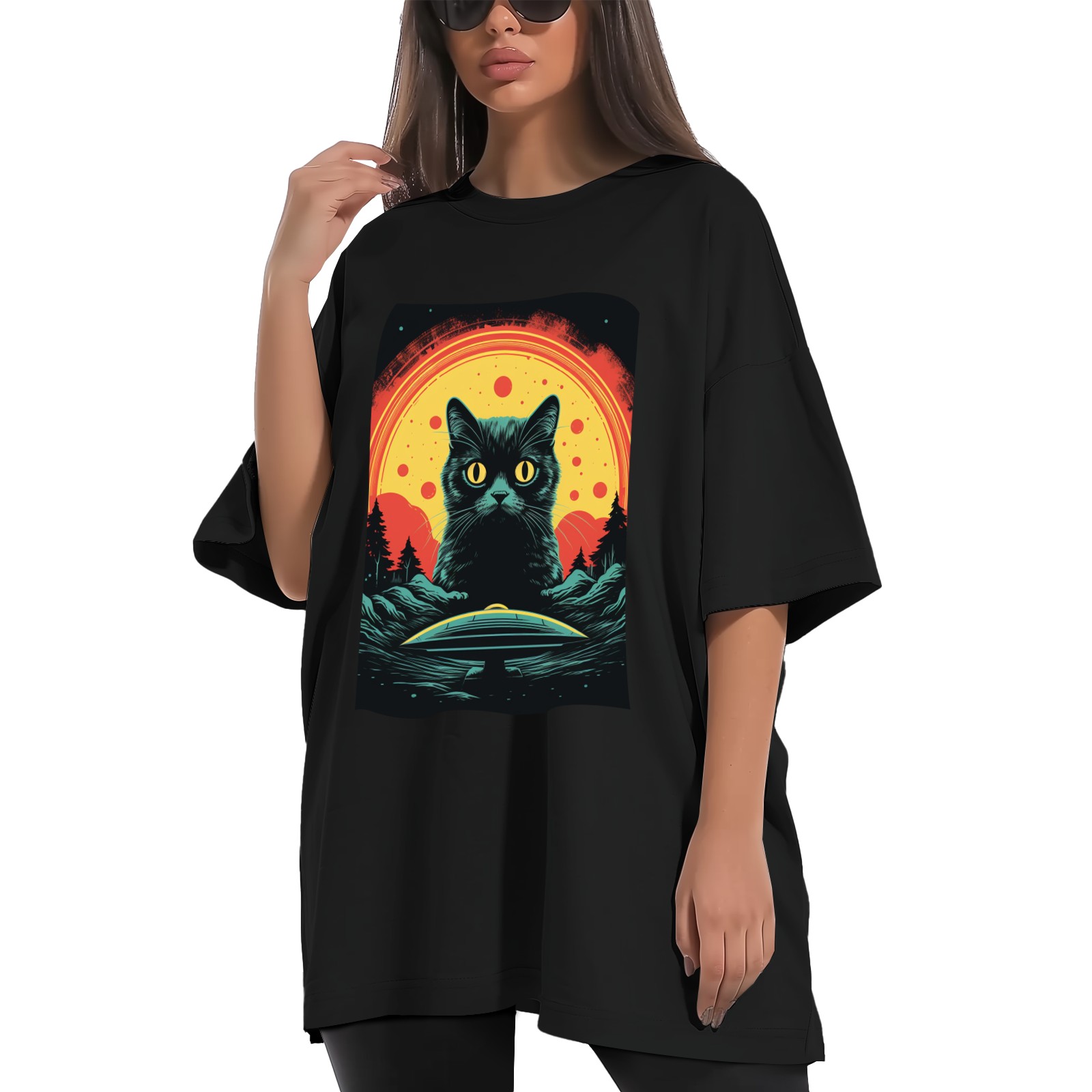 Plus Size Shirt for Women Black Tops for Women Short Sleeves Shirt for Women Retro Black Cat (17) T Shirt Crewneck Shirt for Women XS