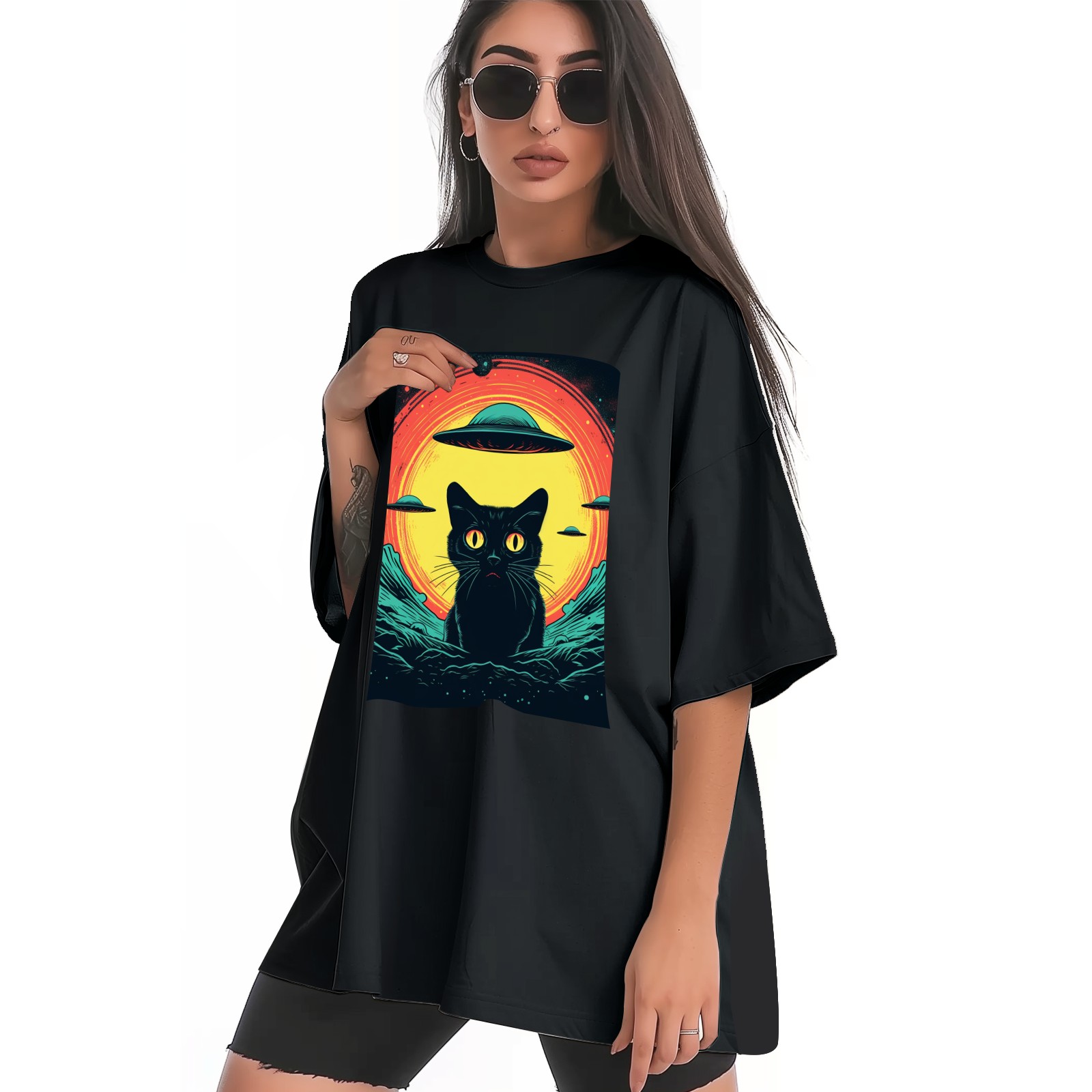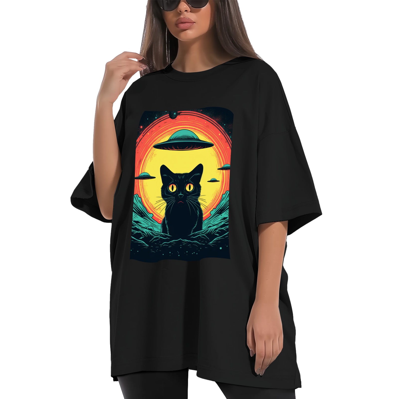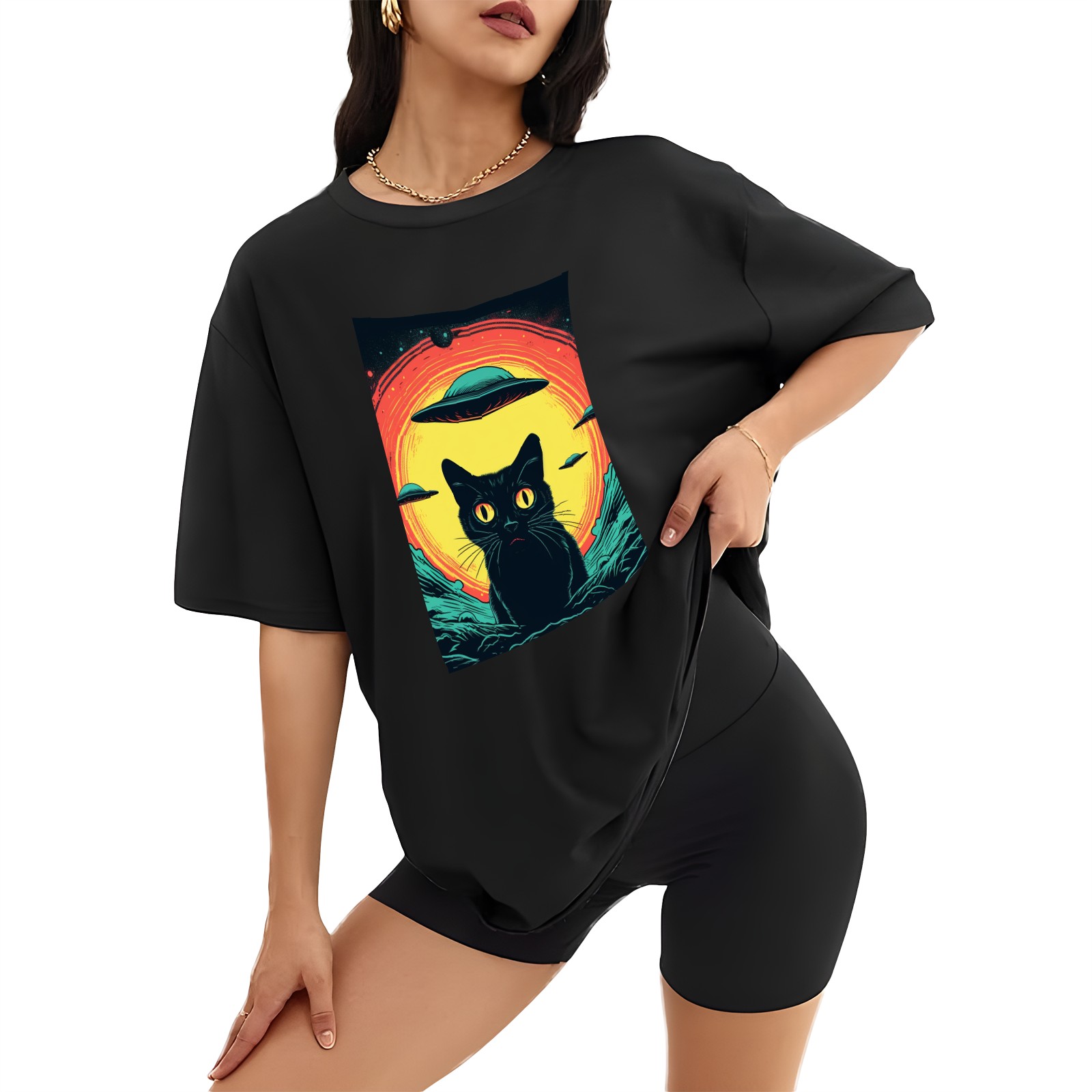 Plus Size Shirt for Women Black Tops for Women Short Sleeves Shirt for Women Retro Black Cat (10) T Shirt Crewneck Shirt for Women XS