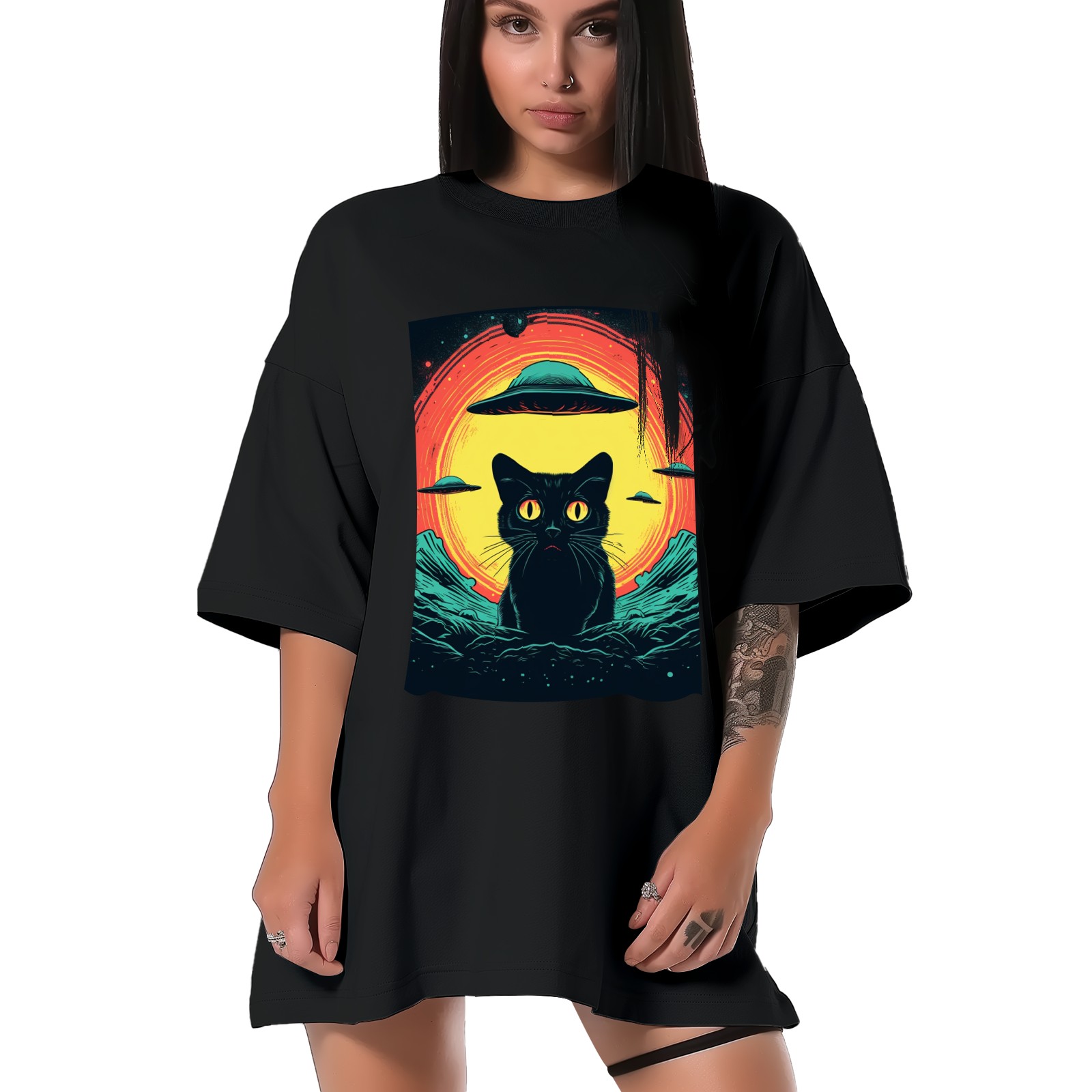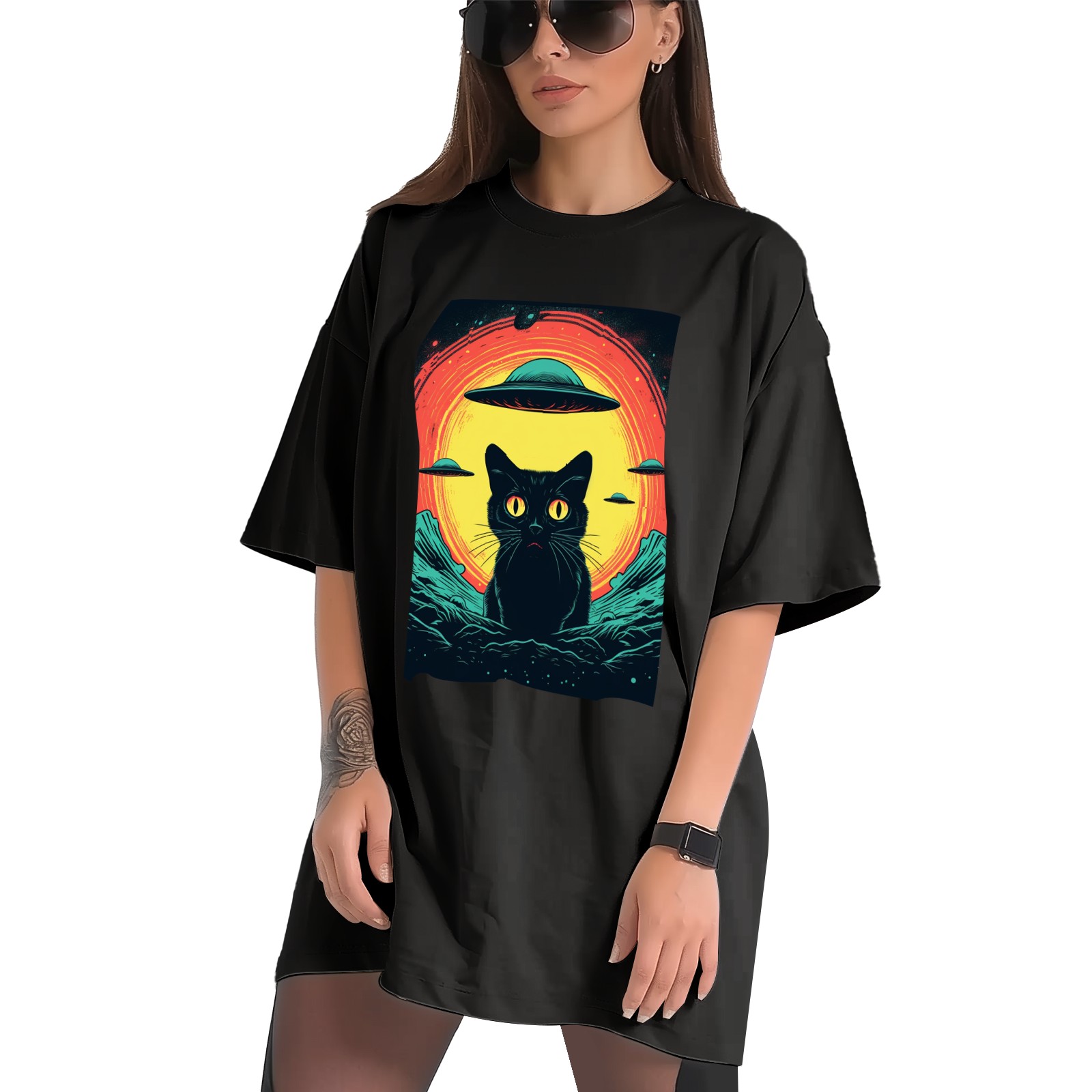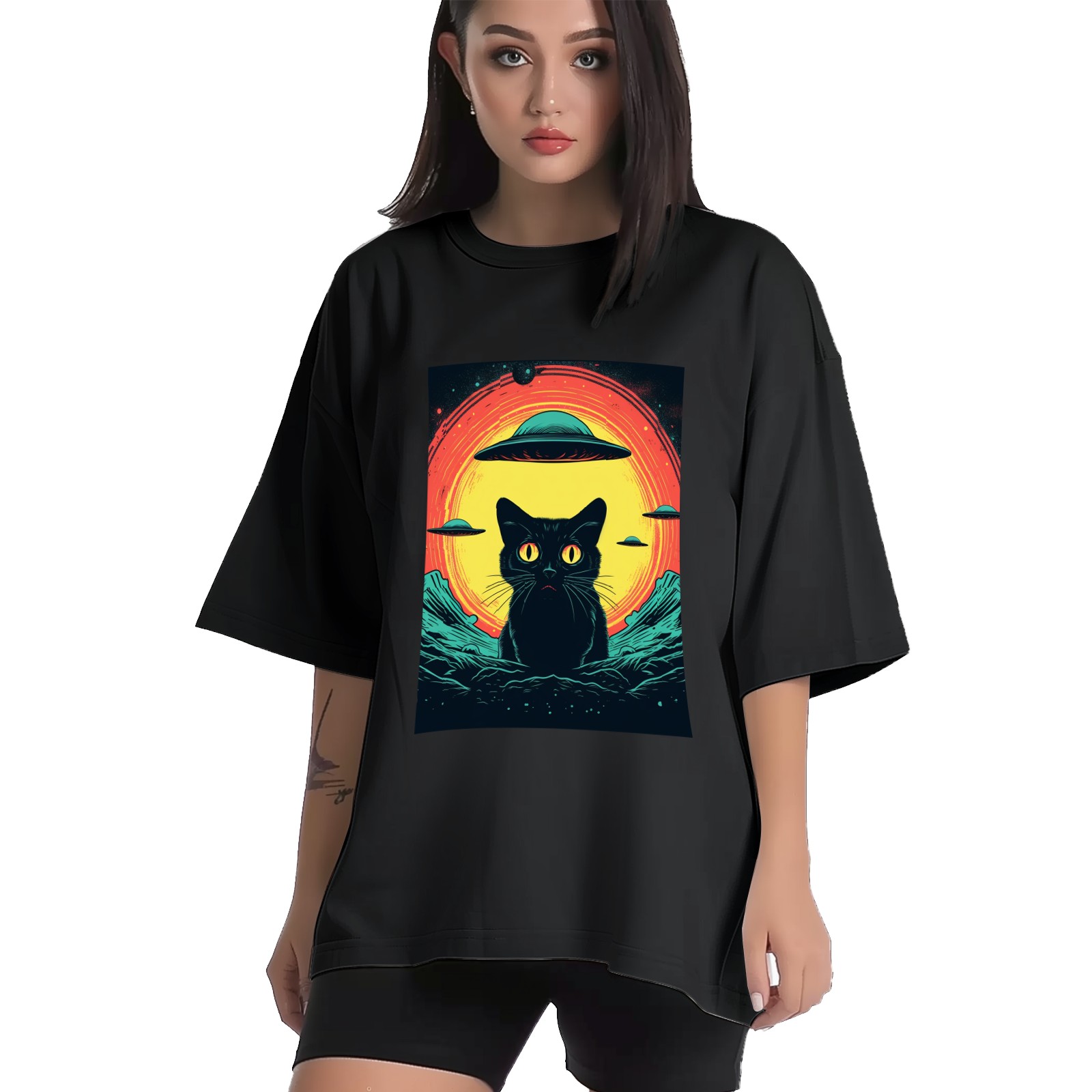 Plus Size Shirt for Women Black Tops for Women Short Sleeves Shirt for Women Retro Black Cat (10) T Shirt Crewneck Shirt for Women XS