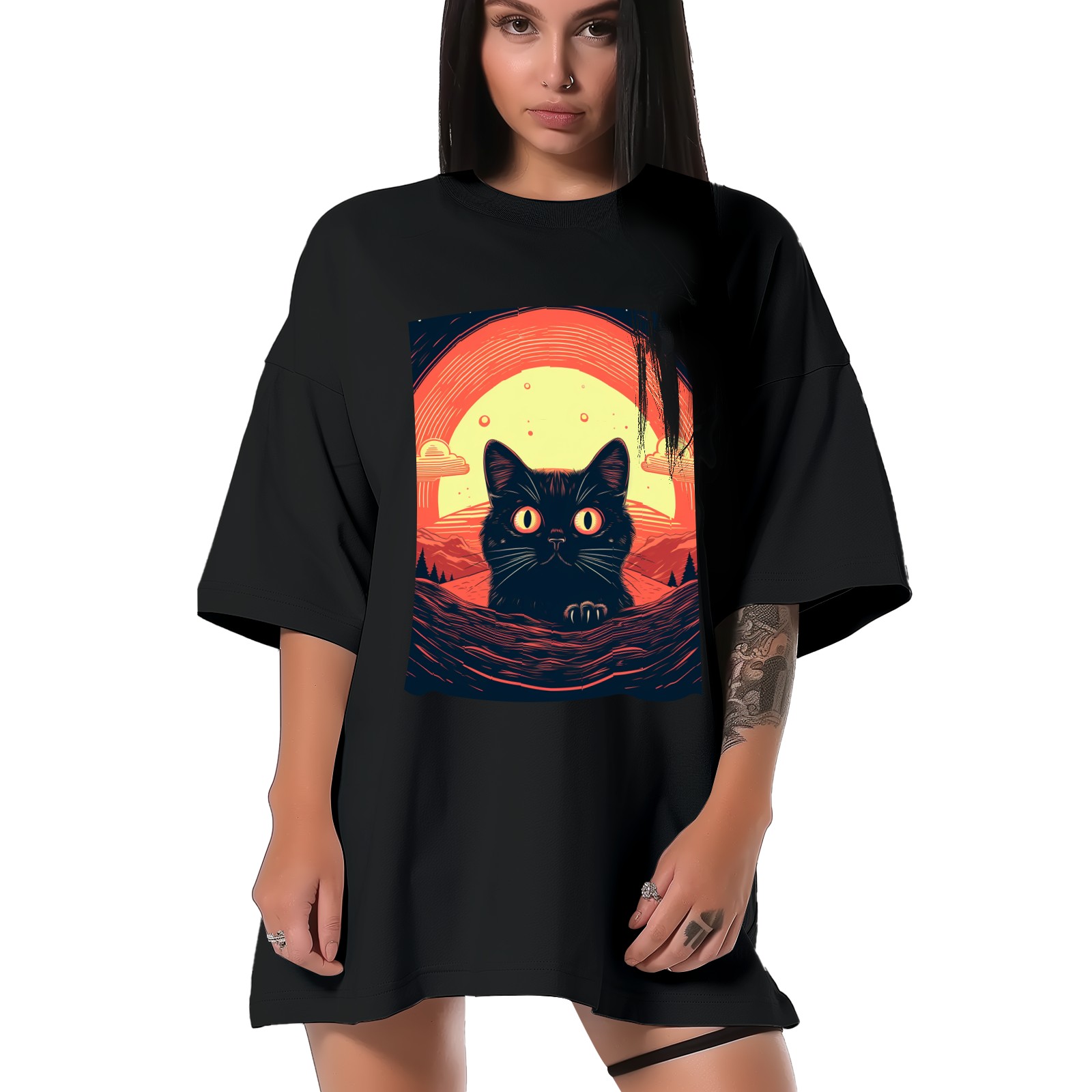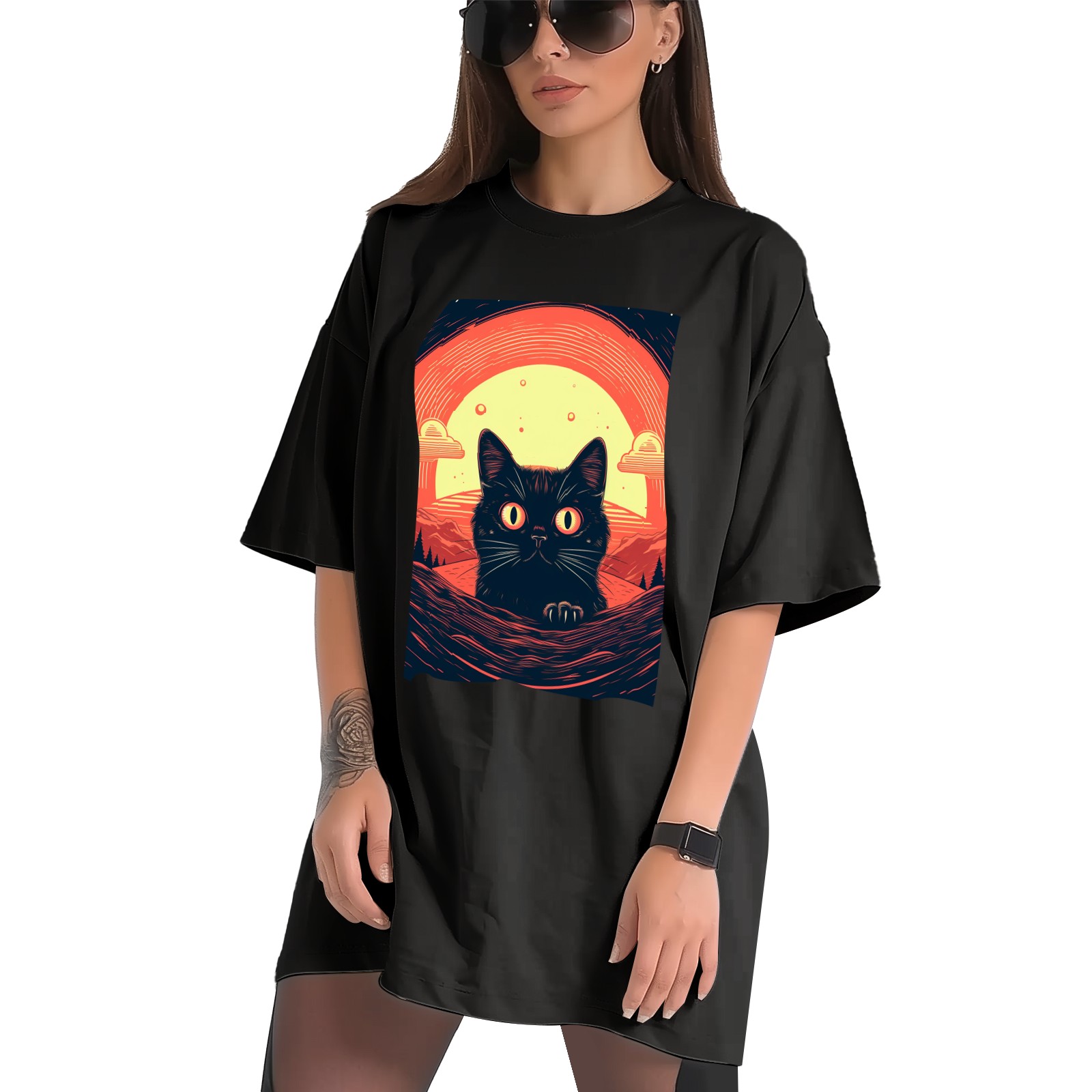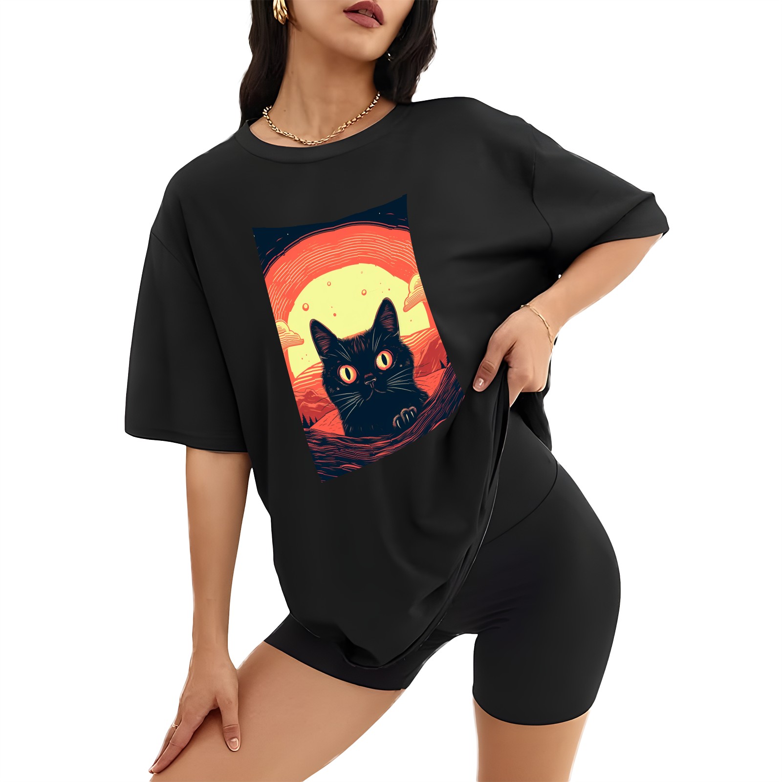 Plus Size Shirt for Women Black Tops for Women Short Sleeves Shirt for Women Retro Black Cat (13) T Shirt Crewneck Shirt for Women XS