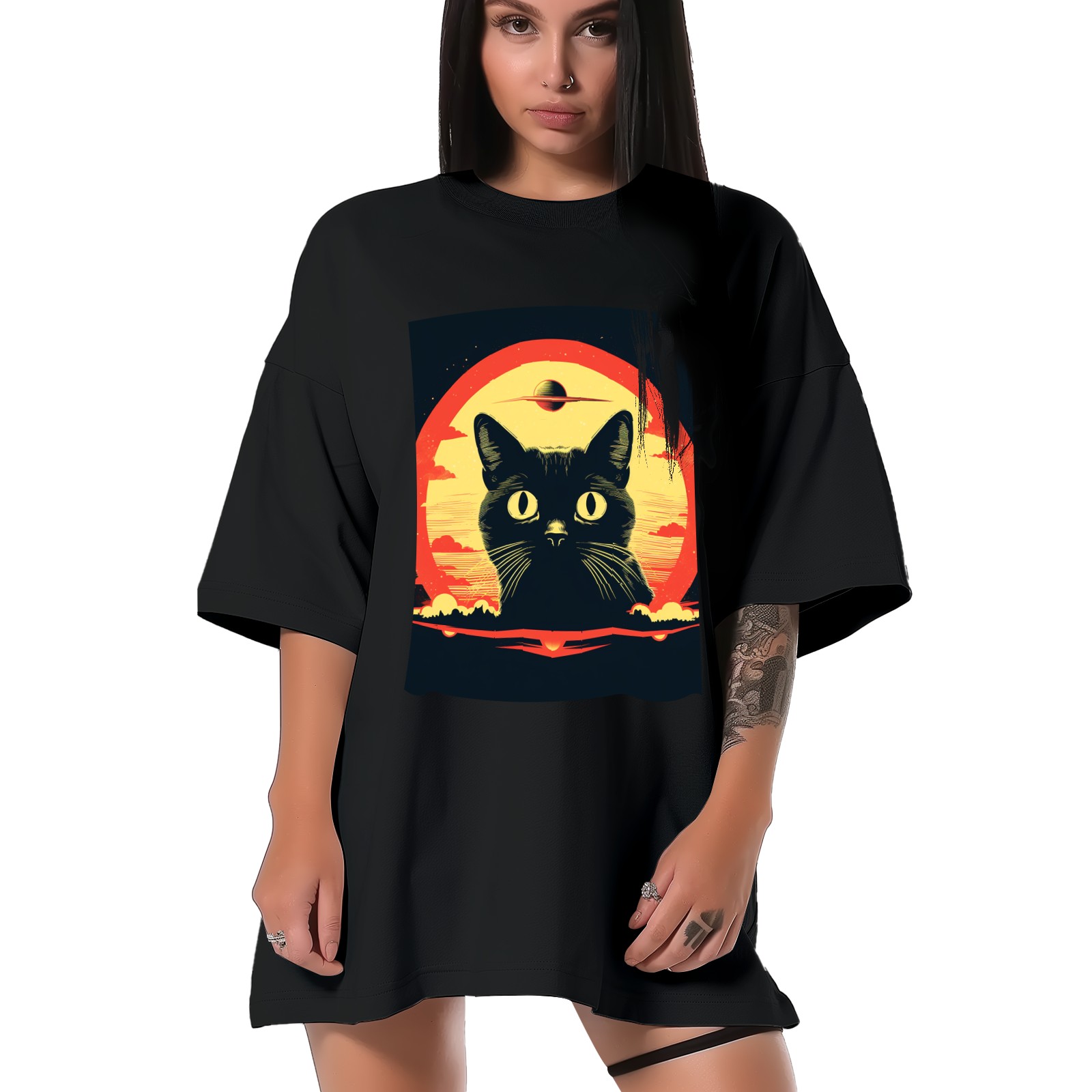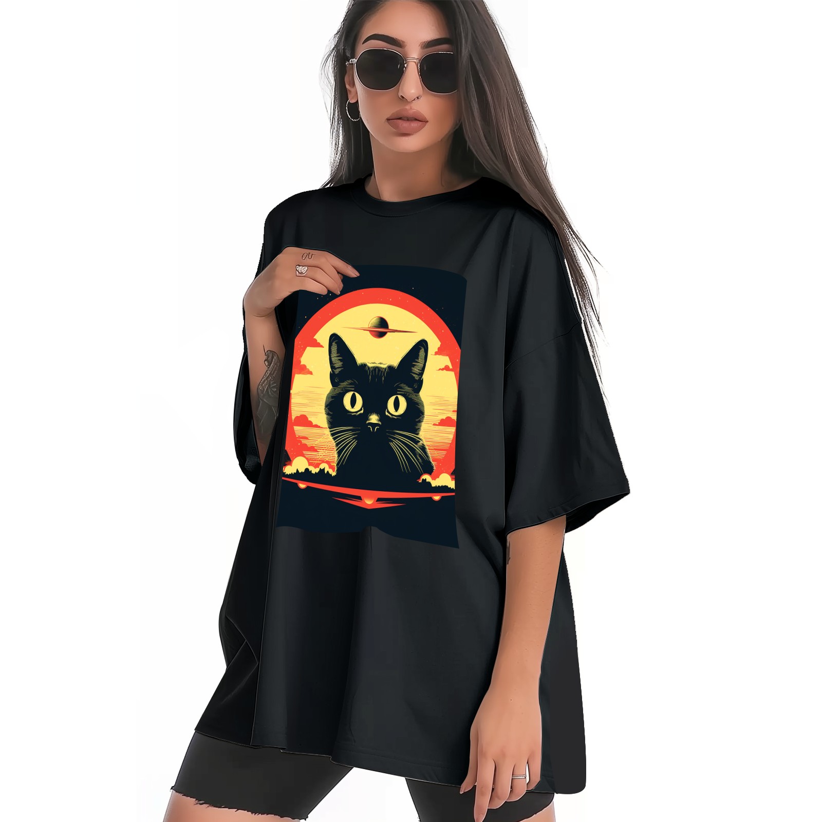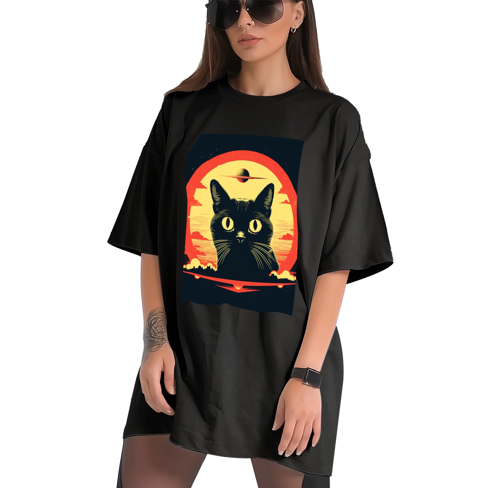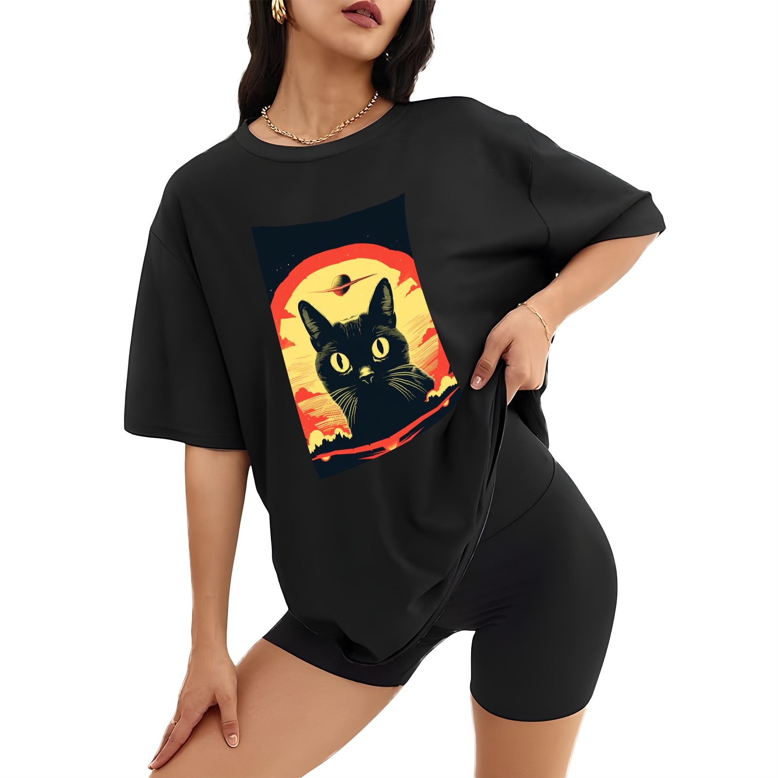 Plus Size Shirt for Women Black Tops for Women Short Sleeves Shirt for Women Retro Black Cat (12) T Shirt Crewneck Shirt for Women XS