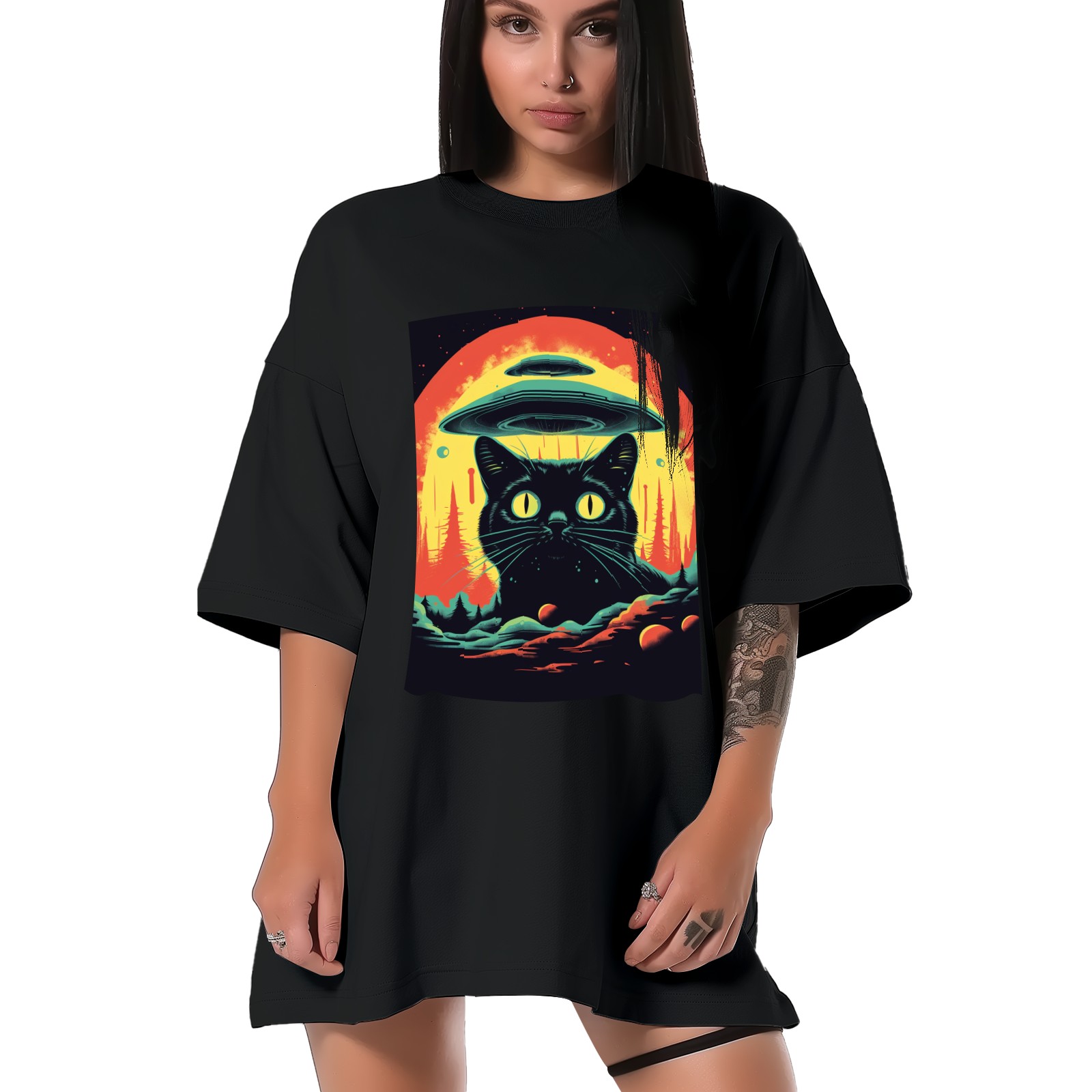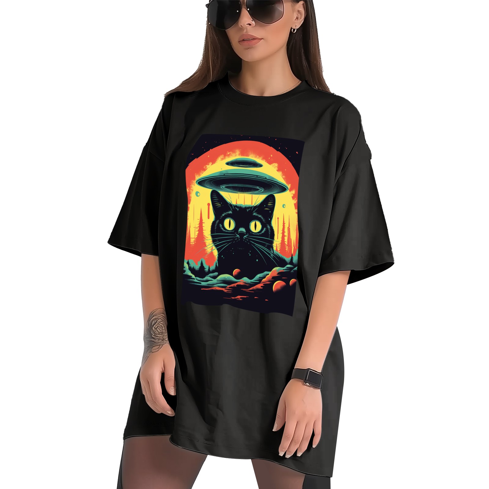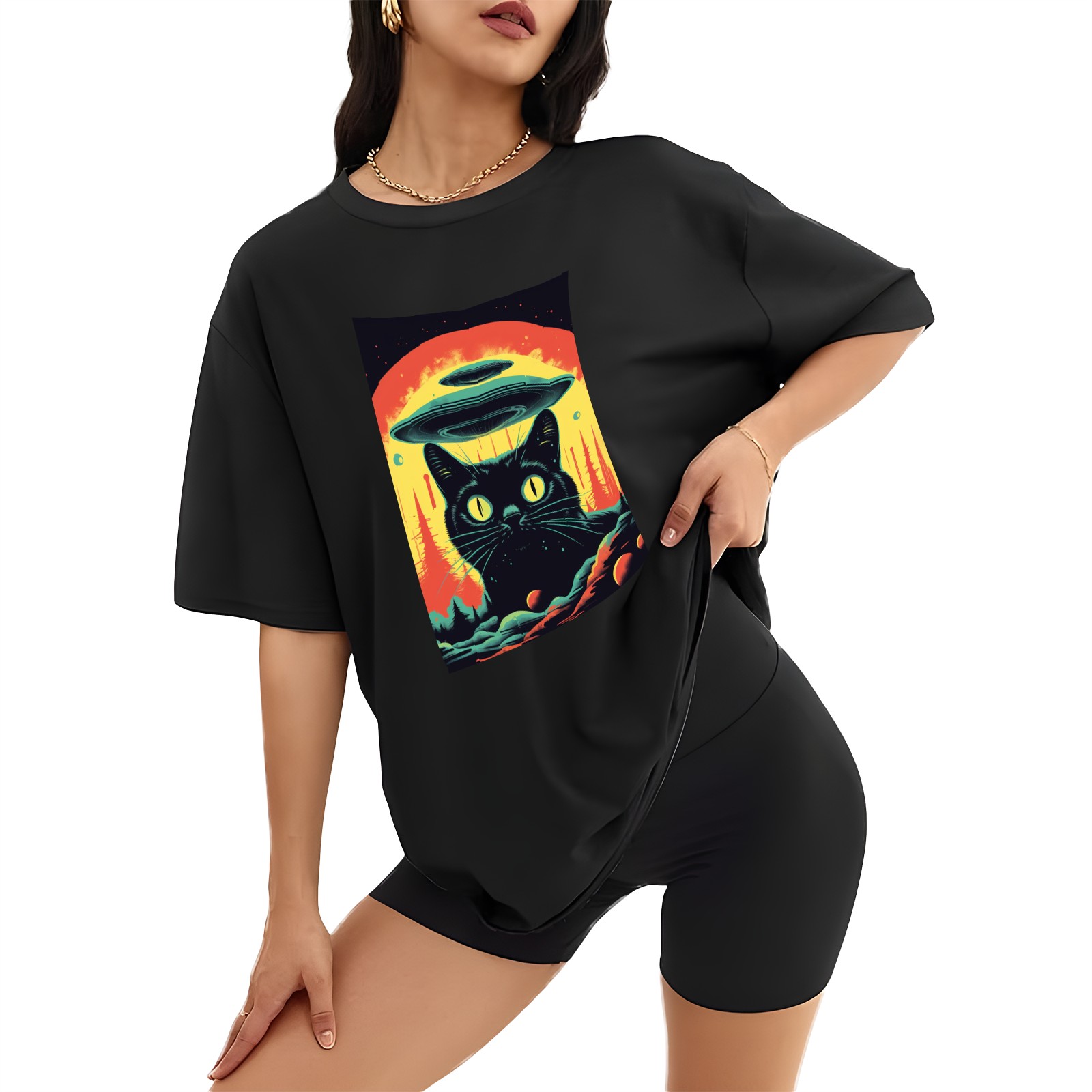Plus Size Shirt for Women Black Tops for Women Short Sleeves Shirt for Women Retro Black Cat (11) T Shirt Crewneck Shirt for Women XS