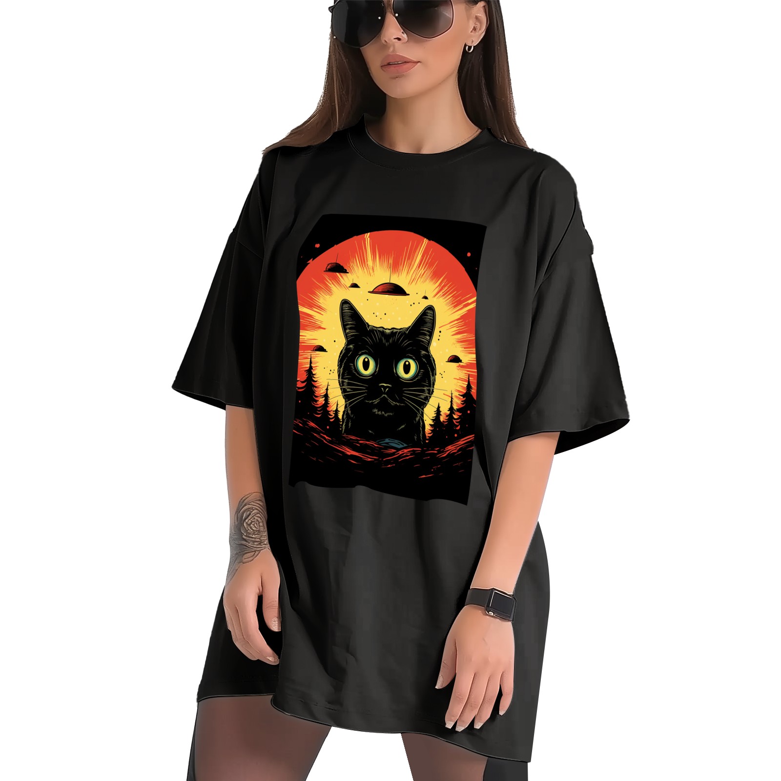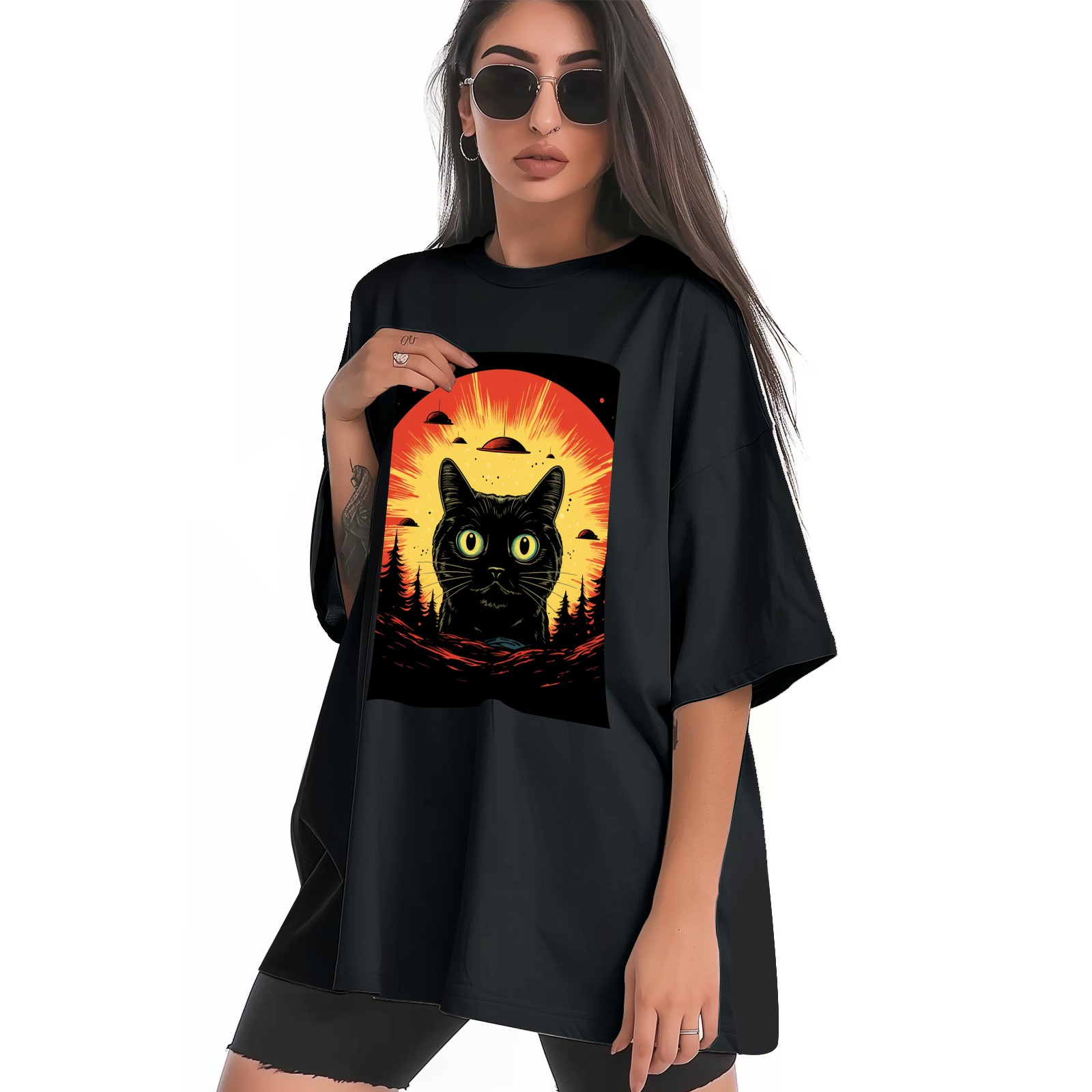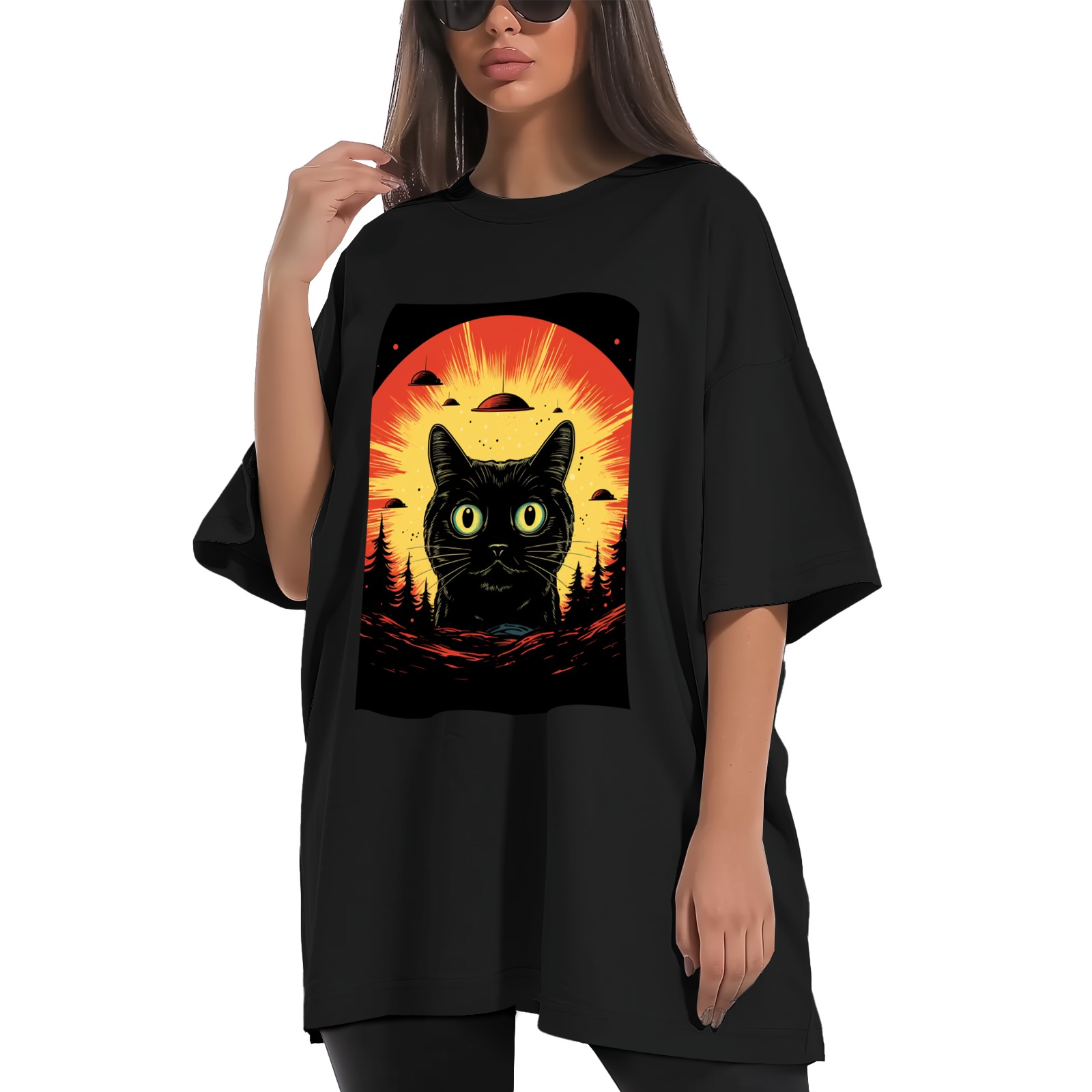 Plus Size Shirt for Women Black Tops for Women Short Sleeves Shirt for Women Retro Black Cat (6) T Shirt Crewneck Shirt for Women XS