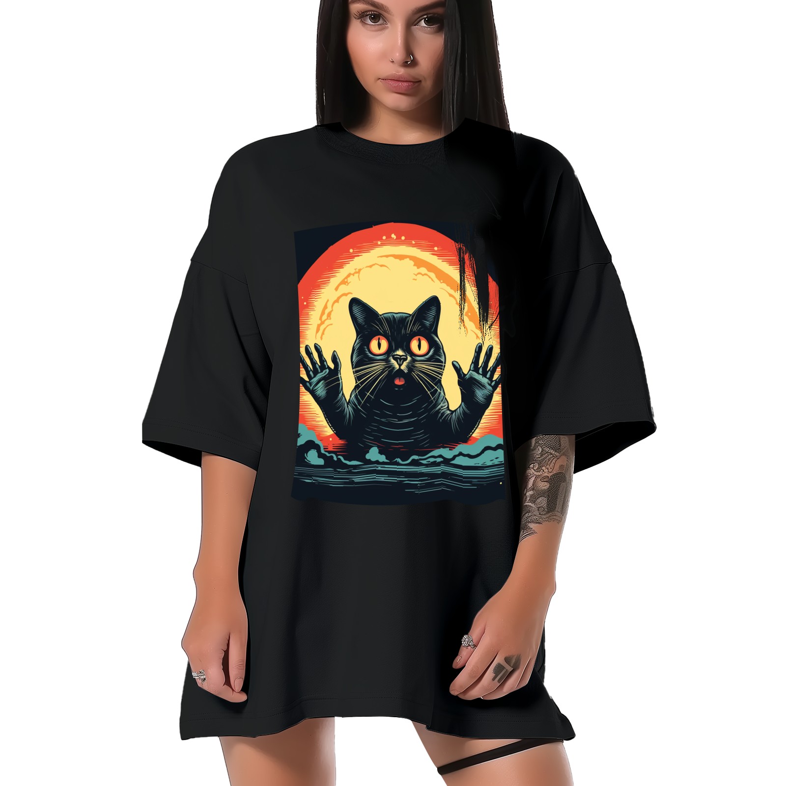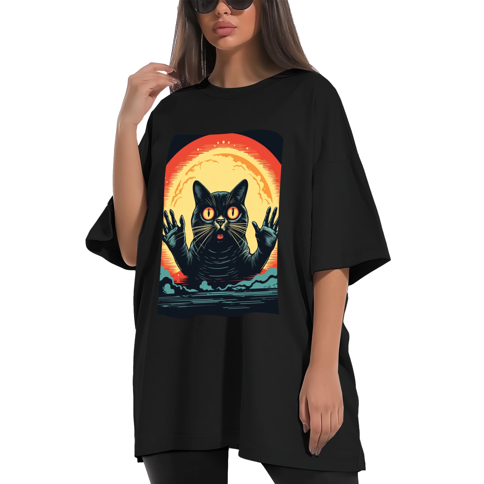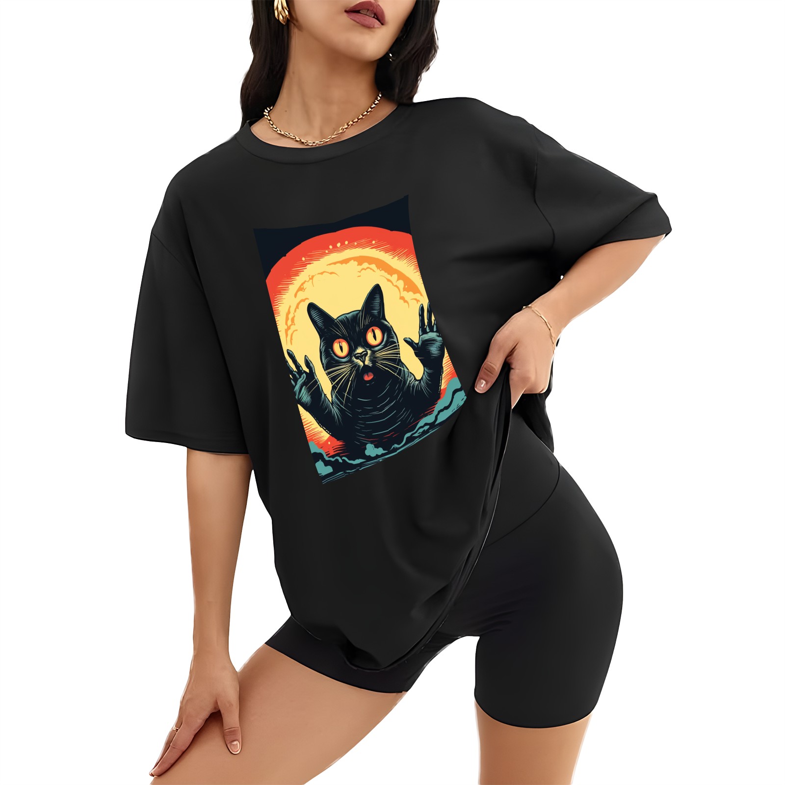 Plus Size Shirt for Women Black Tops for Women Short Sleeves Shirt for Women Retro Black Cat (5) T Shirt Crewneck Shirt for Women XS