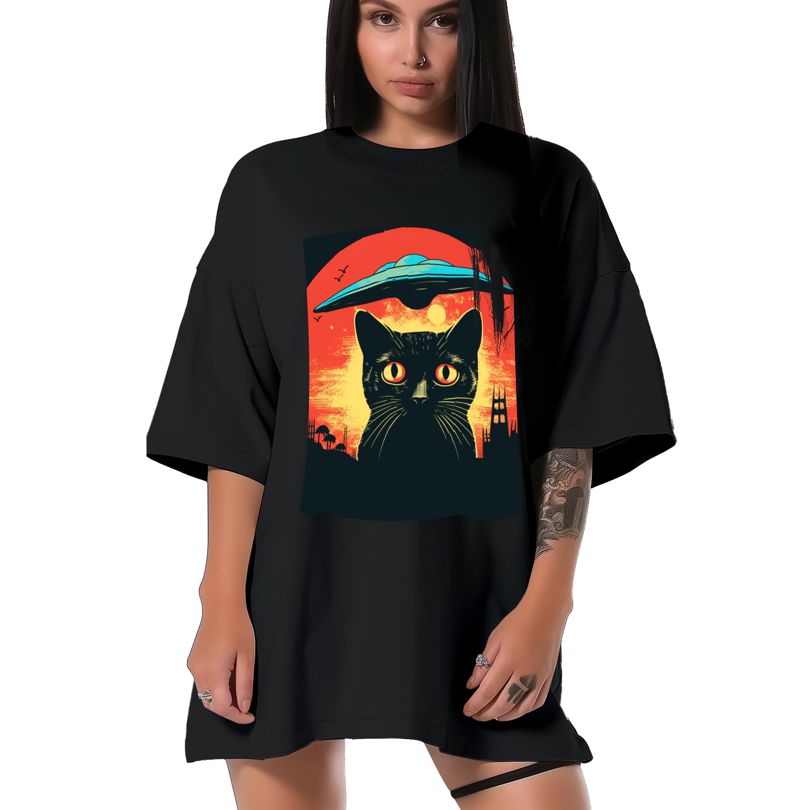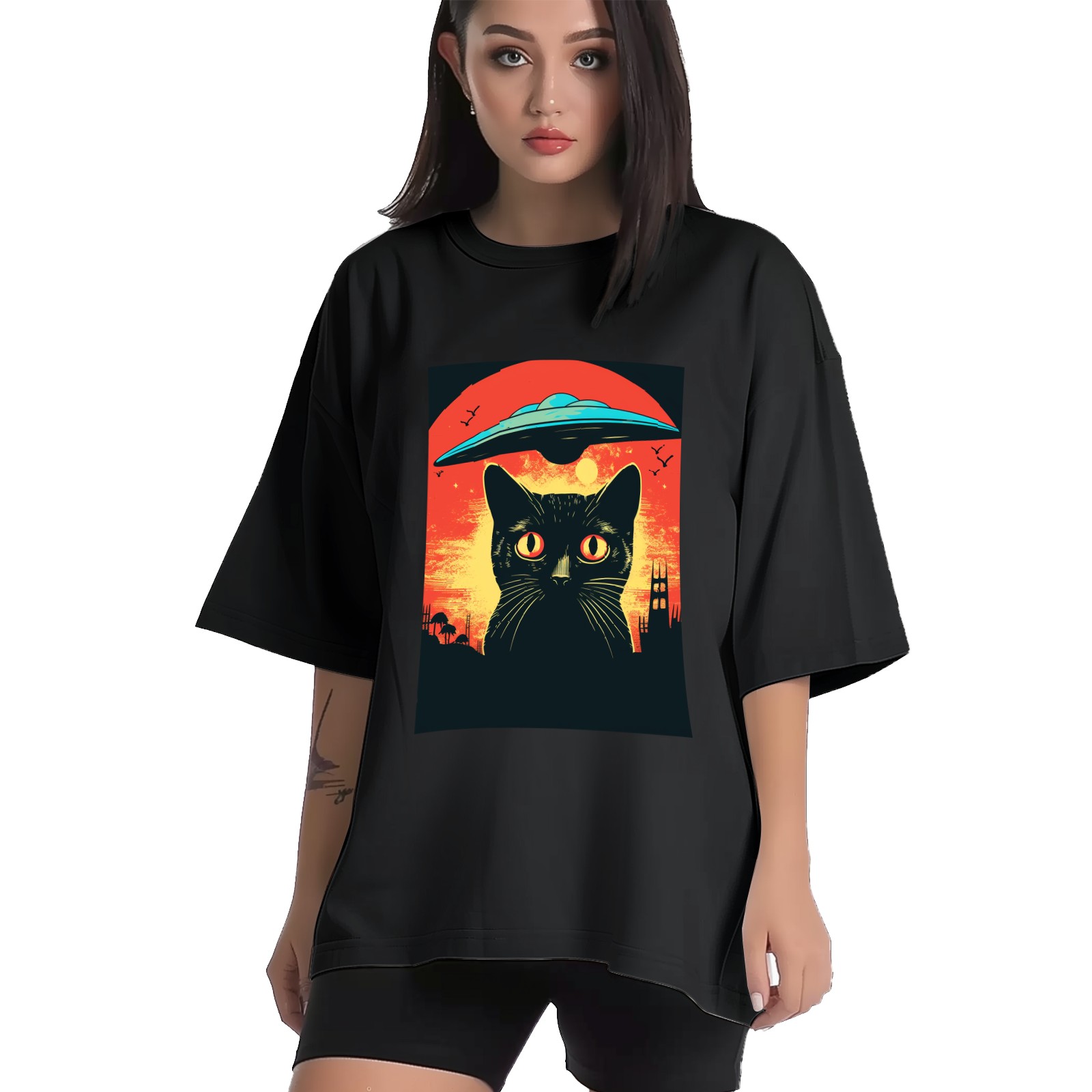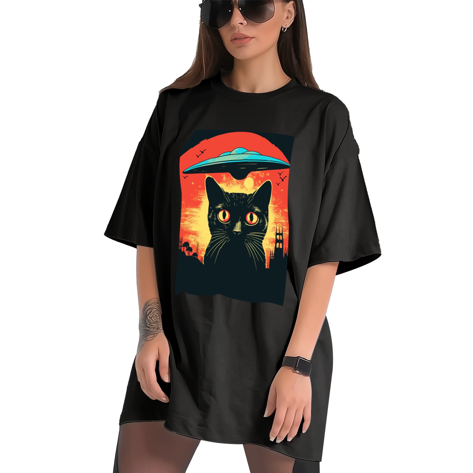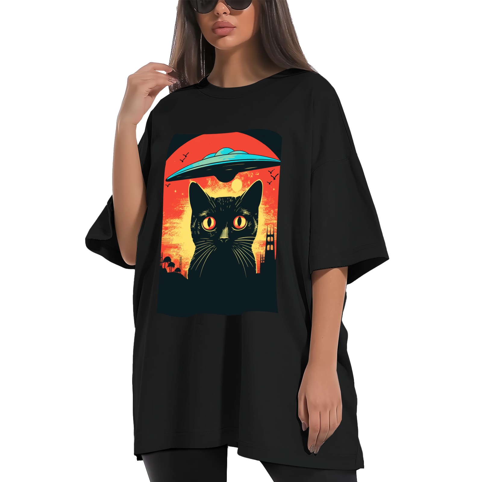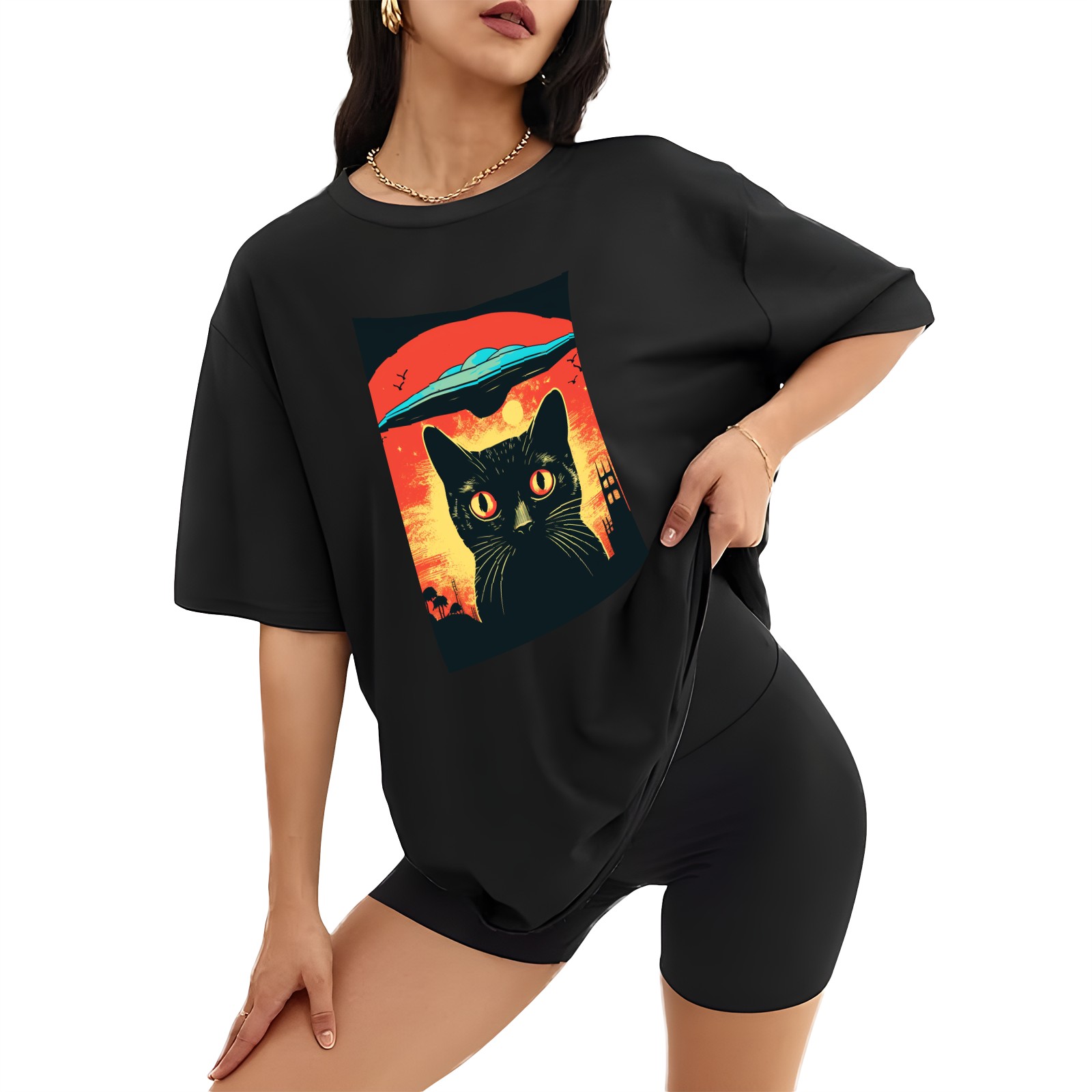 Plus Size Shirt for Women Black Tops for Women Short Sleeves Shirt for Women Retro Black Cat (3) T Shirt Crewneck Shirt for Women XS