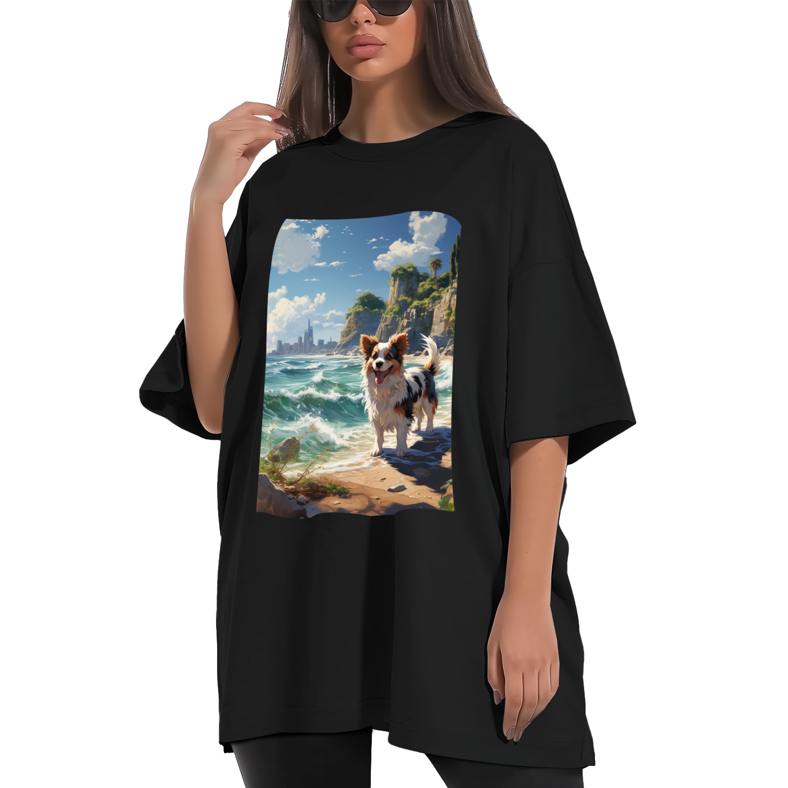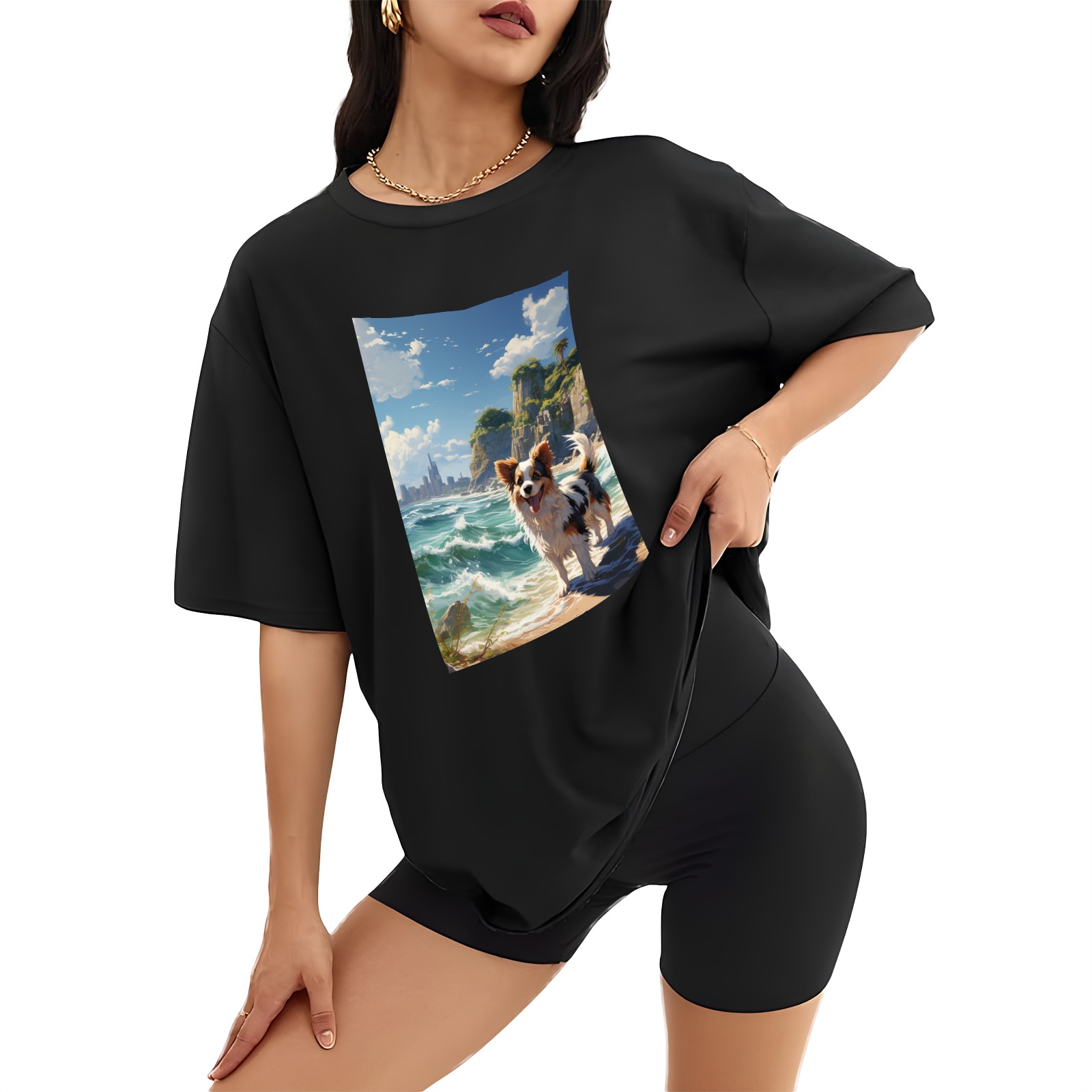 Plus Size Shirt for Women Black Tops for Women Short Sleeves Shirt for Women Puppy 48 T Shirt Crewneck Shirt for Women XS