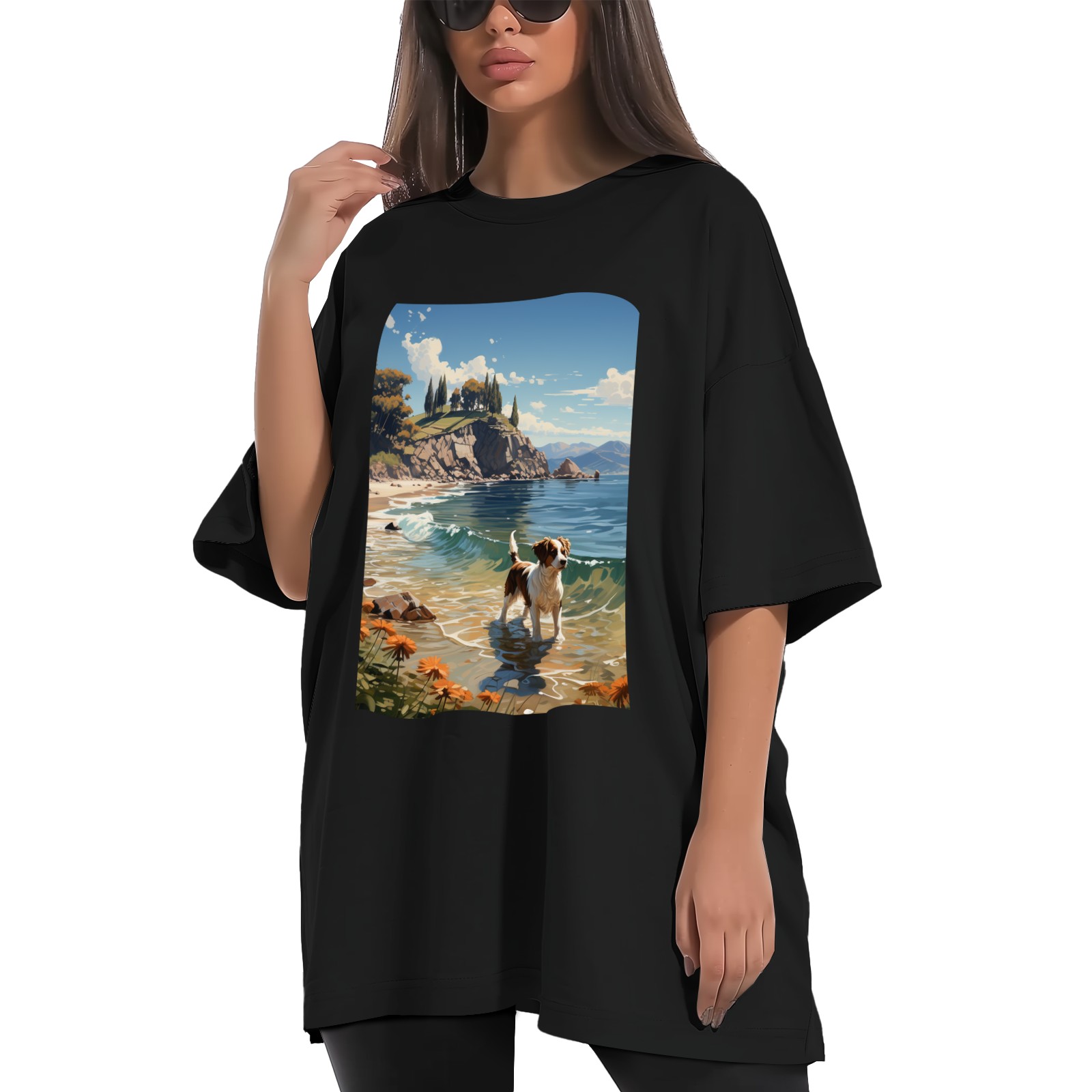 • Feature: Fashion letter print graphic, round neck, short sleeve, oversized, which is very casual and fashion. Suitable occasions: Women summer tee shirt suitable for casual, work, date, shopping, weekend, holiday, party, club, pub, office, home, outdoor, vacation etc. Oversized t shirts for women is perfect with jeans, shorts, leggings, pants or skirts for a concise and unique look. Wash Instruction: We recommend machine-wash or hand wash in cold water, do not bleach for these plus size tops. Please refer to size chart which we provide in our photos (The last picture of the product has detailed size data) .Please allow 1-2cm differs due to manual measurement. Material: 100% Polyester Sleeve Length: Short Sleeve Neckline: Round Neck Sleeve Type: Drop Shoulder Style: Casual
