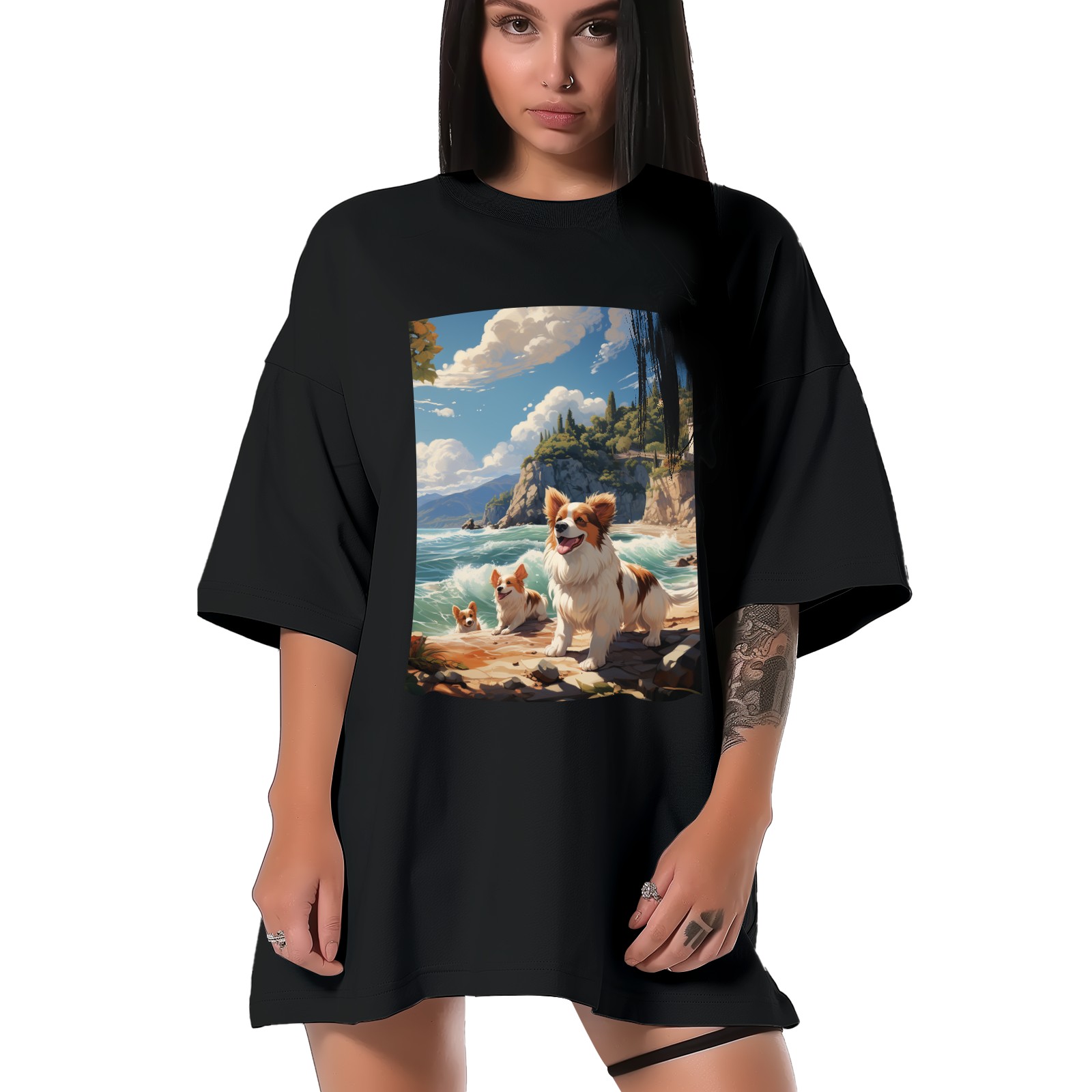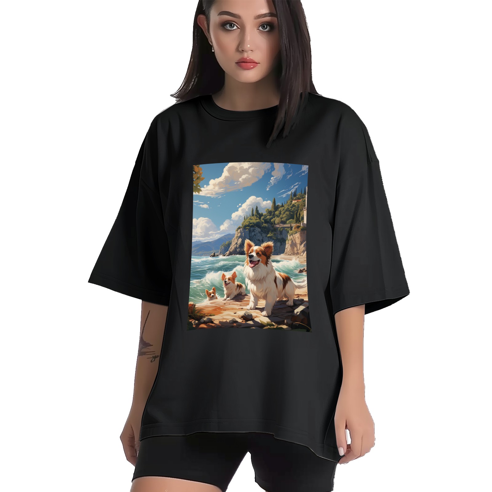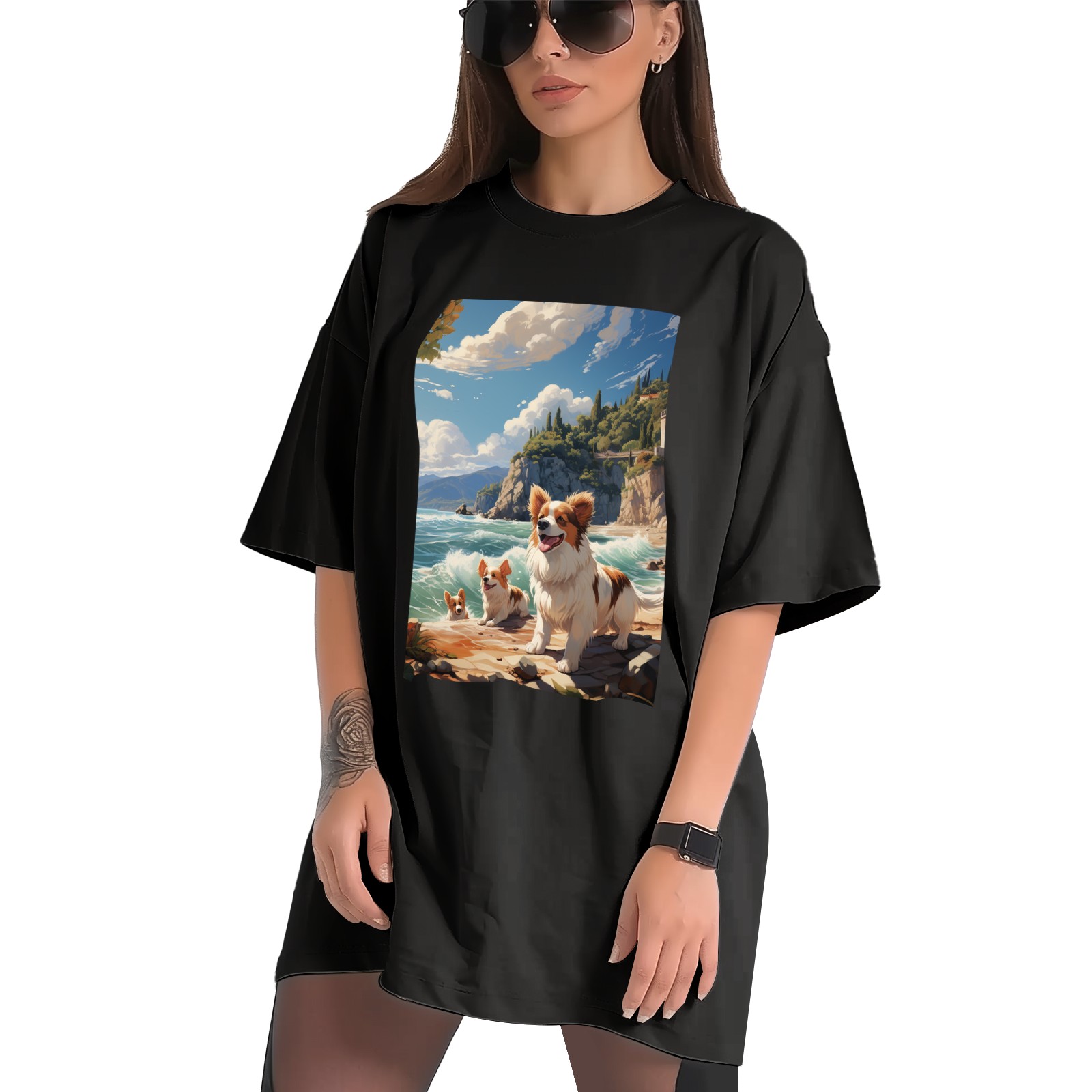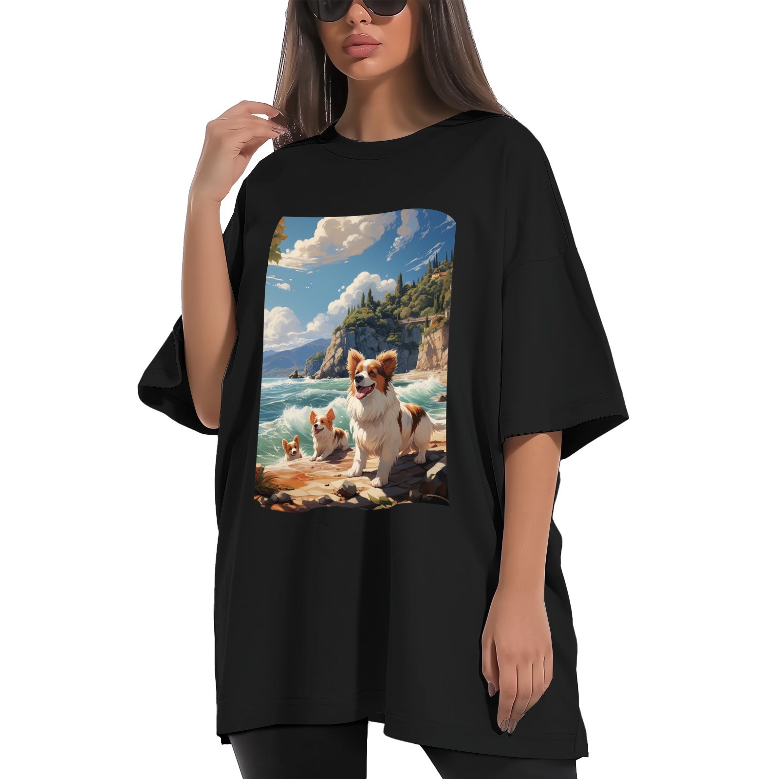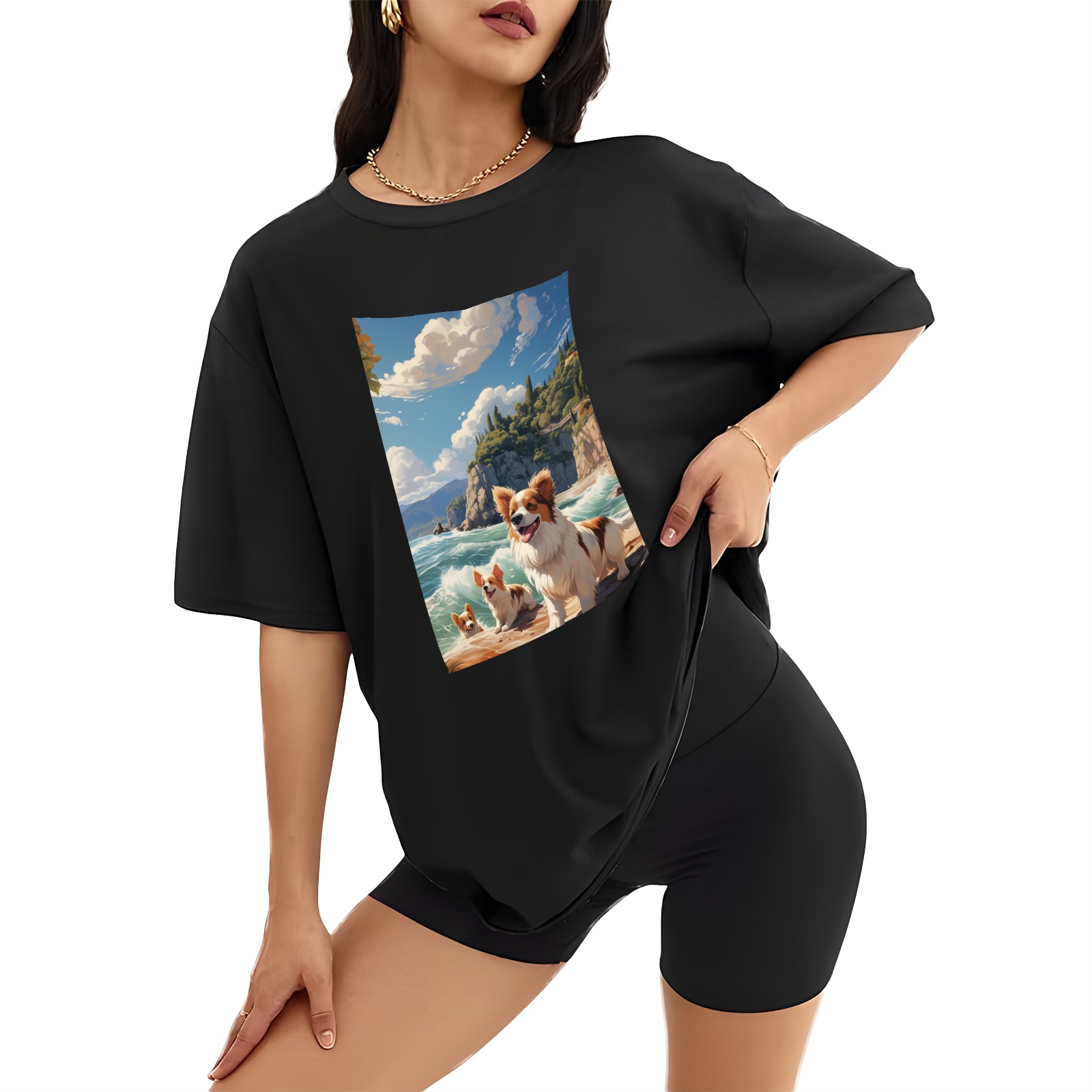 Plus Size Shirt for Women Black Tops for Women Short Sleeves Shirt for Women Puppy 45 T Shirt Crewneck Shirt for Women XS