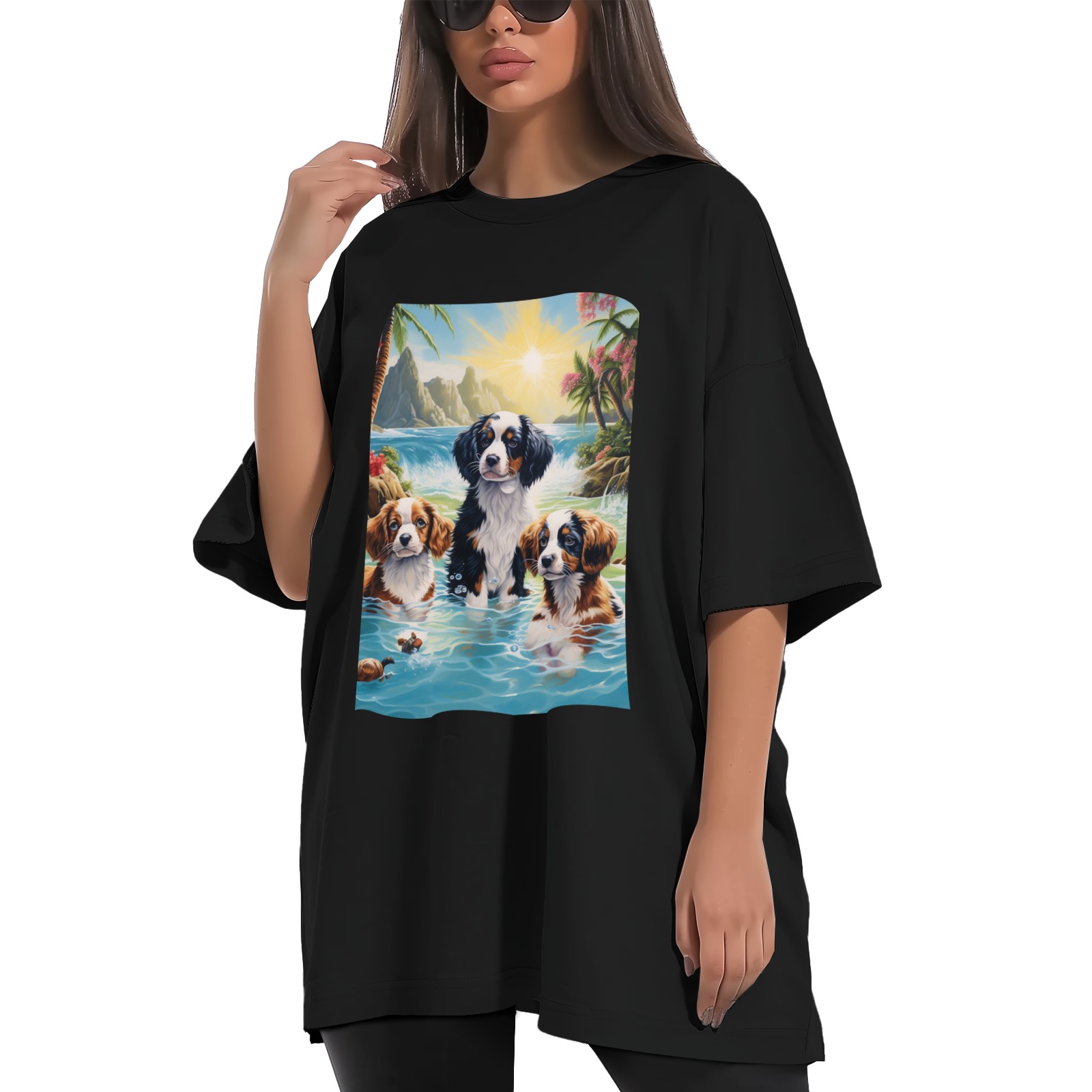 Plus Size Shirt for Women Black Tops for Women Short Sleeves Shirt for Women Puppy 40 T Shirt Crewneck Shirt for Women XS