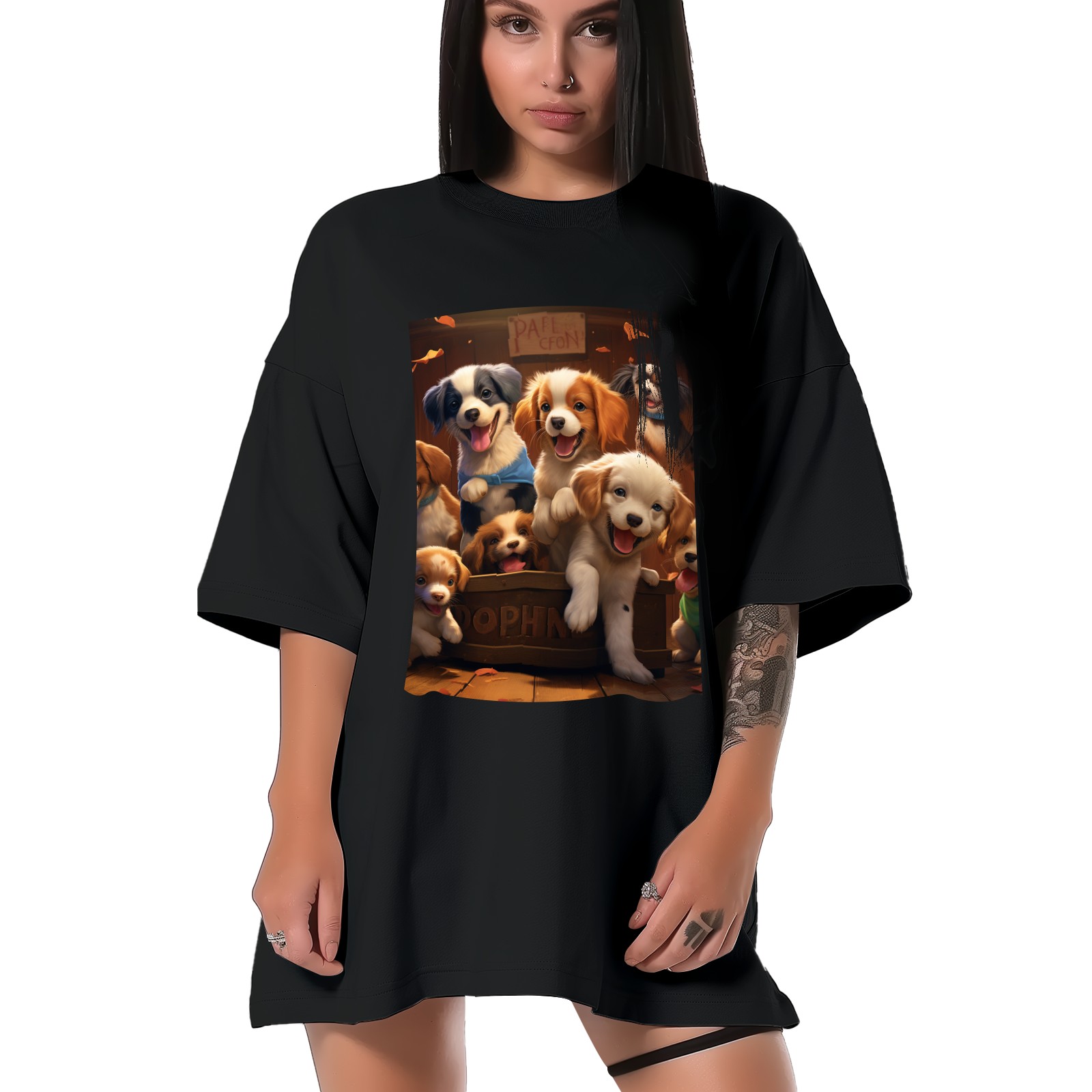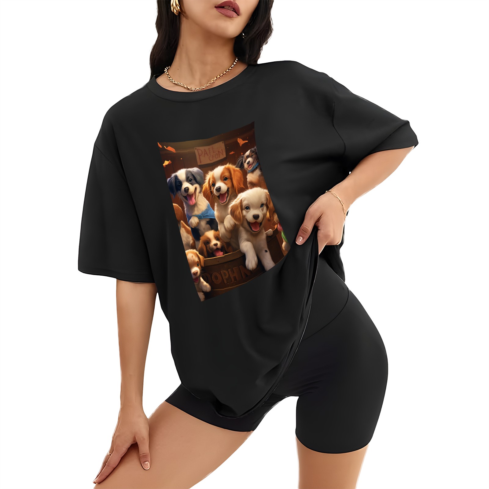 Plus Size Shirt for Women Black Tops for Women Short Sleeves Shirt for Women Puppy 35 T Shirt Crewneck Shirt for Women XS