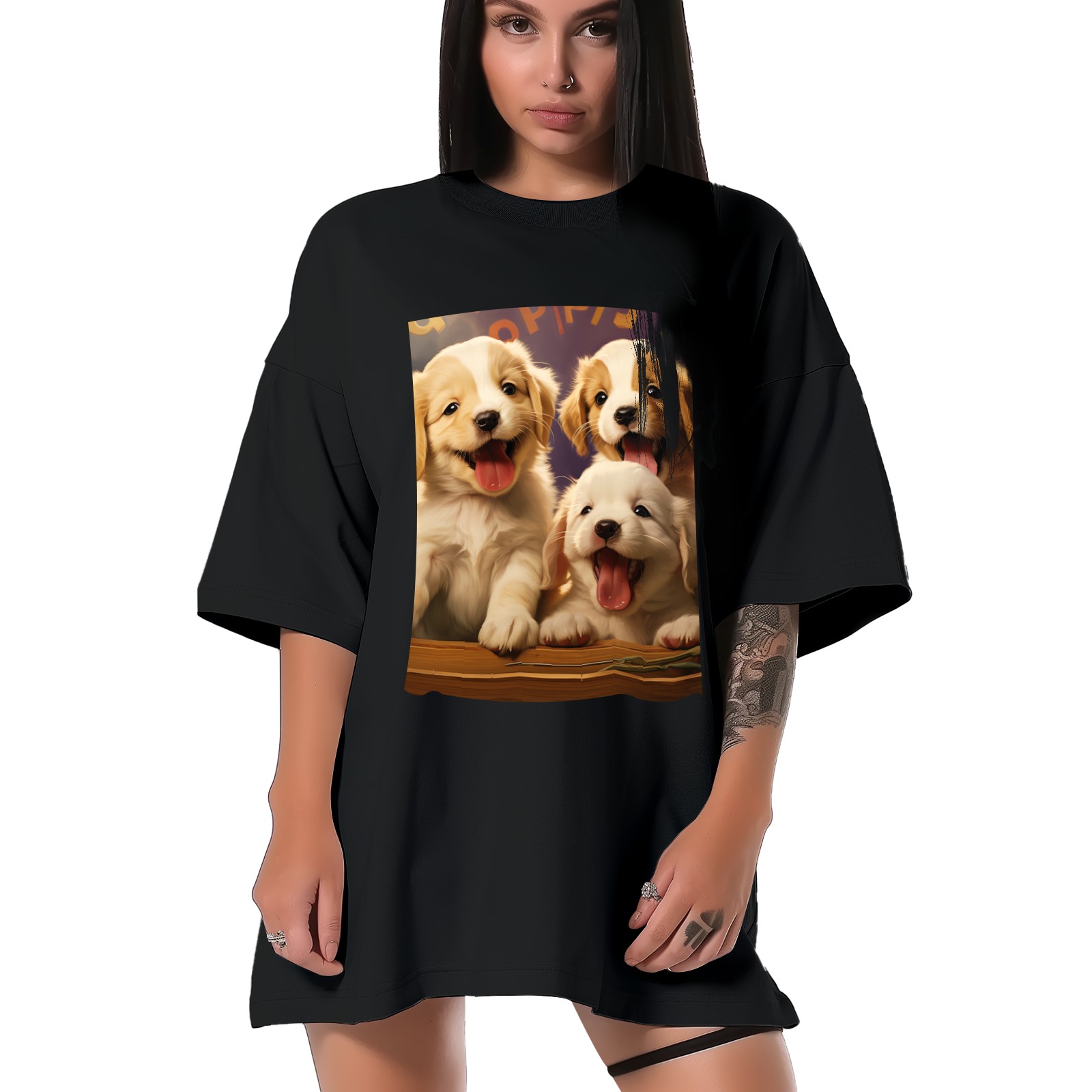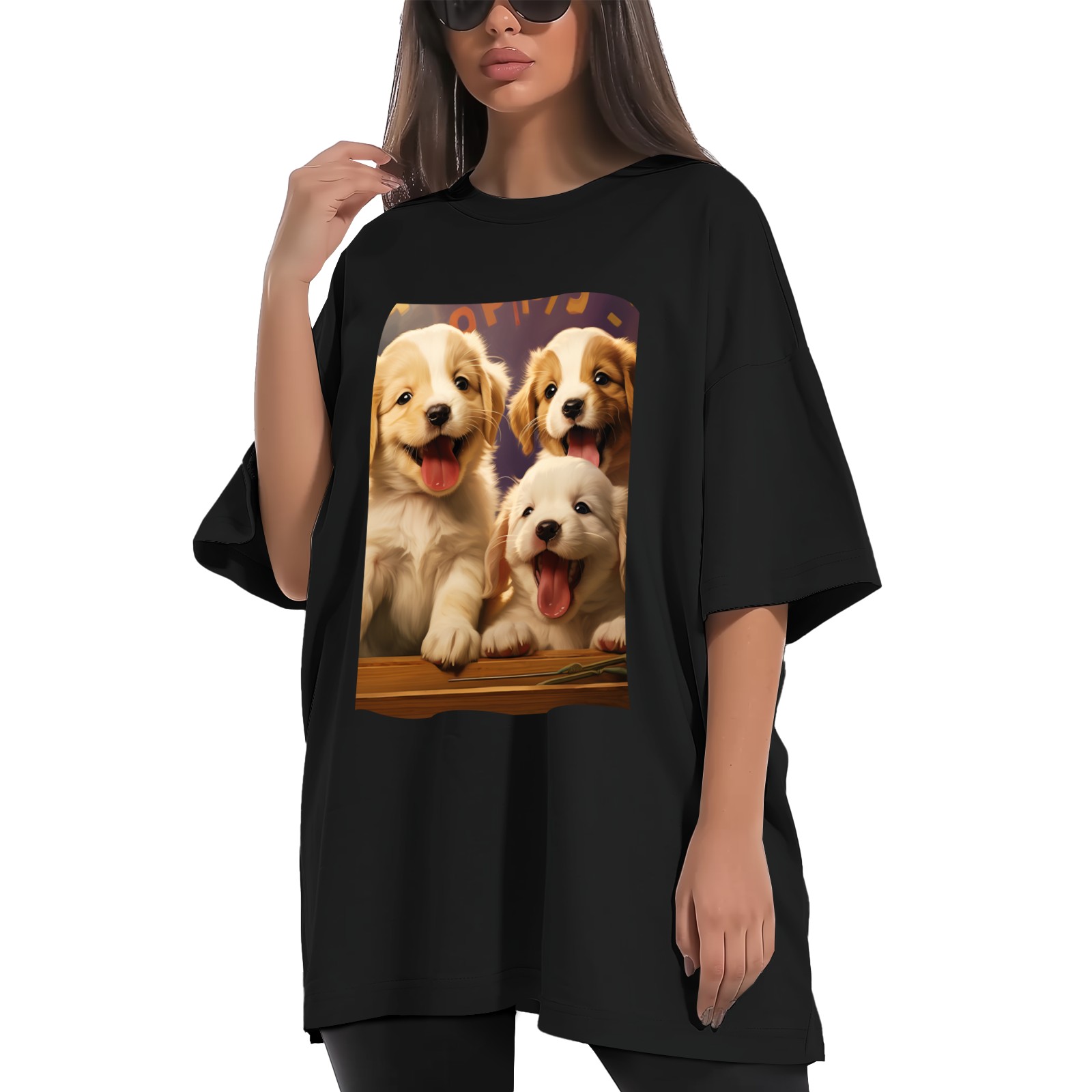 Plus Size Shirt for Women Black Tops for Women Short Sleeves Shirt for Women Puppy 32 T Shirt Crewneck Shirt for Women XS