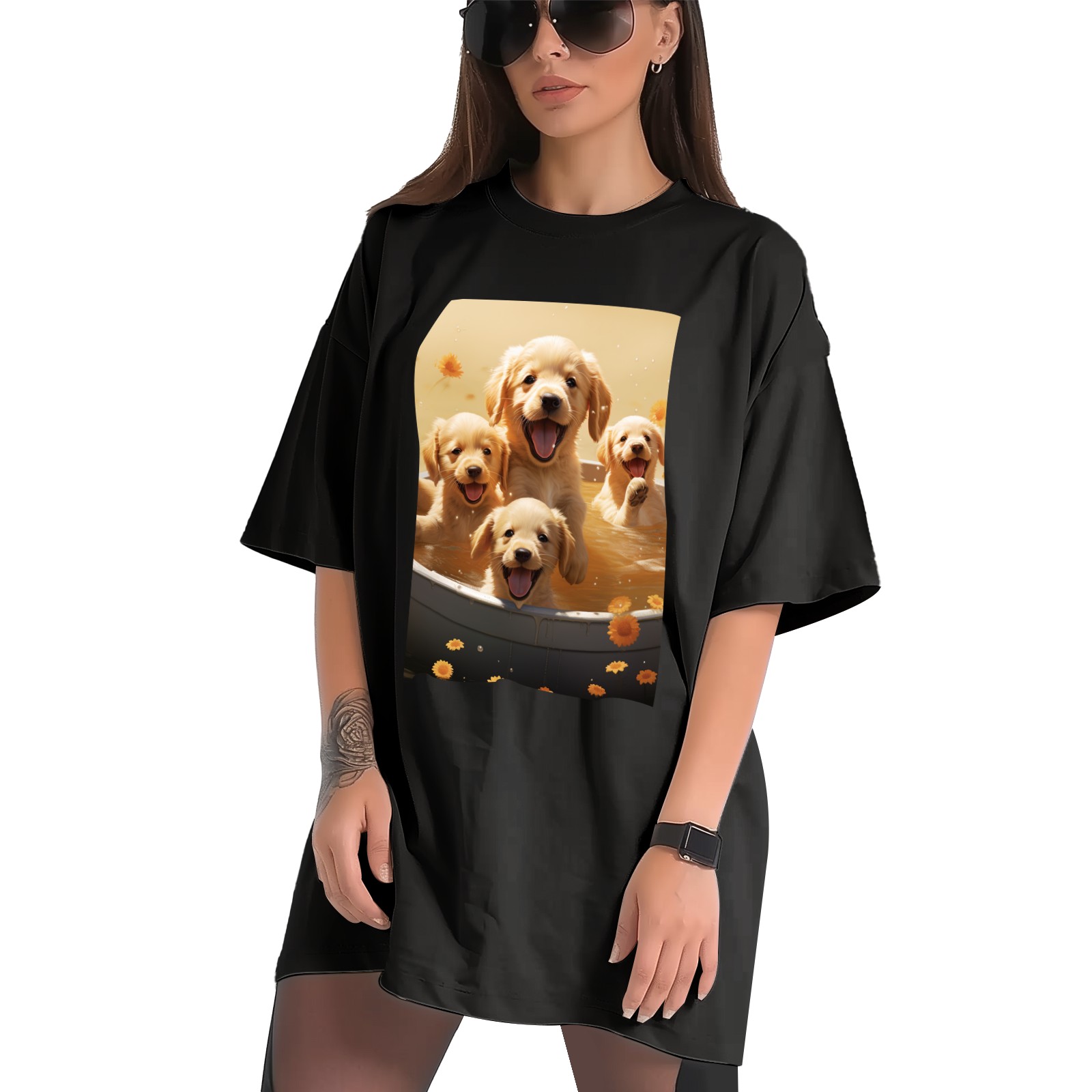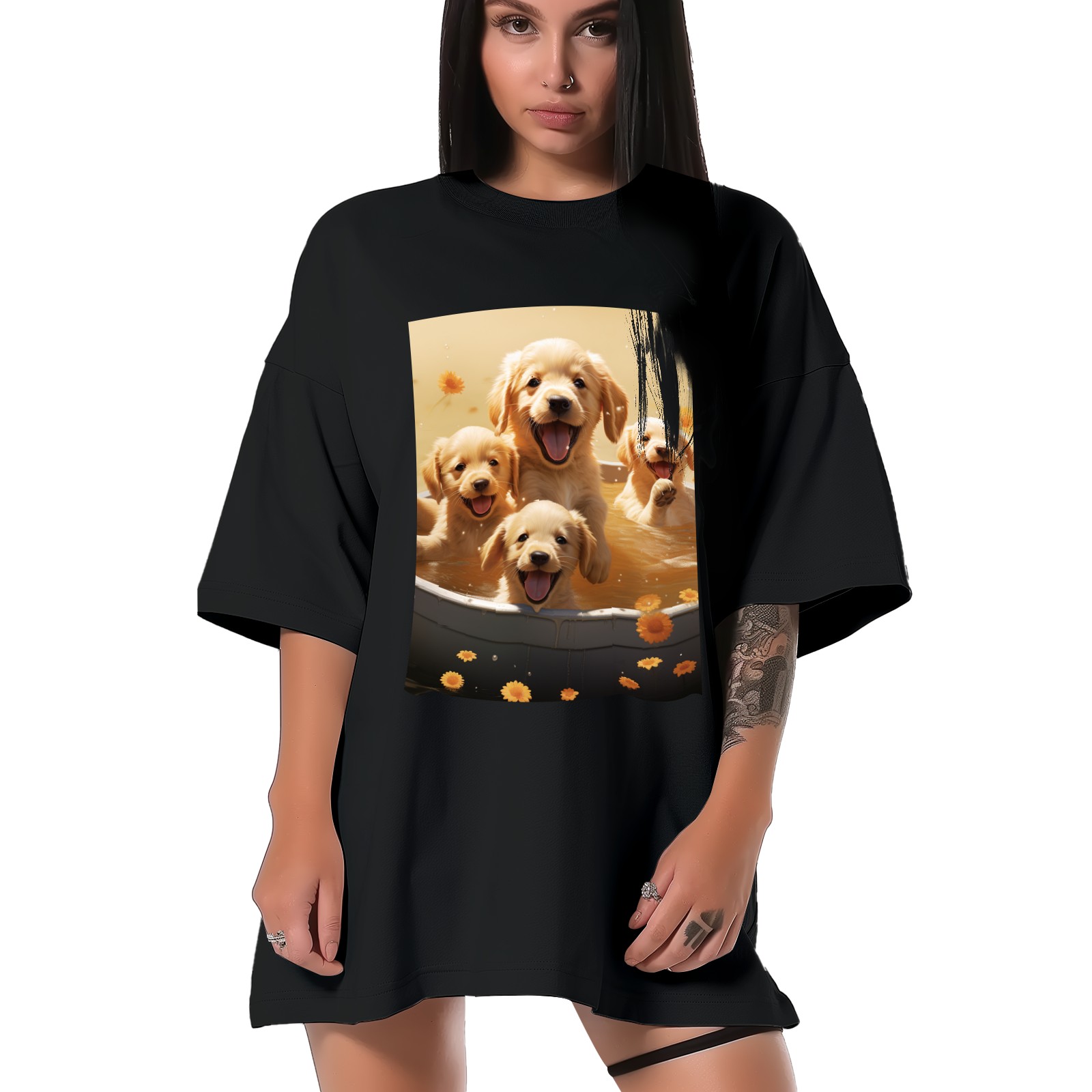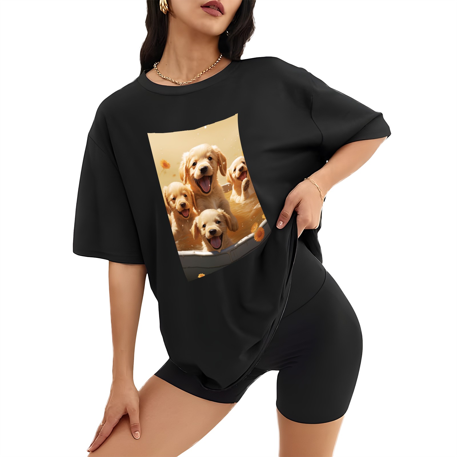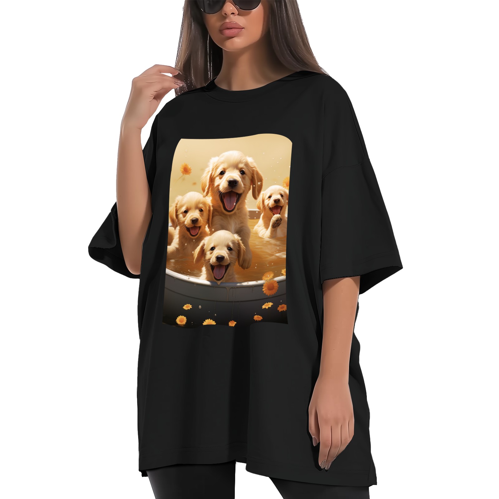 Plus Size Shirt for Women Black Tops for Women Short Sleeves Shirt for Women Puppy 31 T Shirt Crewneck Shirt for Women XS