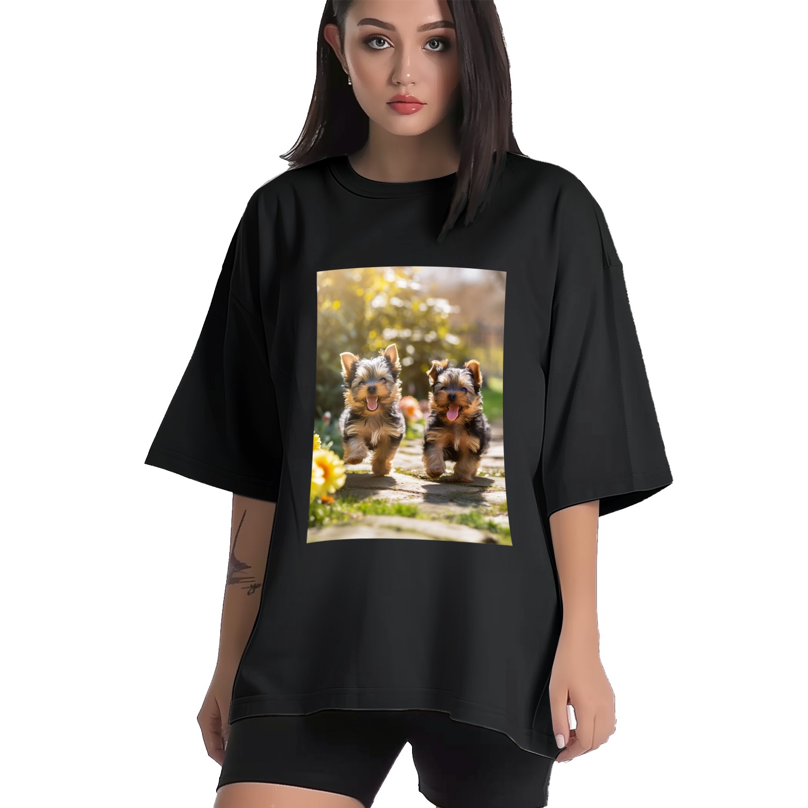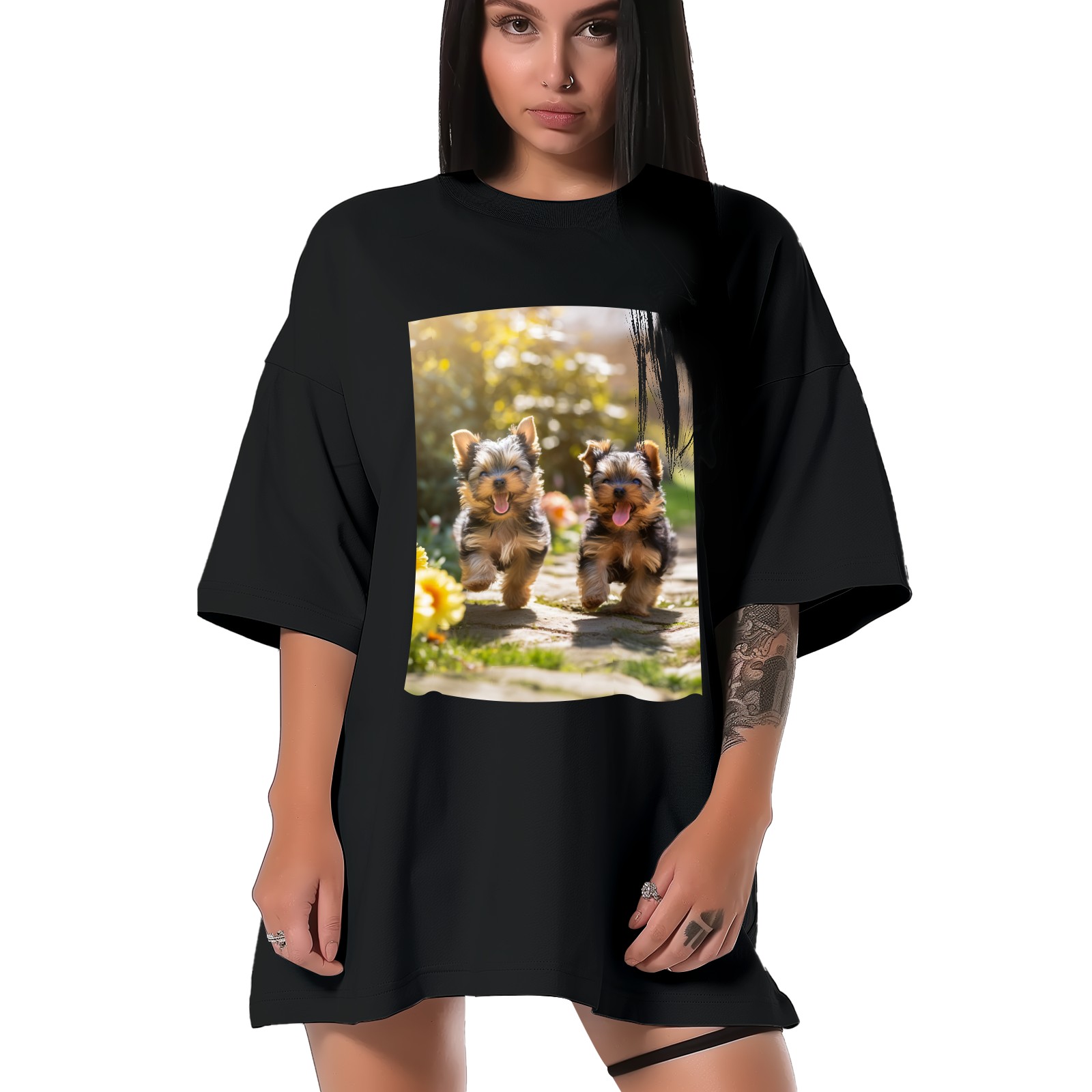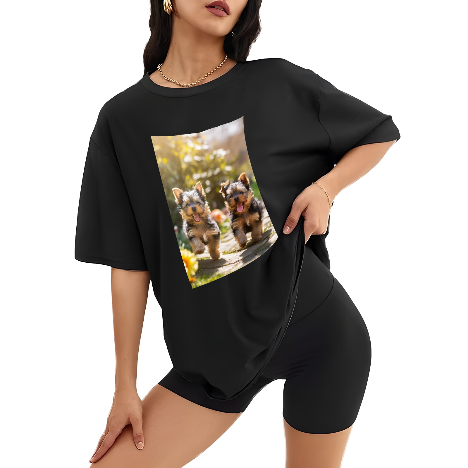 Plus Size Shirt for Women Black Tops for Women Short Sleeves Shirt for Women Puppy 29 T Shirt Crewneck Shirt for Women XS