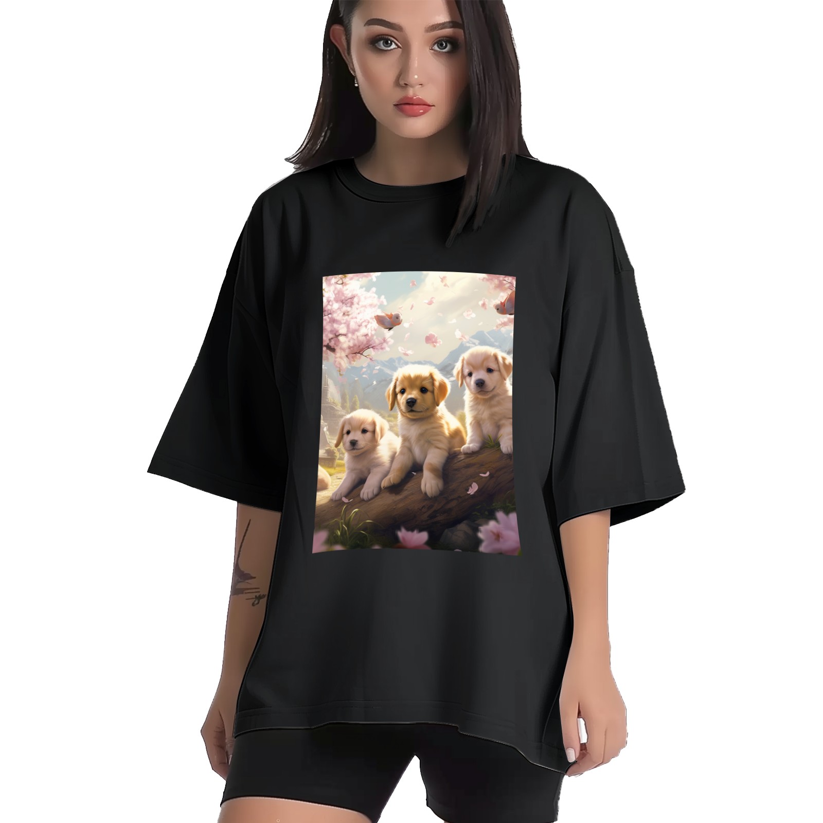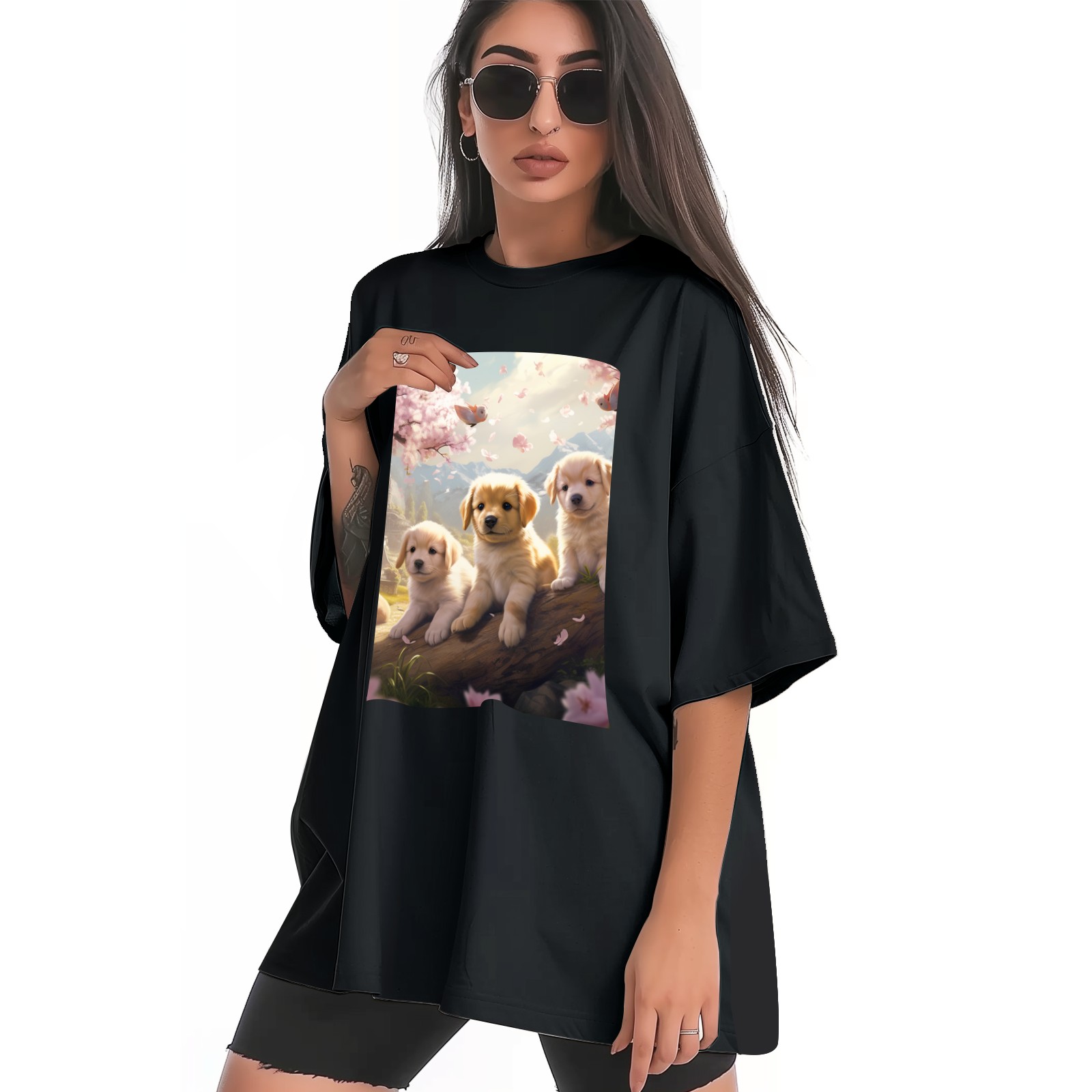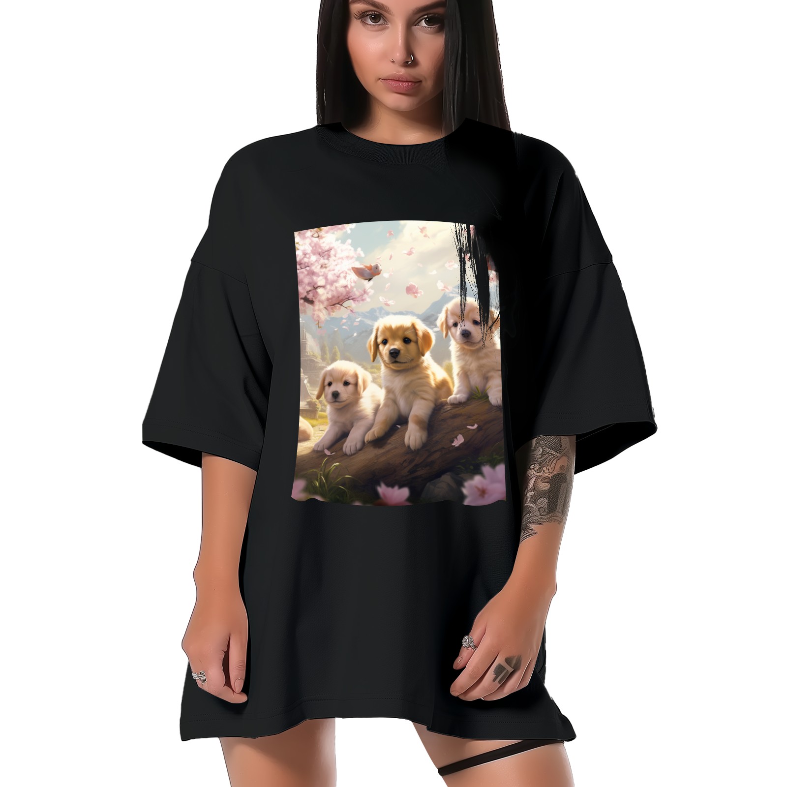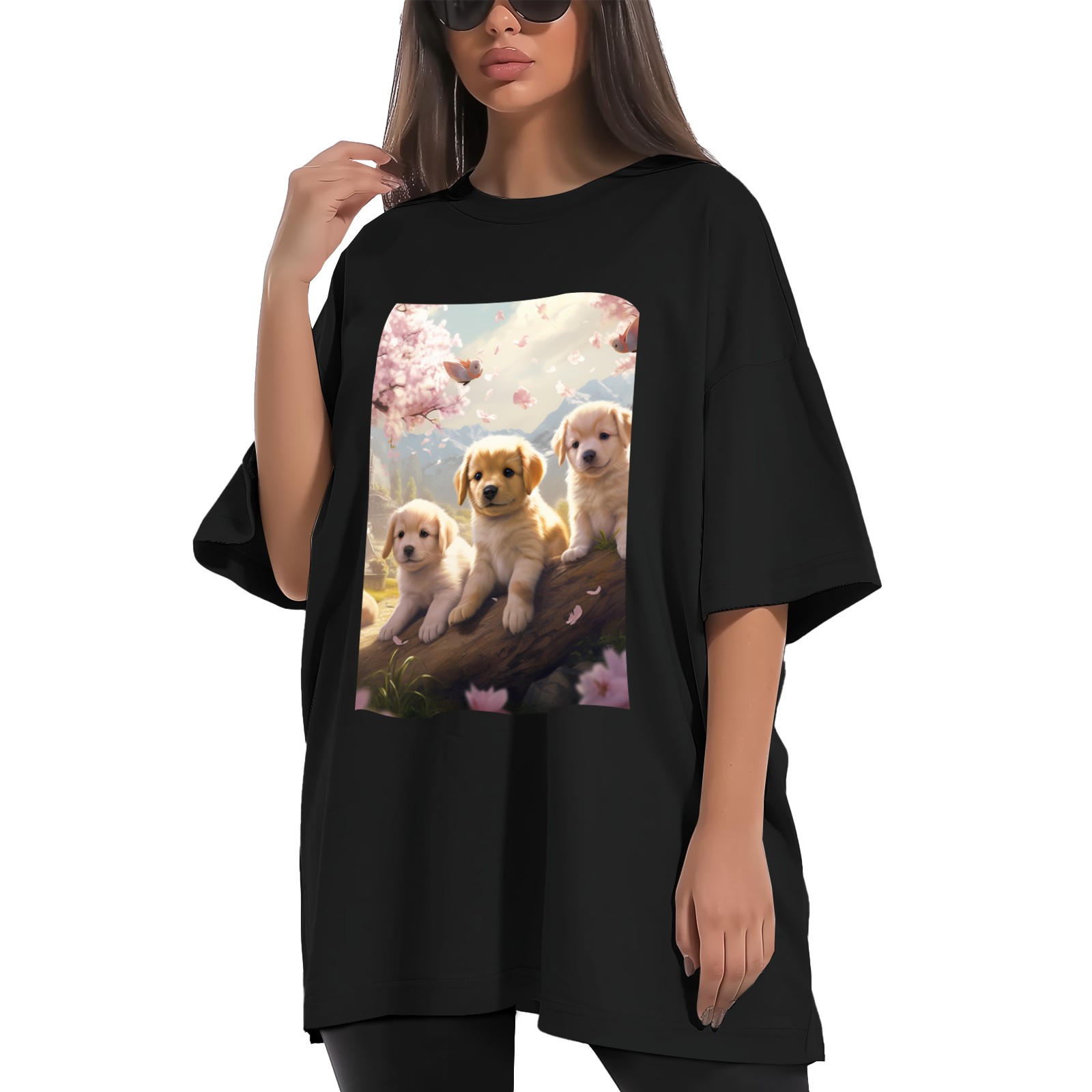 Plus Size Shirt for Women Black Tops for Women Short Sleeves Shirt for Women Puppy 23 T Shirt Crewneck Shirt for Women XS