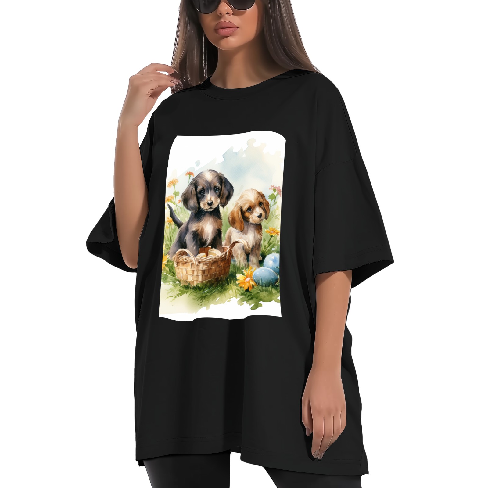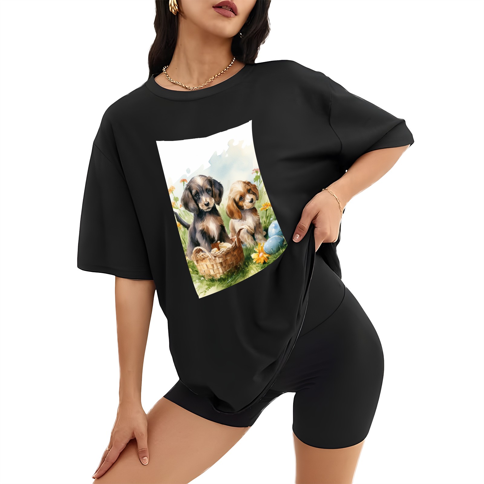 Plus Size Shirt for Women Black Tops for Women Short Sleeves Shirt for Women Puppy 19 T Shirt Crewneck Shirt for Women XS