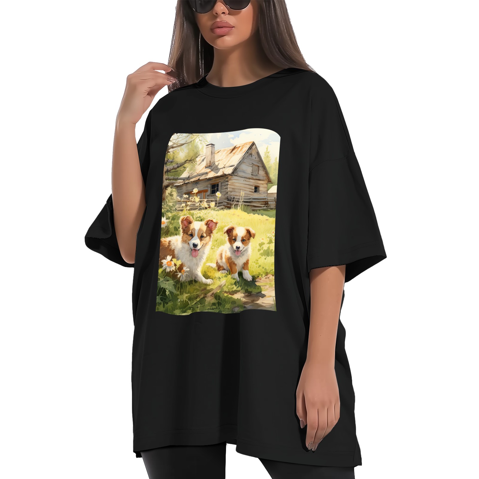 Plus Size Shirt for Women Black Tops for Women Short Sleeves Shirt for Women Puppy 16 T Shirt Crewneck Shirt for Women XS
