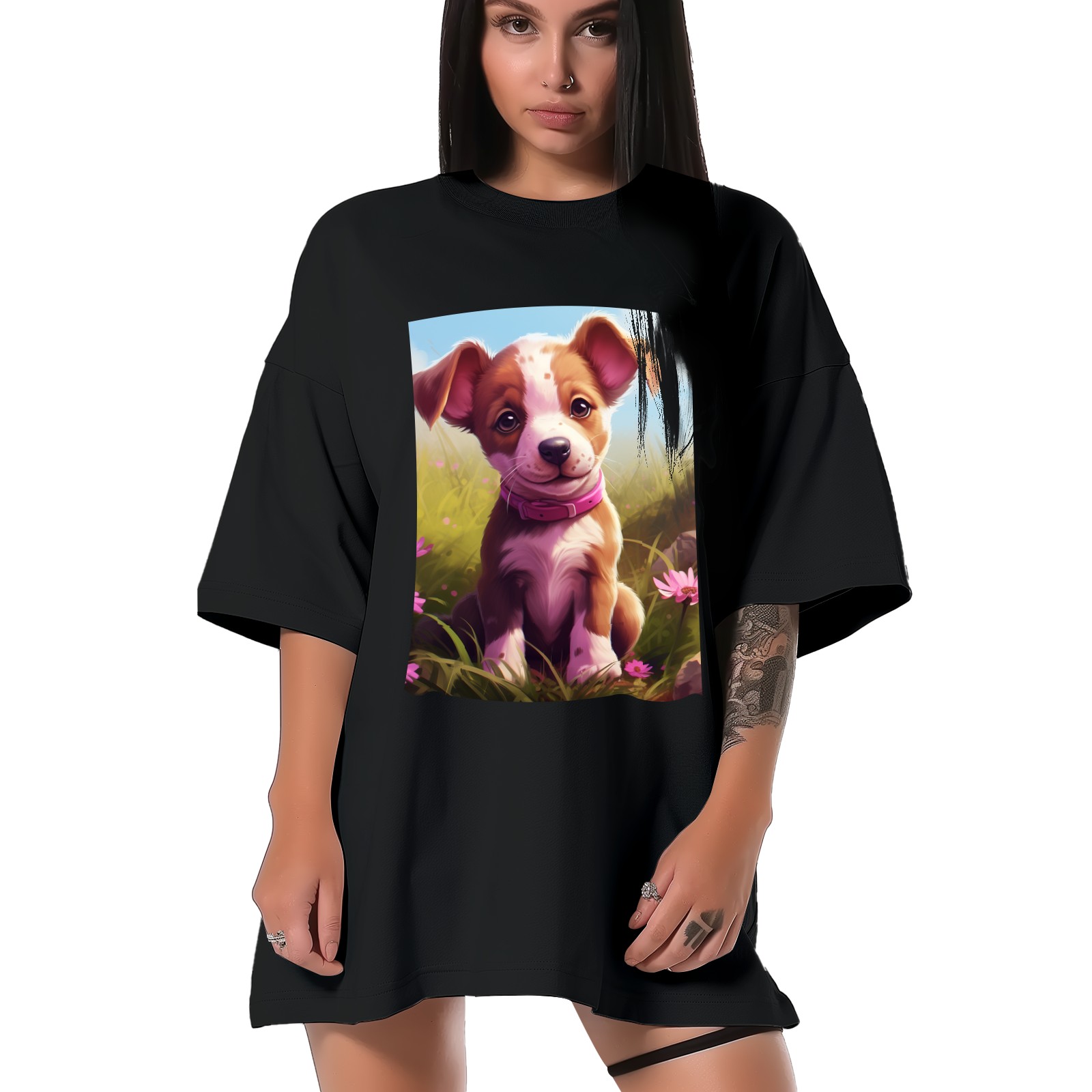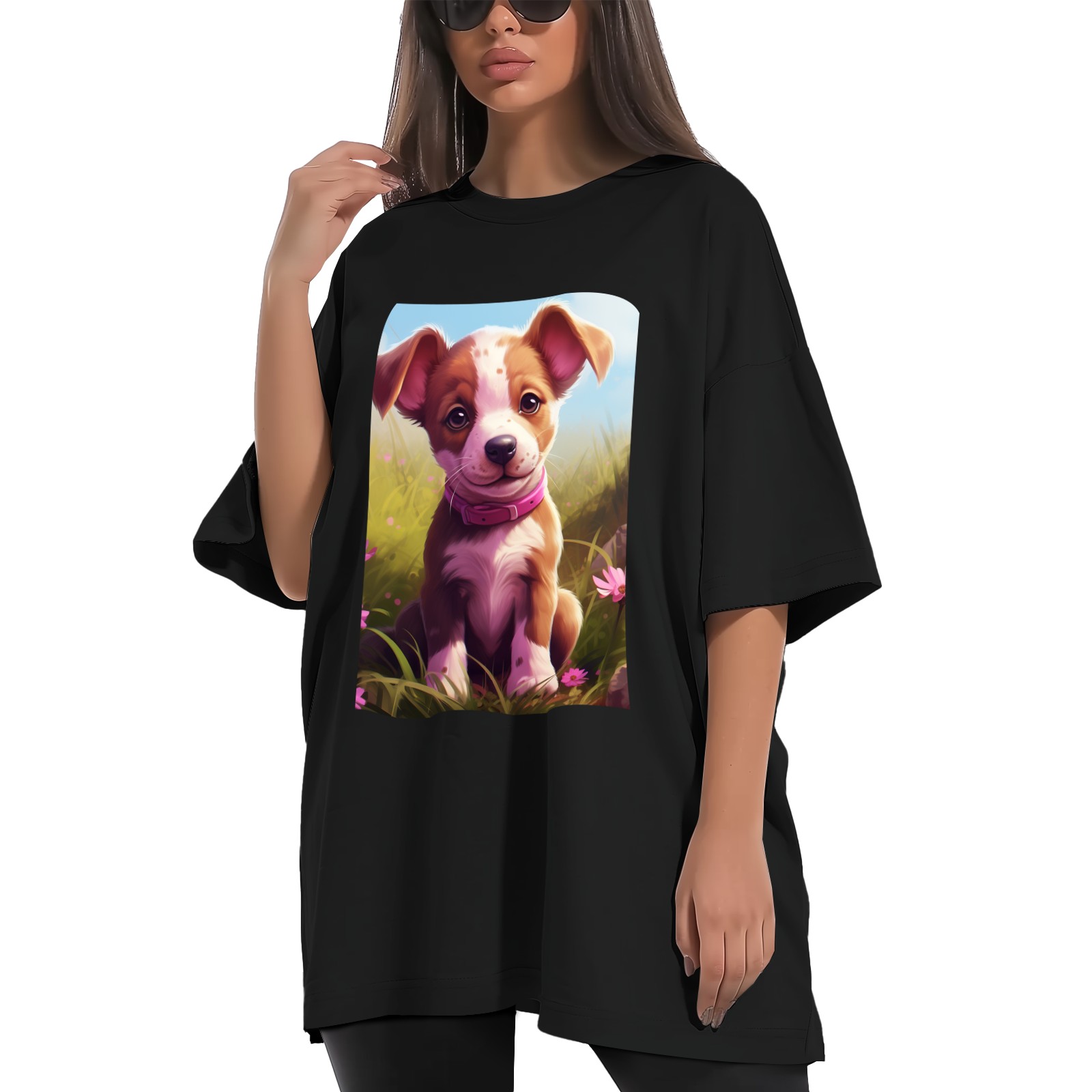 Plus Size Shirt for Women Black Tops for Women Short Sleeves Shirt for Women Puppy 10 T Shirt Crewneck Shirt for Women XS