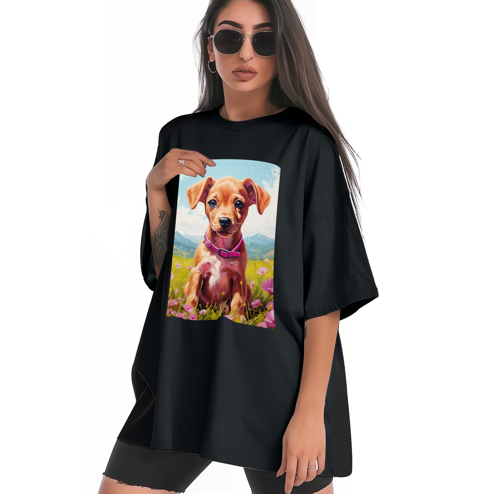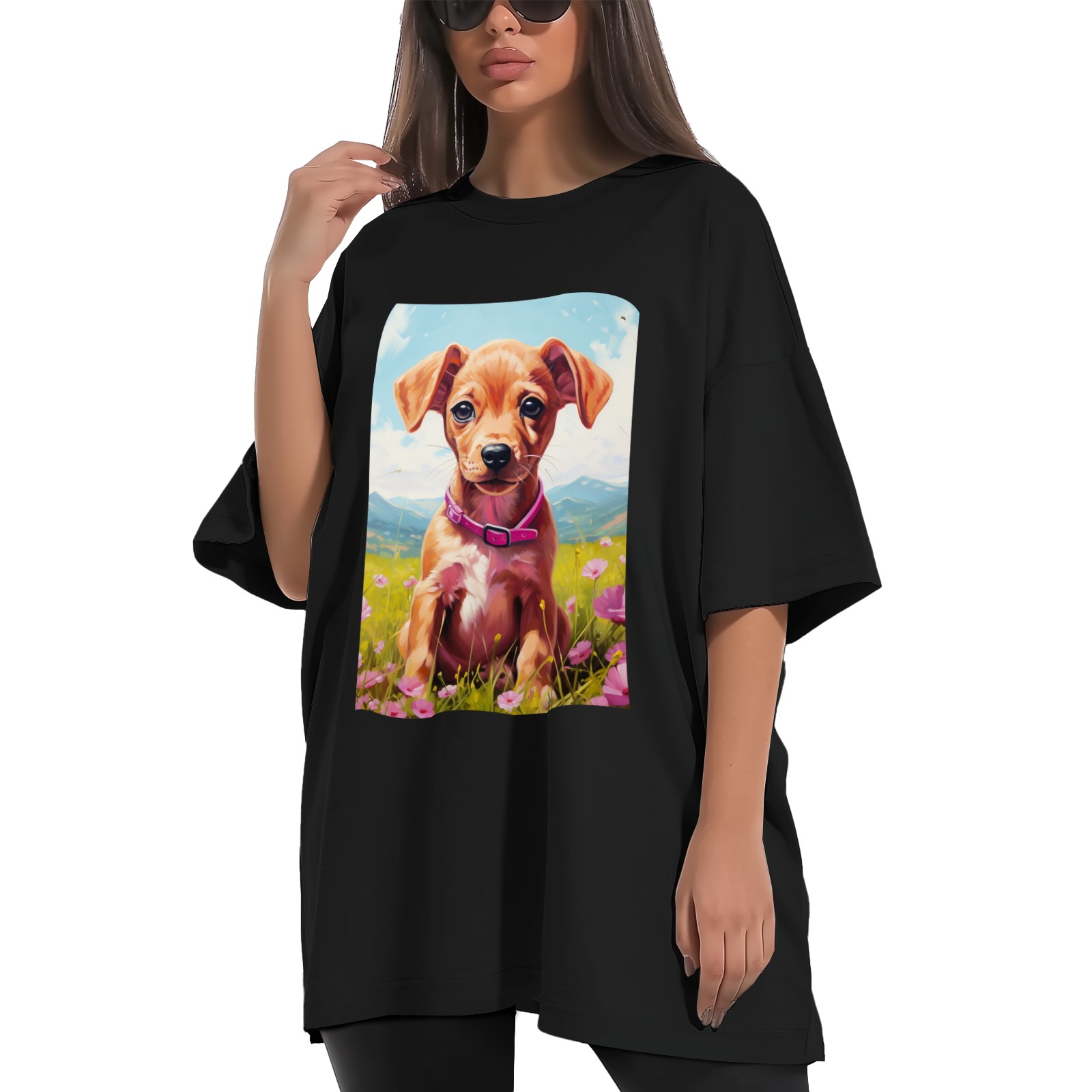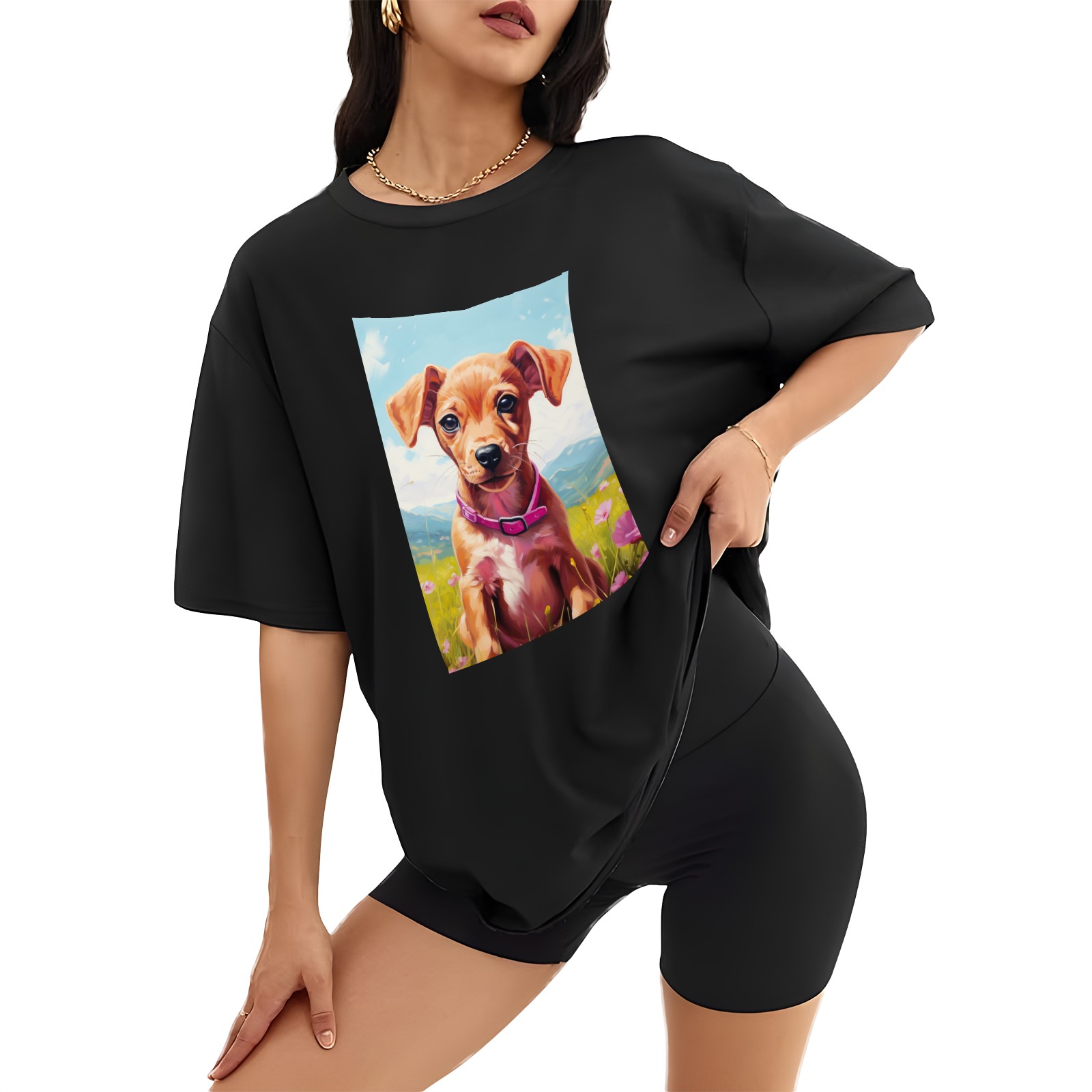 Plus Size Shirt for Women Black Tops for Women Short Sleeves Shirt for Women Puppy 9 T Shirt Crewneck Shirt for Women XS