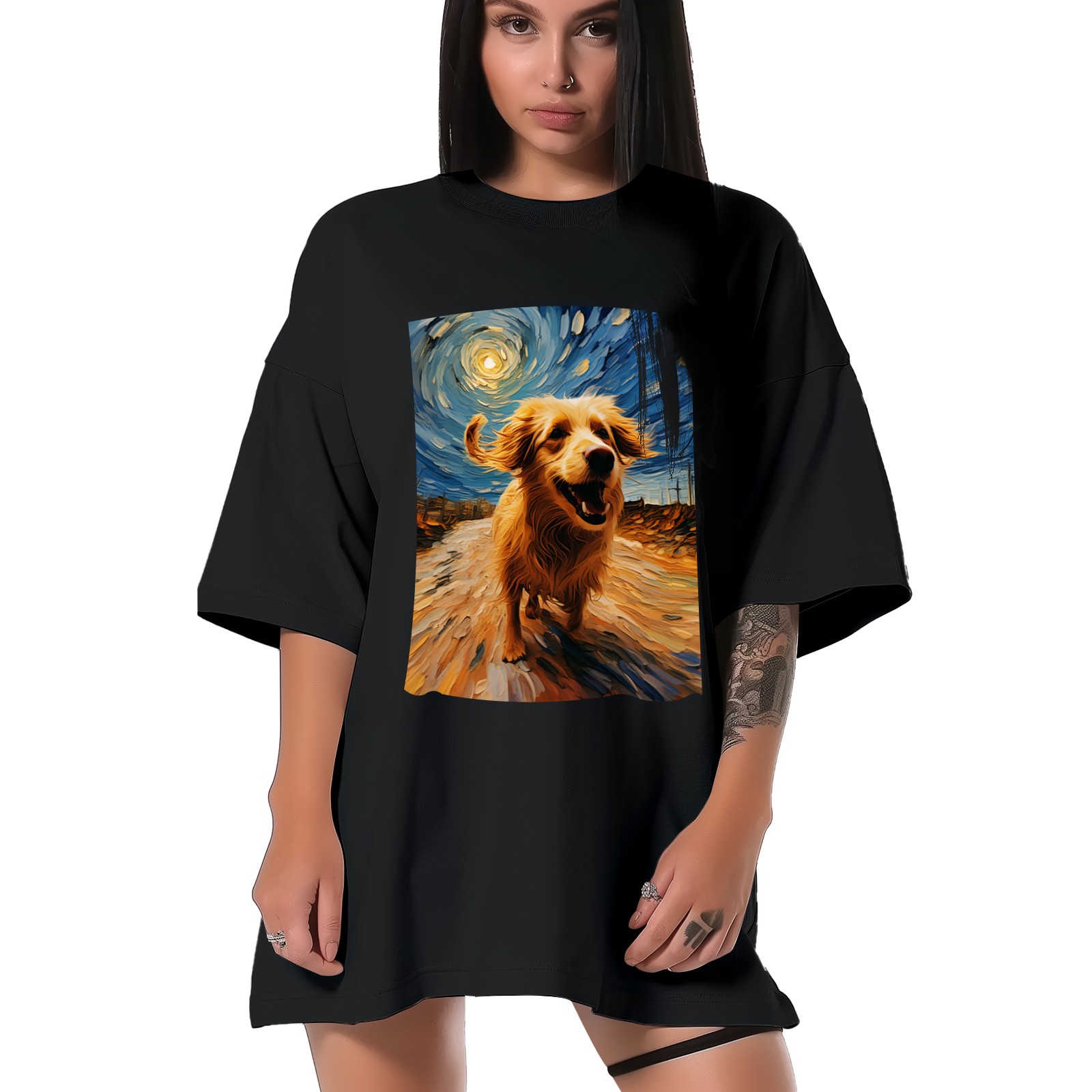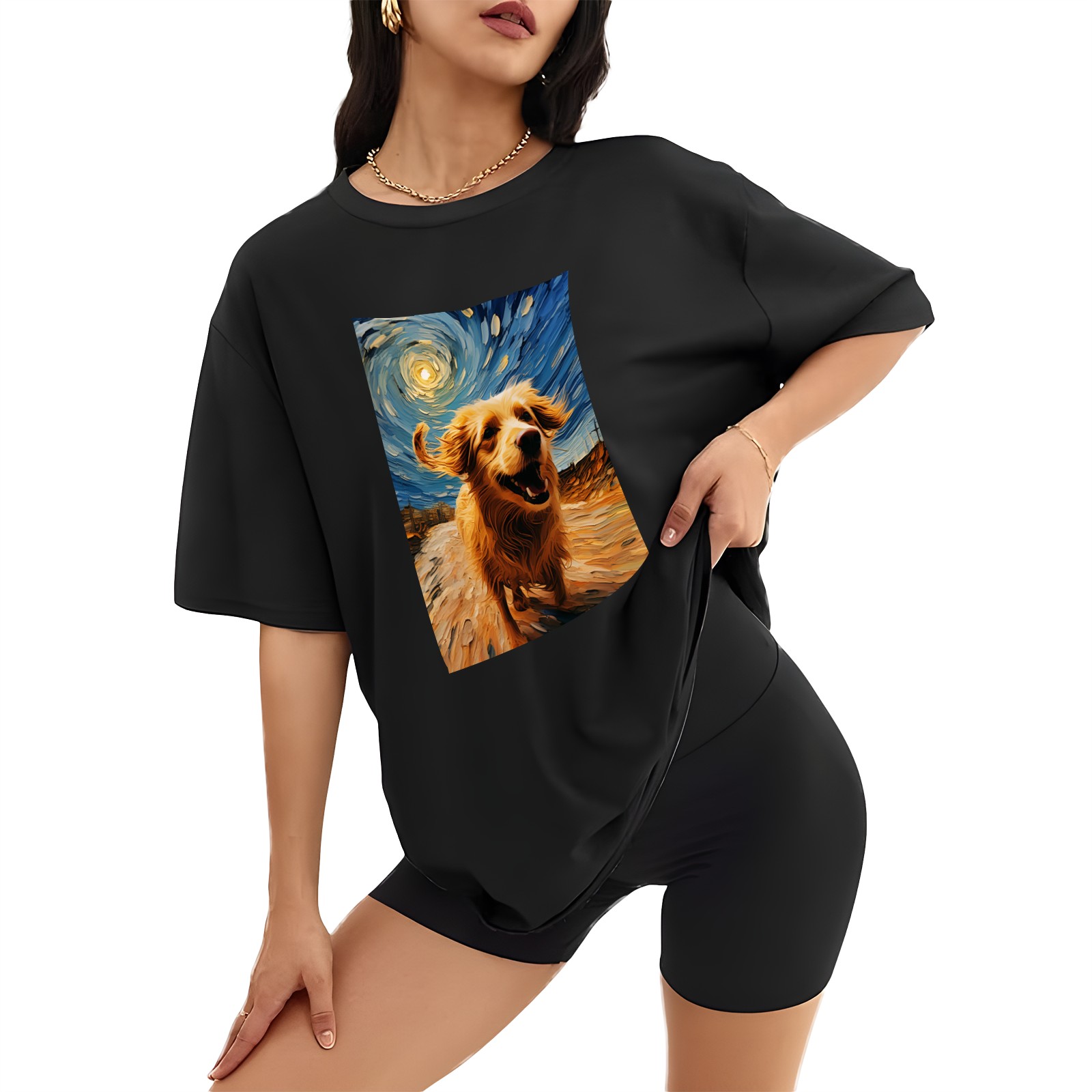 Plus Size Shirt for Women Black Tops for Women Short Sleeves Shirt for Women Dogs In The Night (9) T Shirt Crewneck Shirt for Women XS