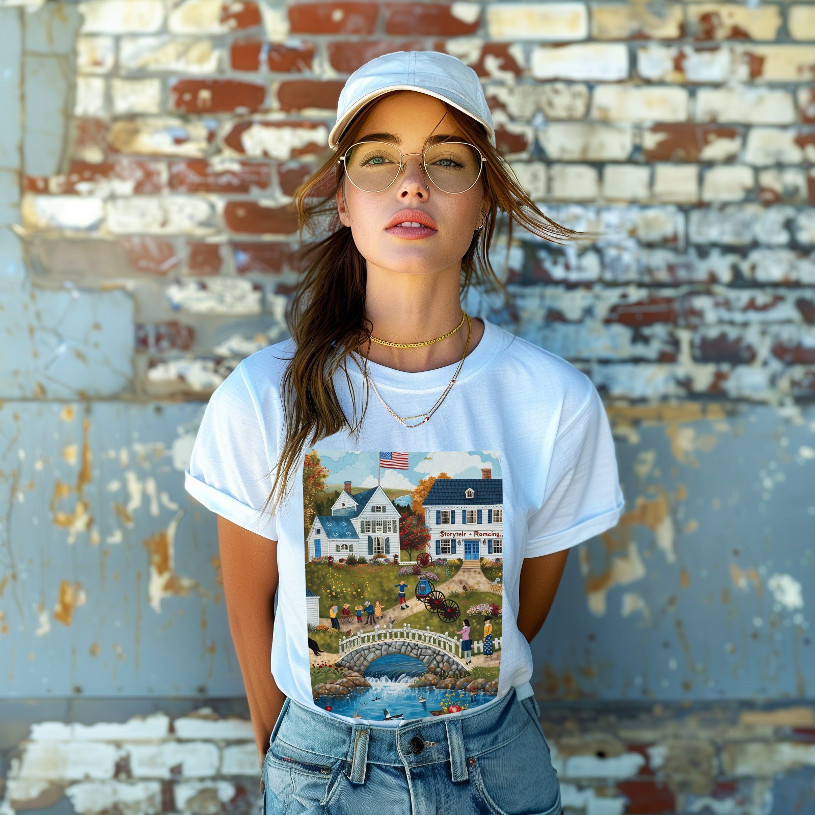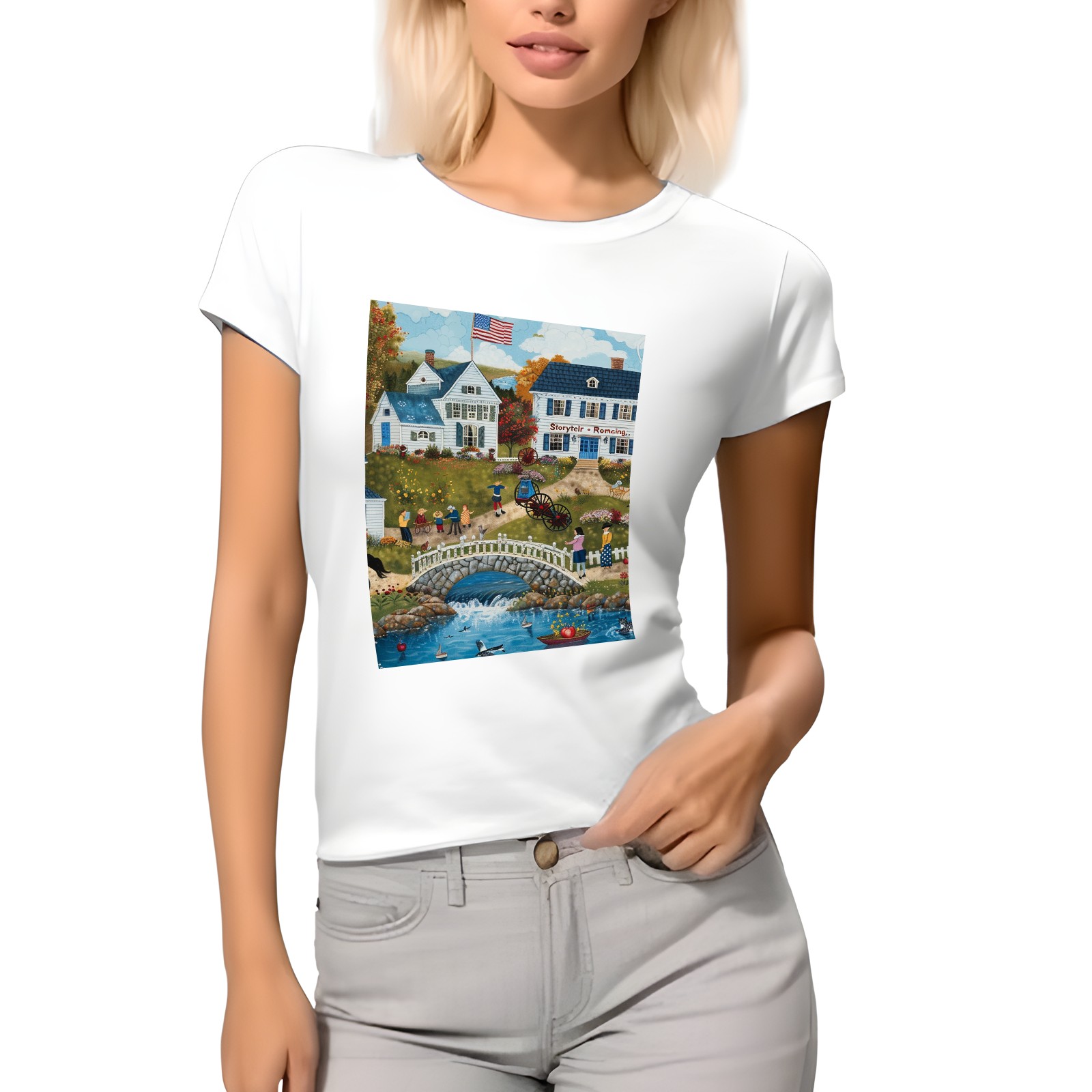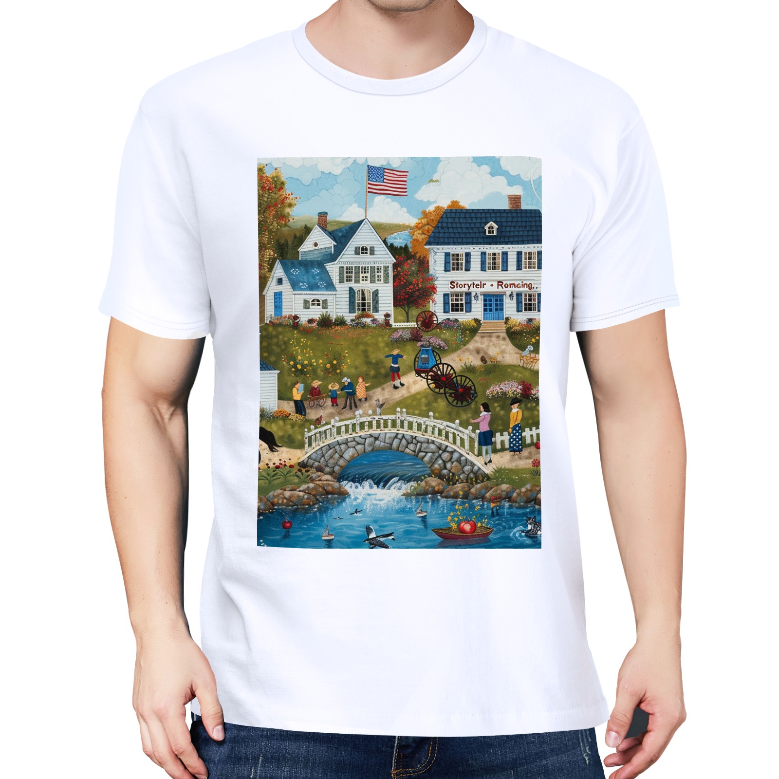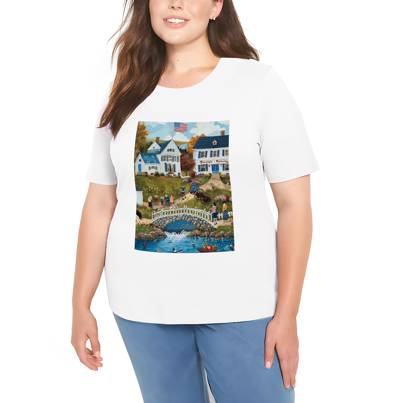 Basic Oversize Tees For WomenScenery Loose Boyfriend Shirts Casual Blouse round neck