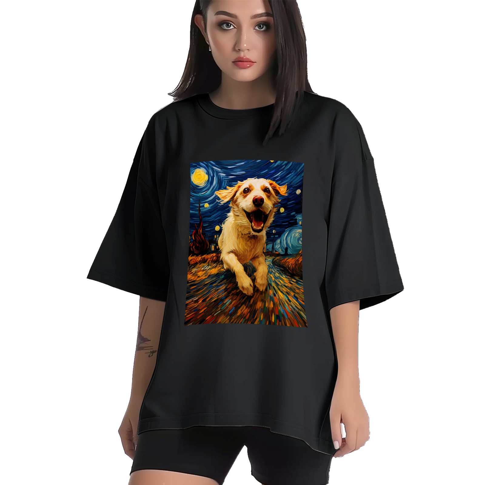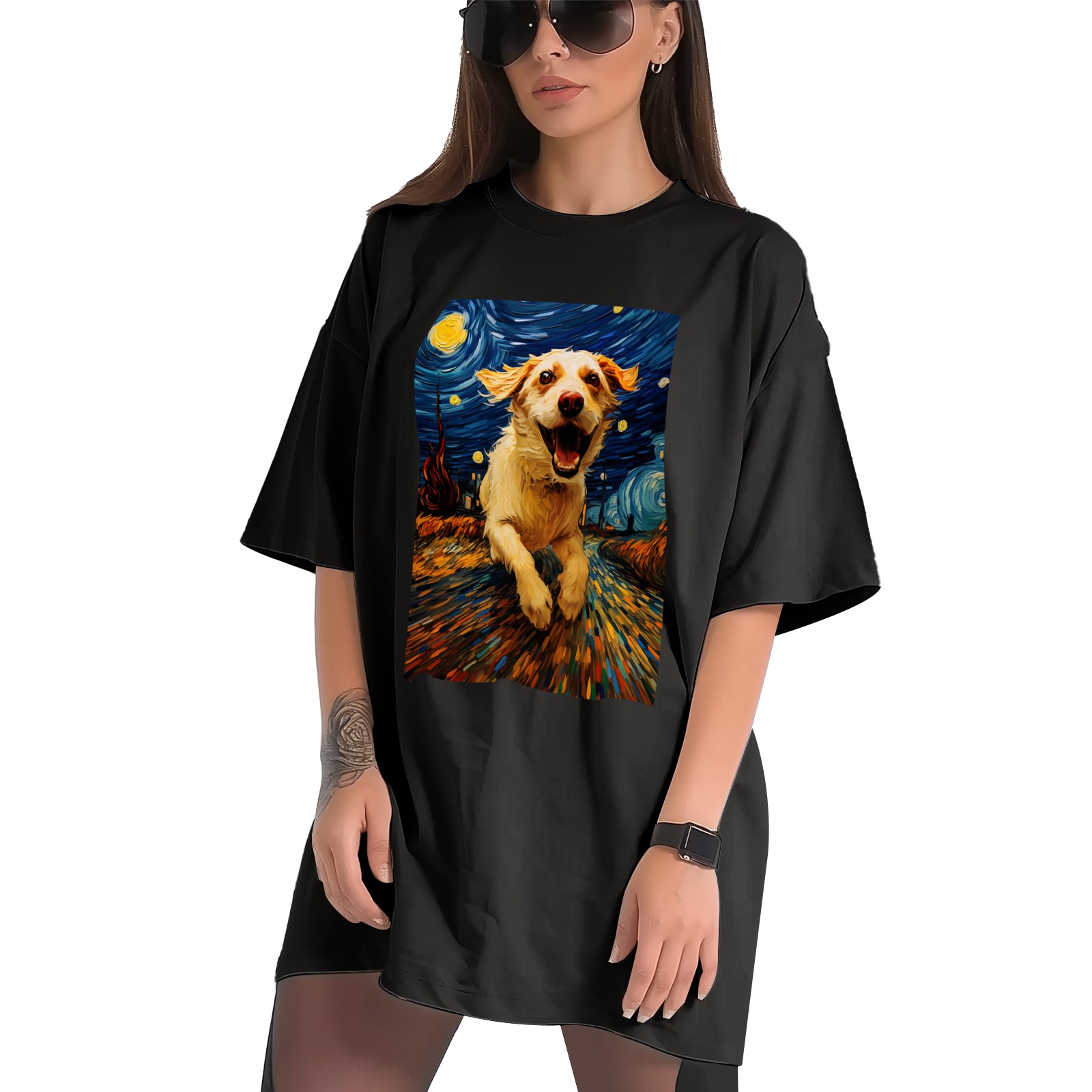 Plus Size Shirt for Women Black Tops for Women Short Sleeves Shirt for Women Dogs In The Night (8) T Shirt Crewneck Shirt for Women XS