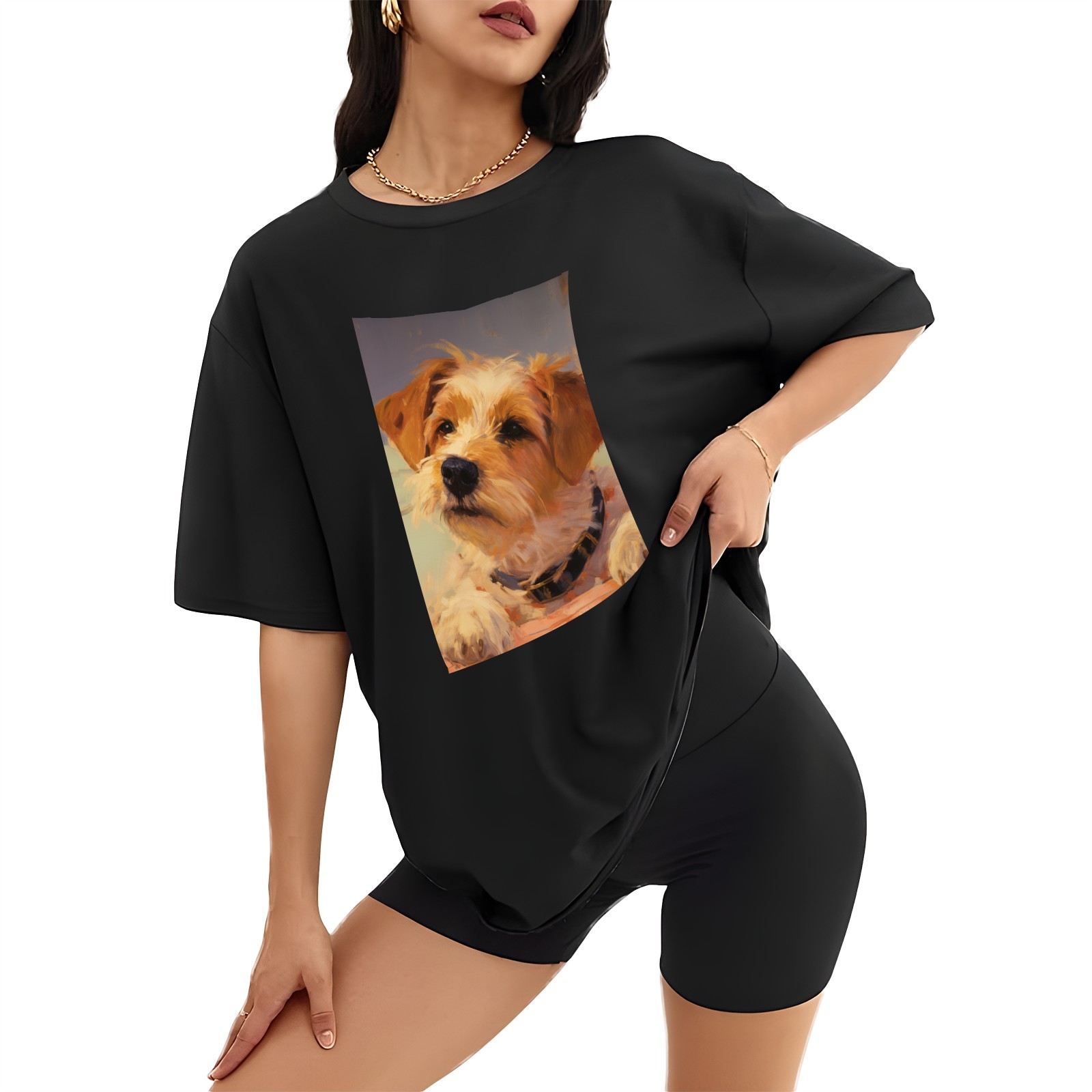 Plus Size Shirt for Women Black Tops for Women Short Sleeves Shirt for Women Dogs In The Night (3) T Shirt Crewneck Shirt for Women XS