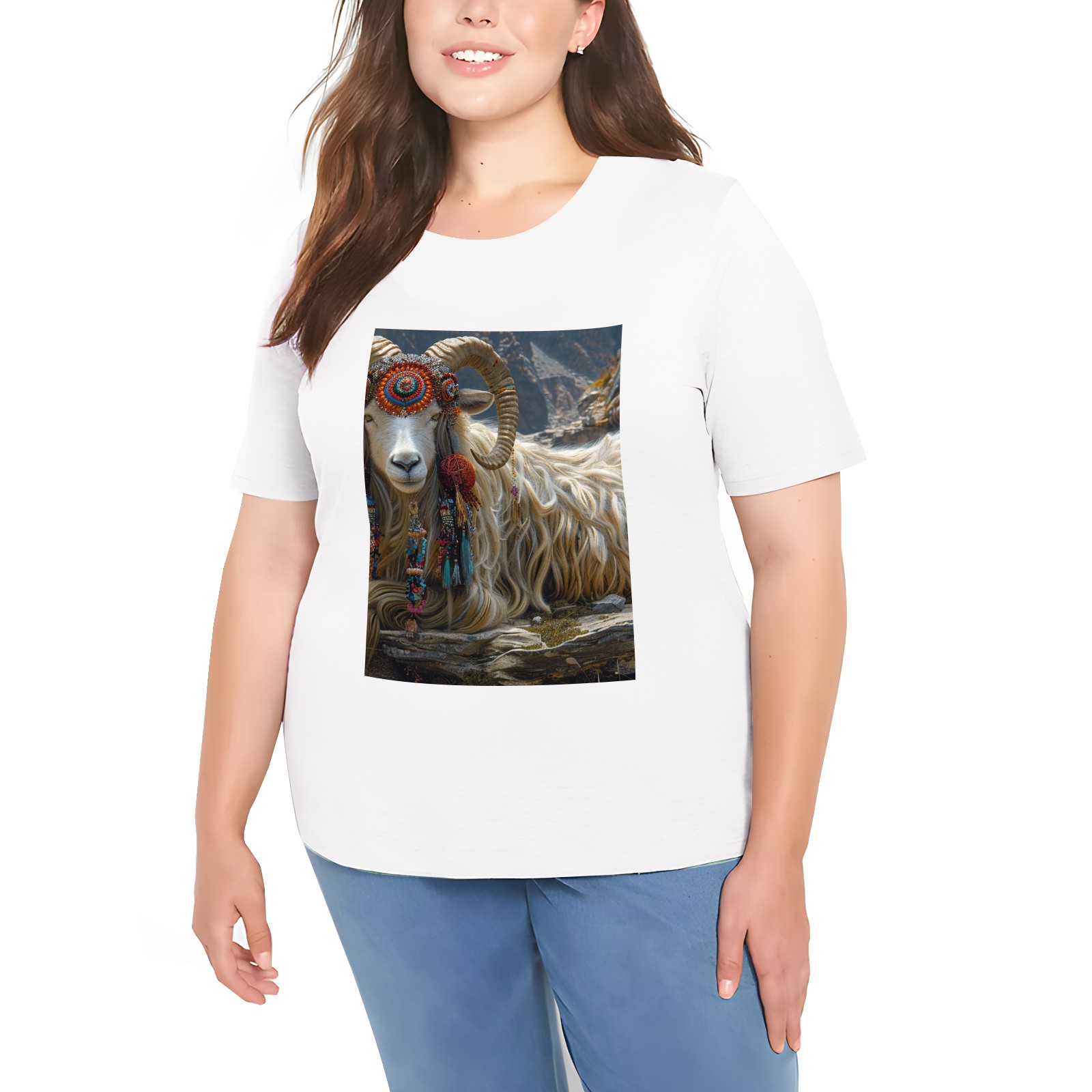Basic Oversize Tees For WomenSheep Loose Boyfriend Shirts Casual Blouse round neck
