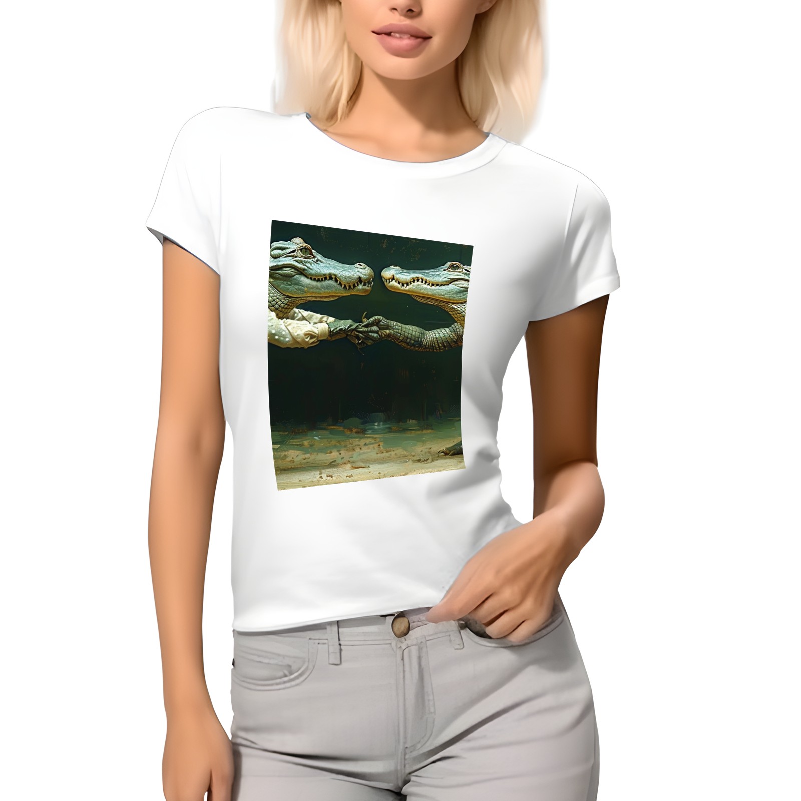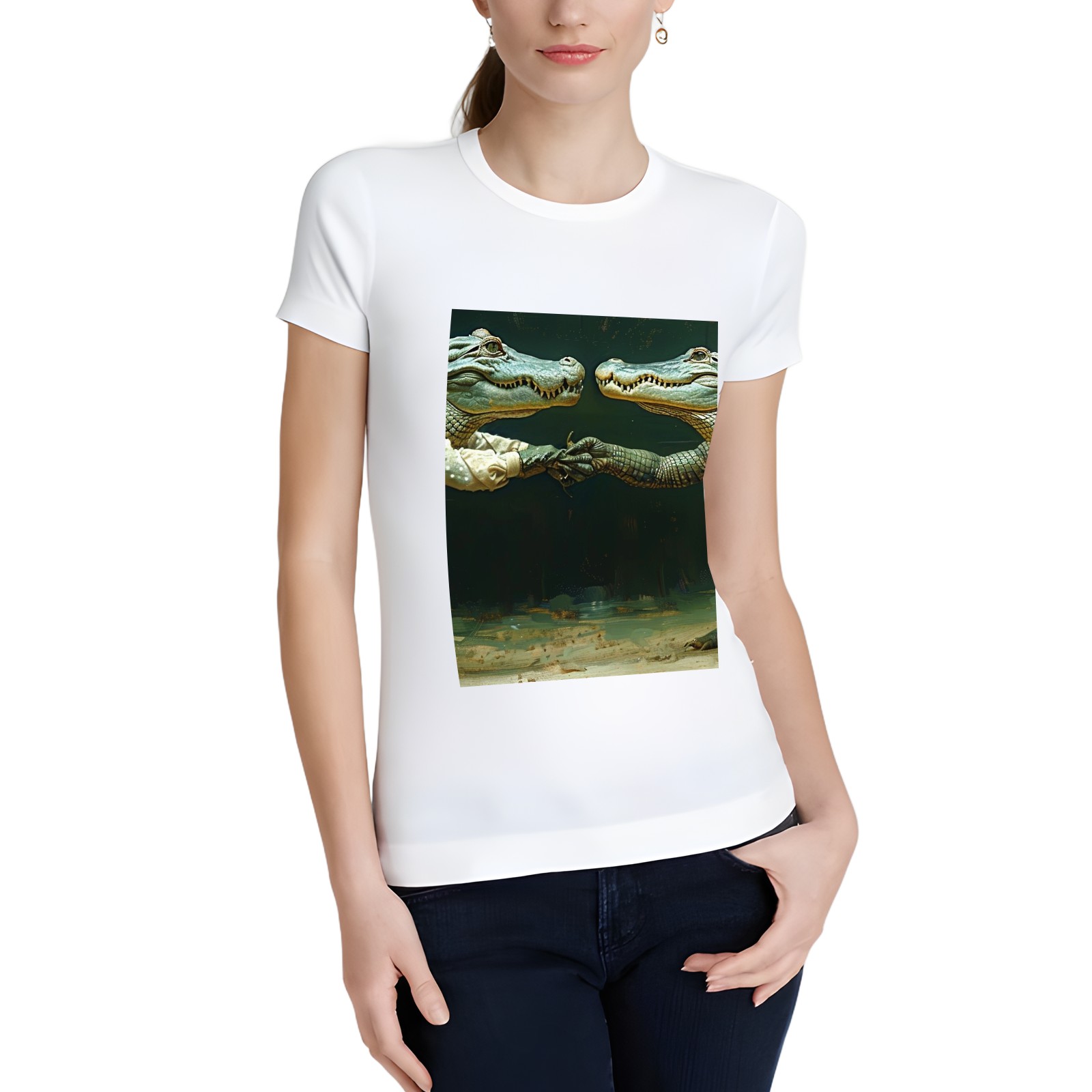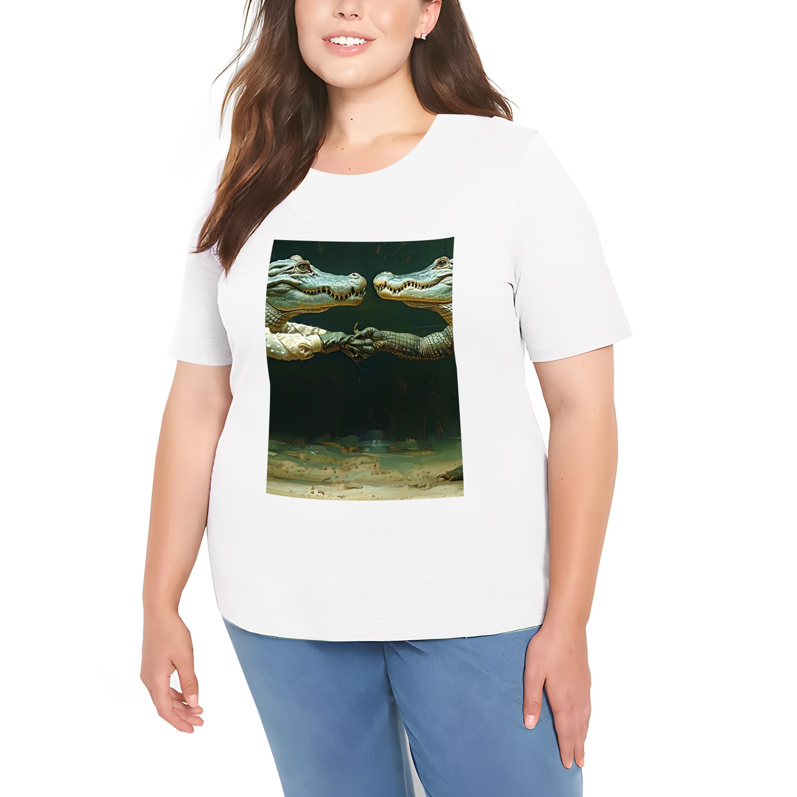 Basic Oversize Tees For WomenCrocodile Loose Boyfriend Shirts Casual Blouse round neck