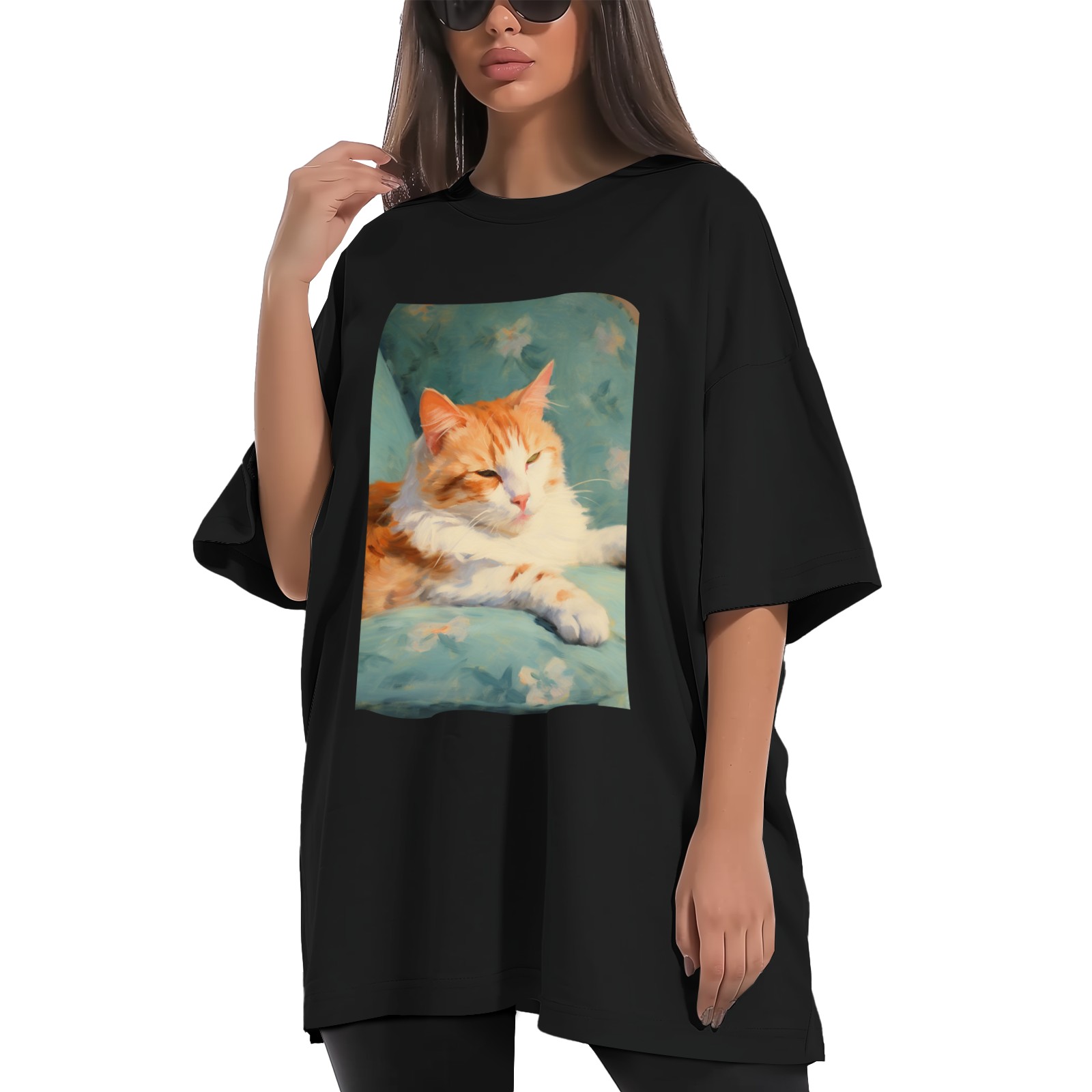 Plus Size Shirt for Women Black Tops for Women Short Sleeves Shirt for Women Cat (53) T Shirt Crewneck Shirt for Women XS