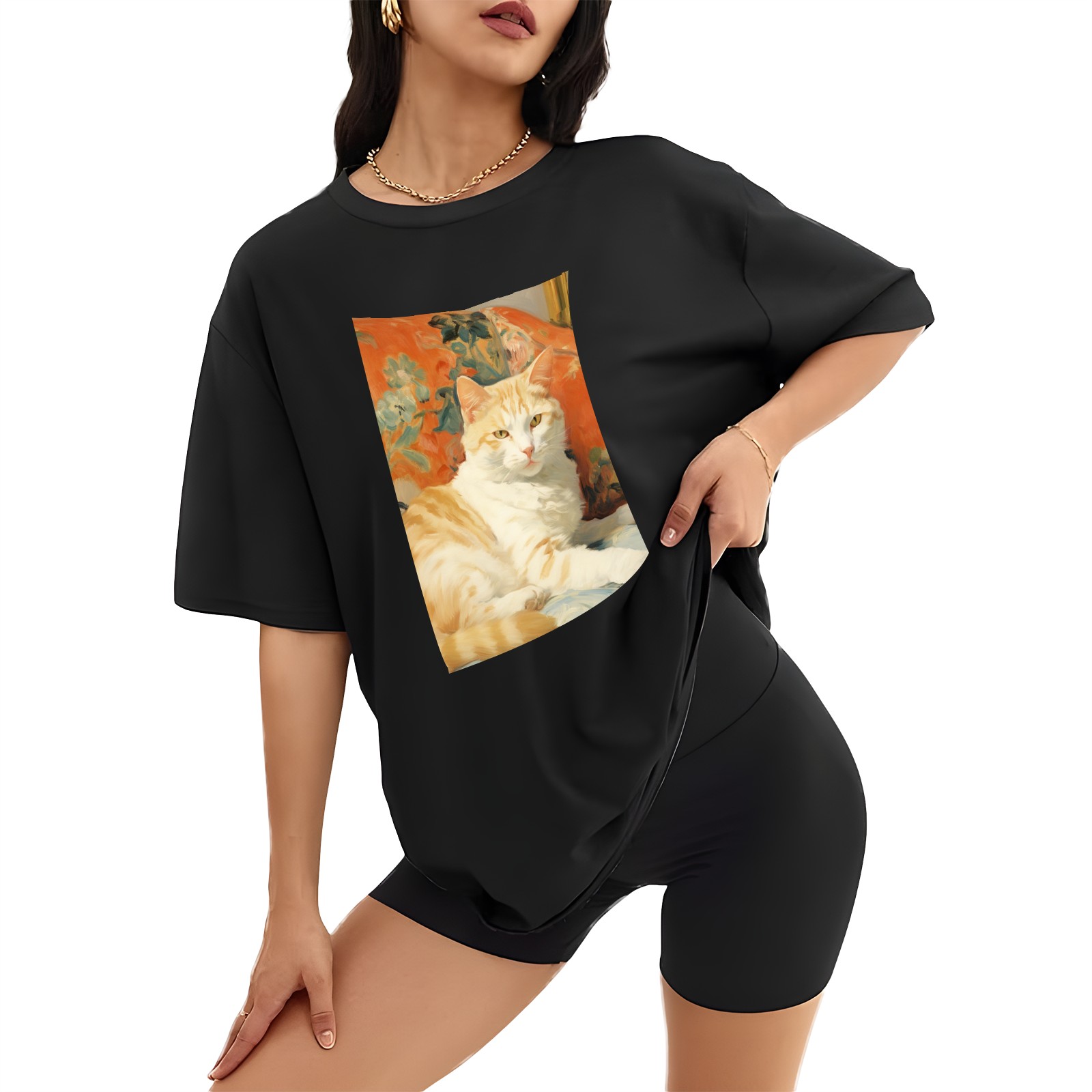 Plus Size Shirt for Women Black Tops for Women Short Sleeves Shirt for Women Cat (52) T Shirt Crewneck Shirt for Women XS