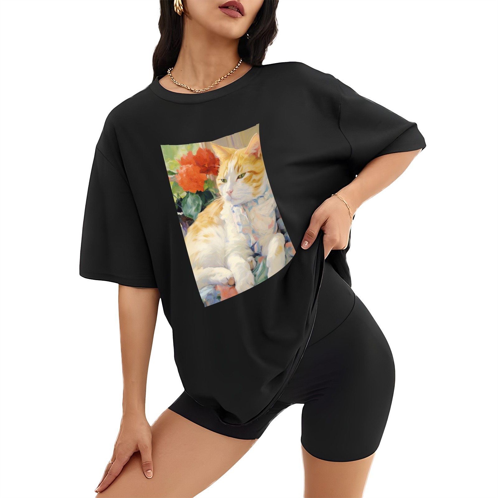 Plus Size Shirt for Women Black Tops for Women Short Sleeves Shirt for Women Cat (51) T Shirt Crewneck Shirt for Women XS