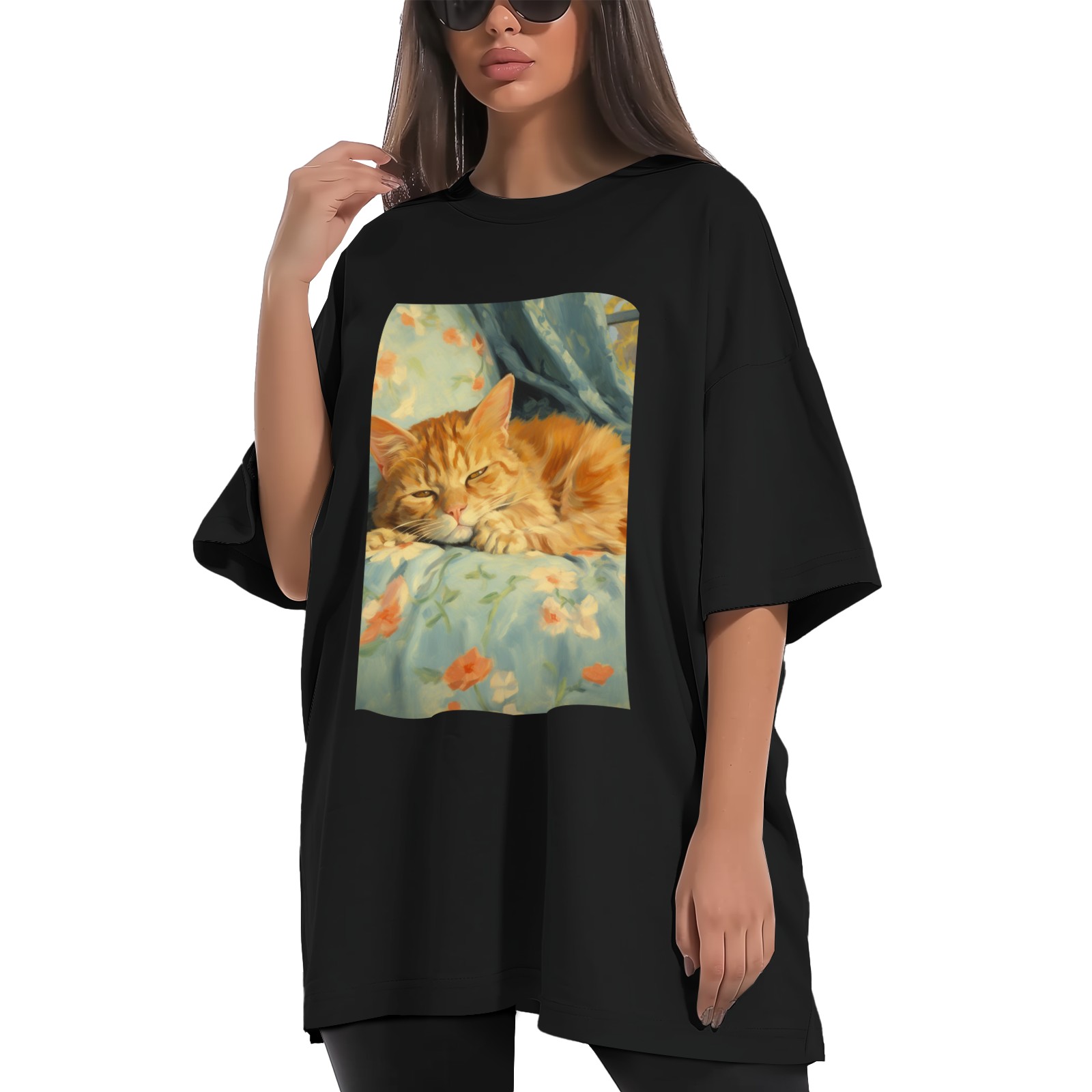Plus Size Shirt for Women Black Tops for Women Short Sleeves Shirt for Women Cat (49) T Shirt Crewneck Shirt for Women XS