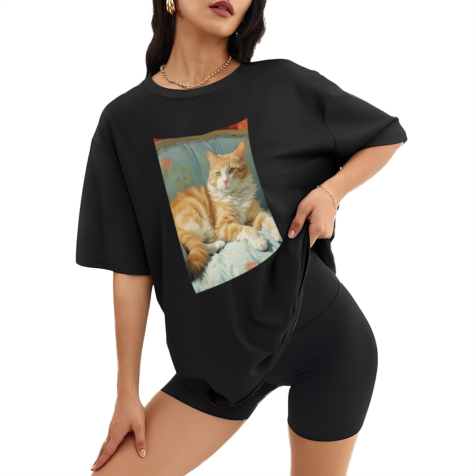 Plus Size Shirt for Women Black Tops for Women Short Sleeves Shirt for Women Cat (47) T Shirt Crewneck Shirt for Women XS