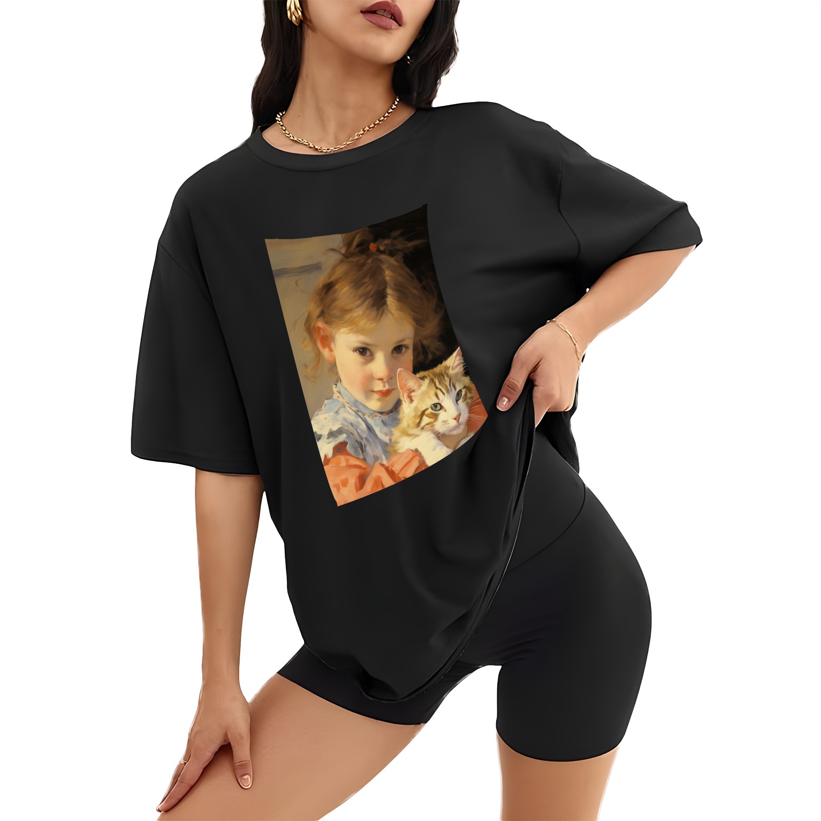 Plus Size Shirt for Women Black Tops for Women Short Sleeves Shirt for Women Cat (46) T Shirt Crewneck Shirt for Women XS