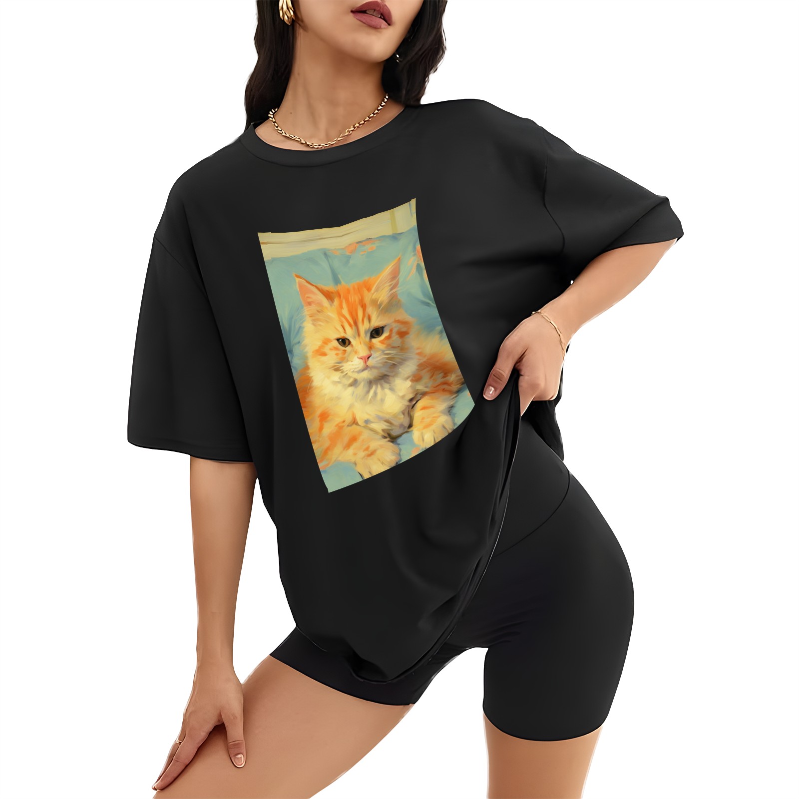 Plus Size Shirt for Women Black Tops for Women Short Sleeves Shirt for Women Cat (38) T Shirt Crewneck Shirt for Women XS