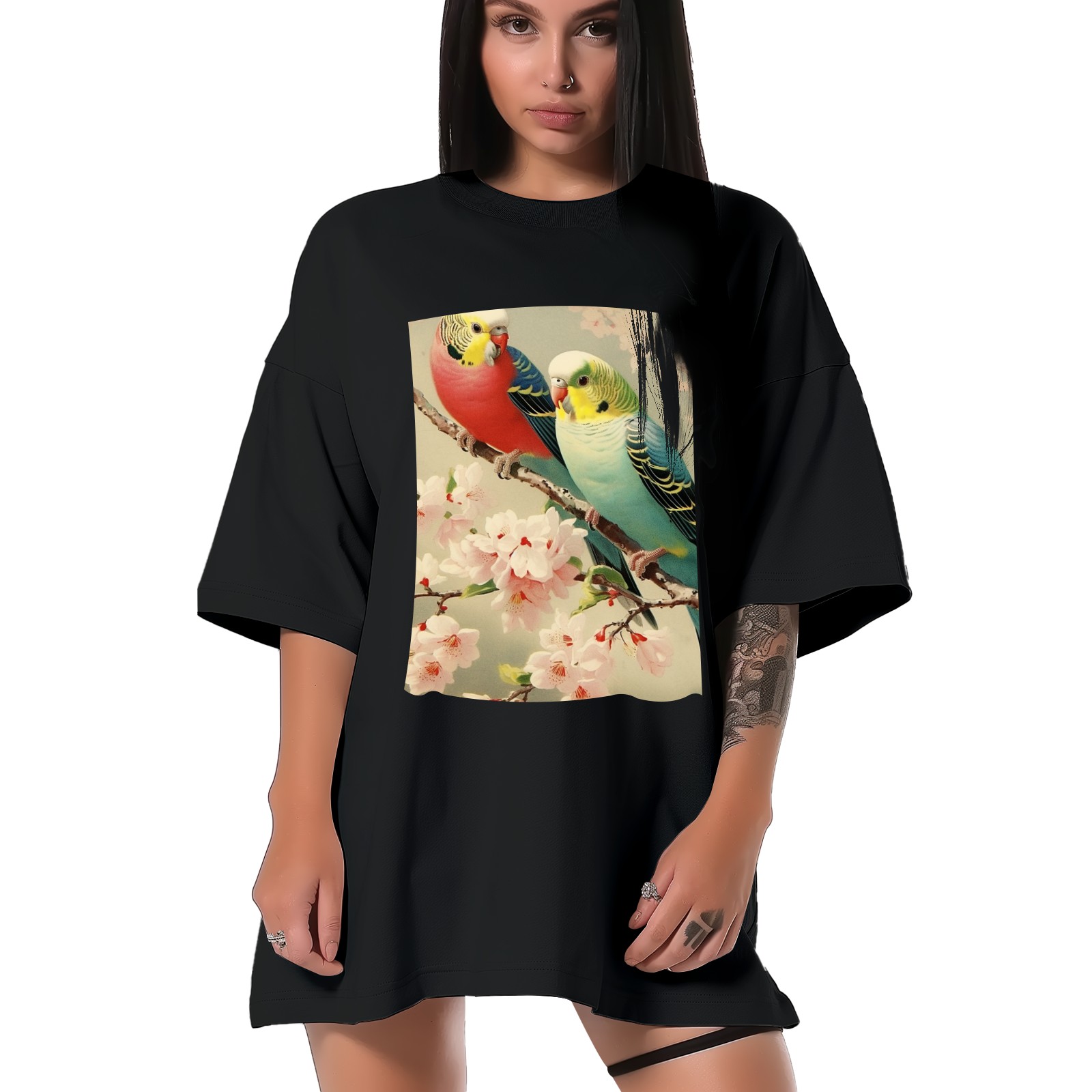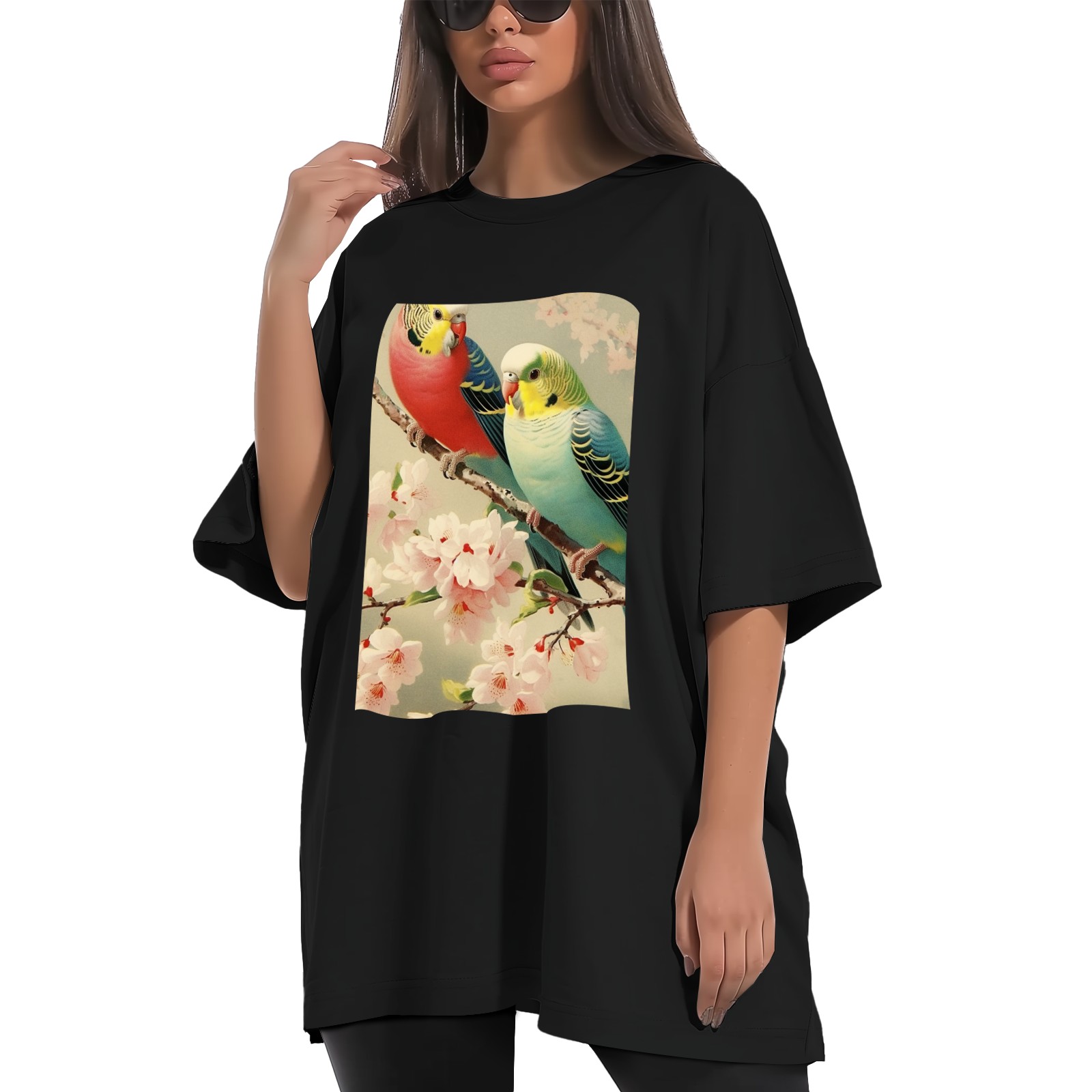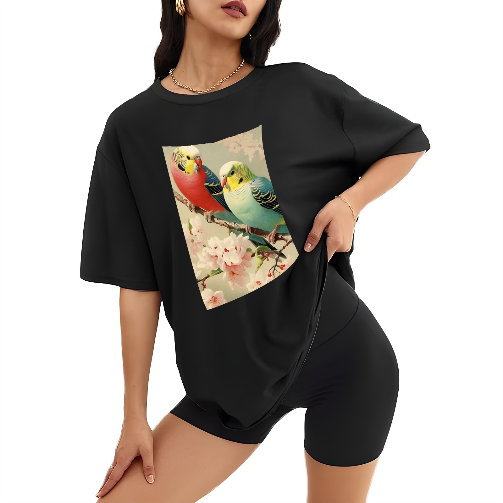 Plus Size Shirt for Women Black Tops for Women Short Sleeves Shirt for Women Budgies 7 T Shirt Crewneck Shirt for Women XS