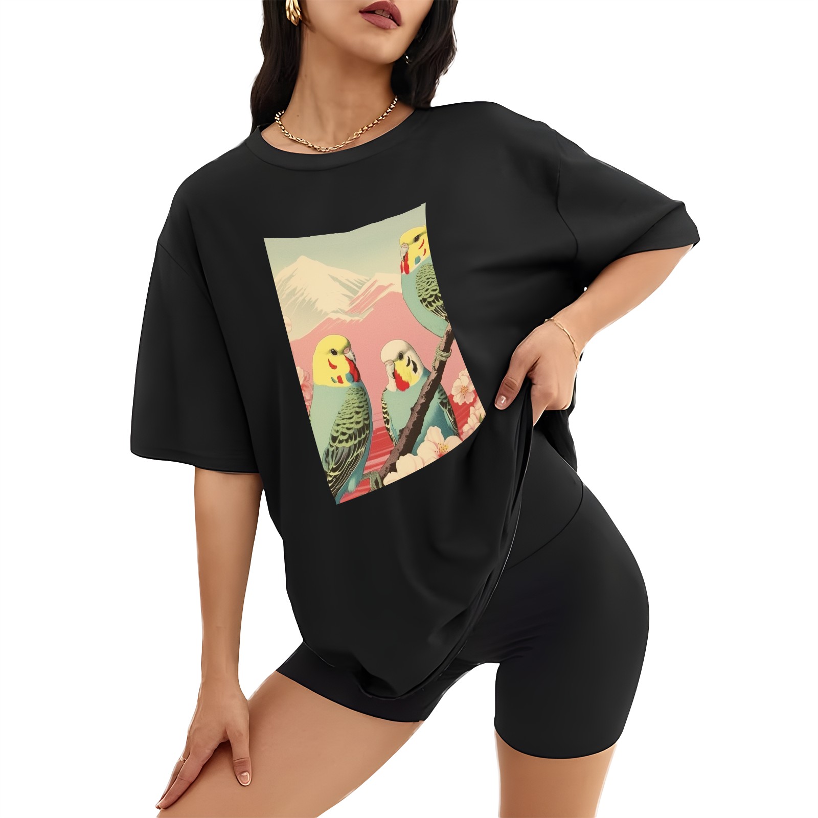 Plus Size Shirt for Women Black Tops for Women Short Sleeves Shirt for Women Budgies 2 T Shirt Crewneck Shirt for Women XS