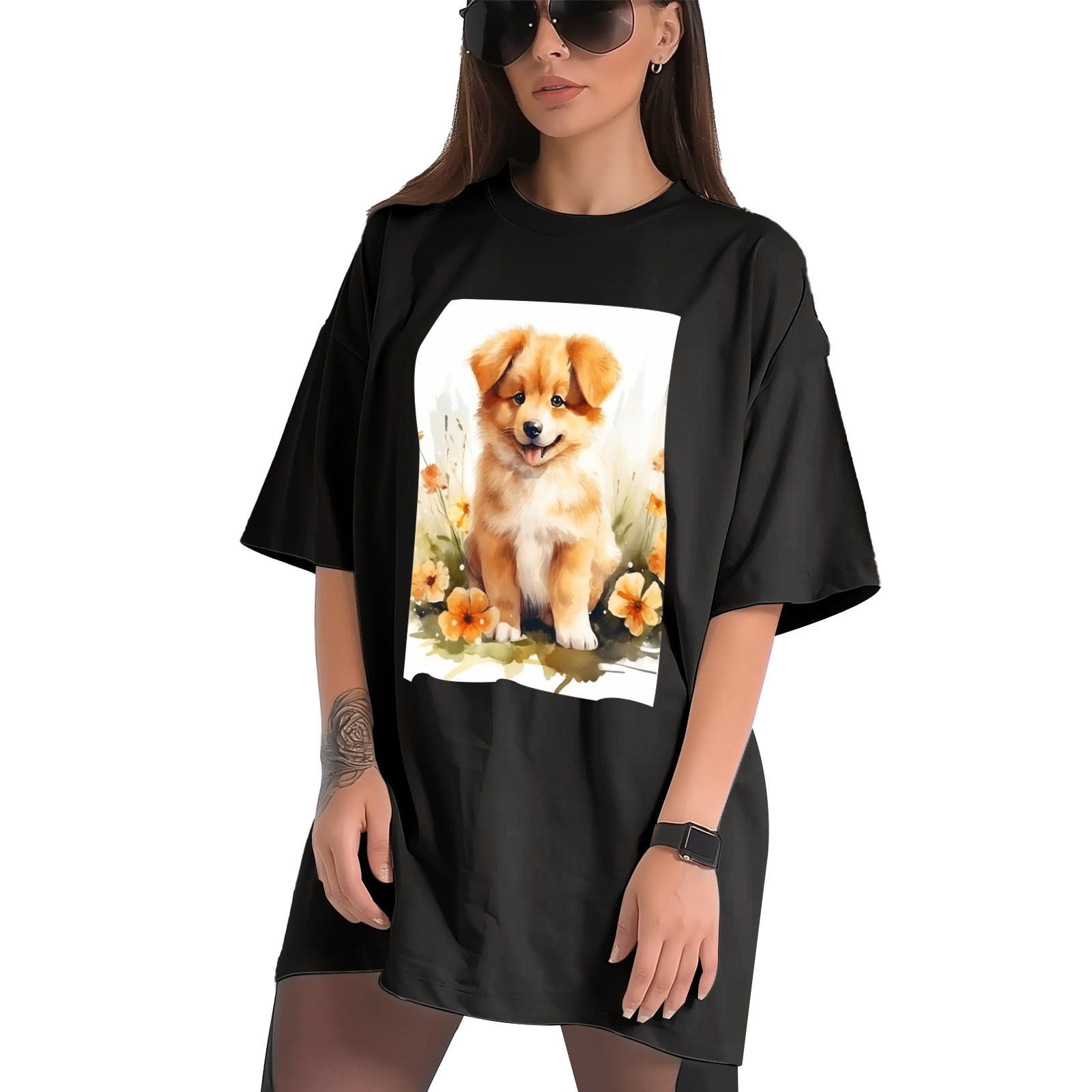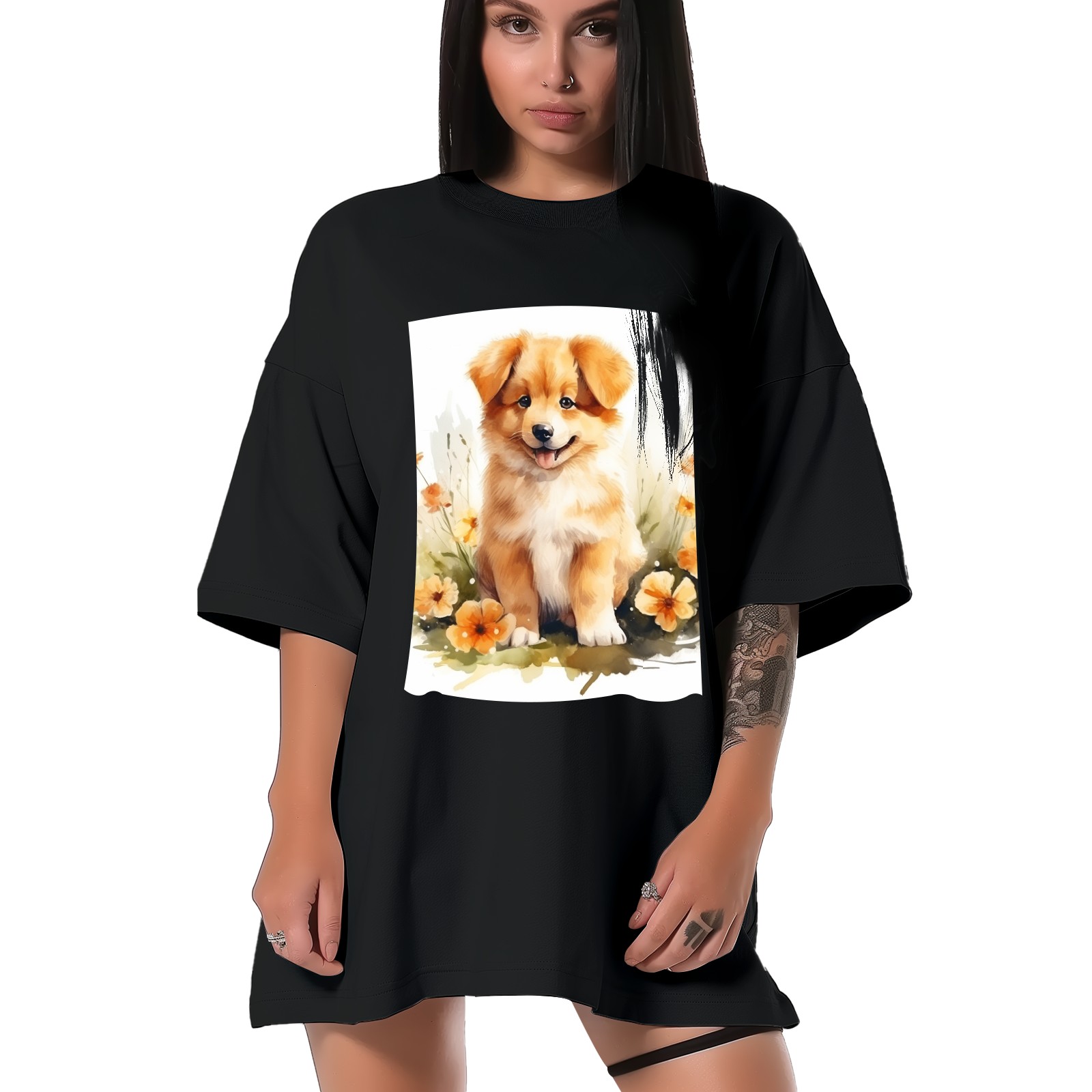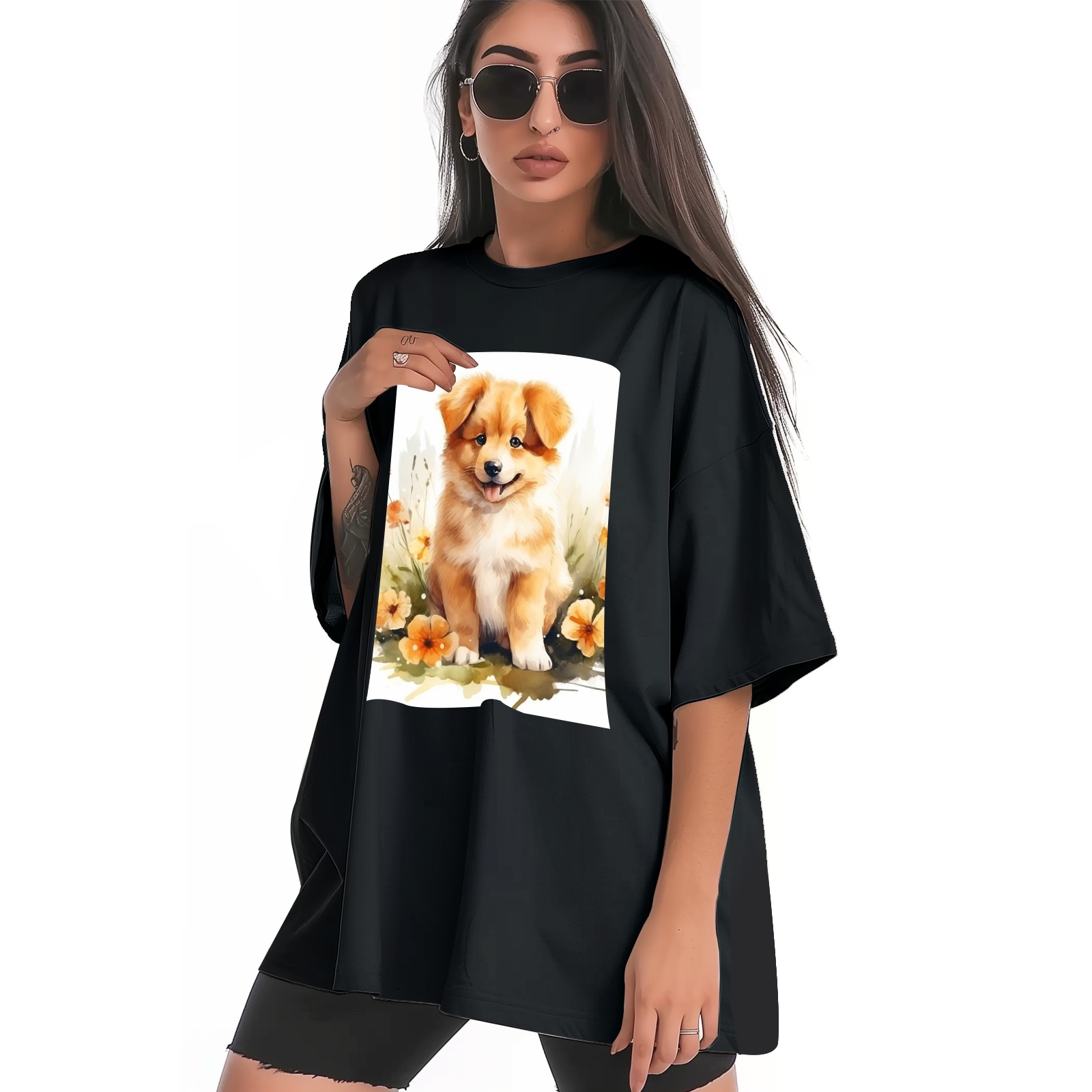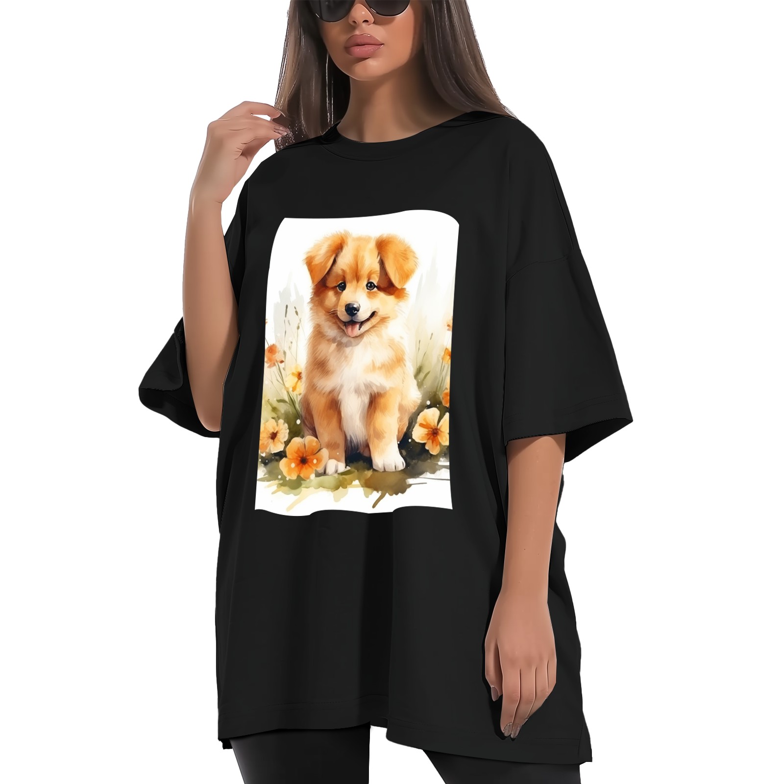 Plus Size Shirt for Women Black Tops for Women Short Sleeves Shirt for Women Puppy 4 T Shirt Crewneck Shirt for Women XS