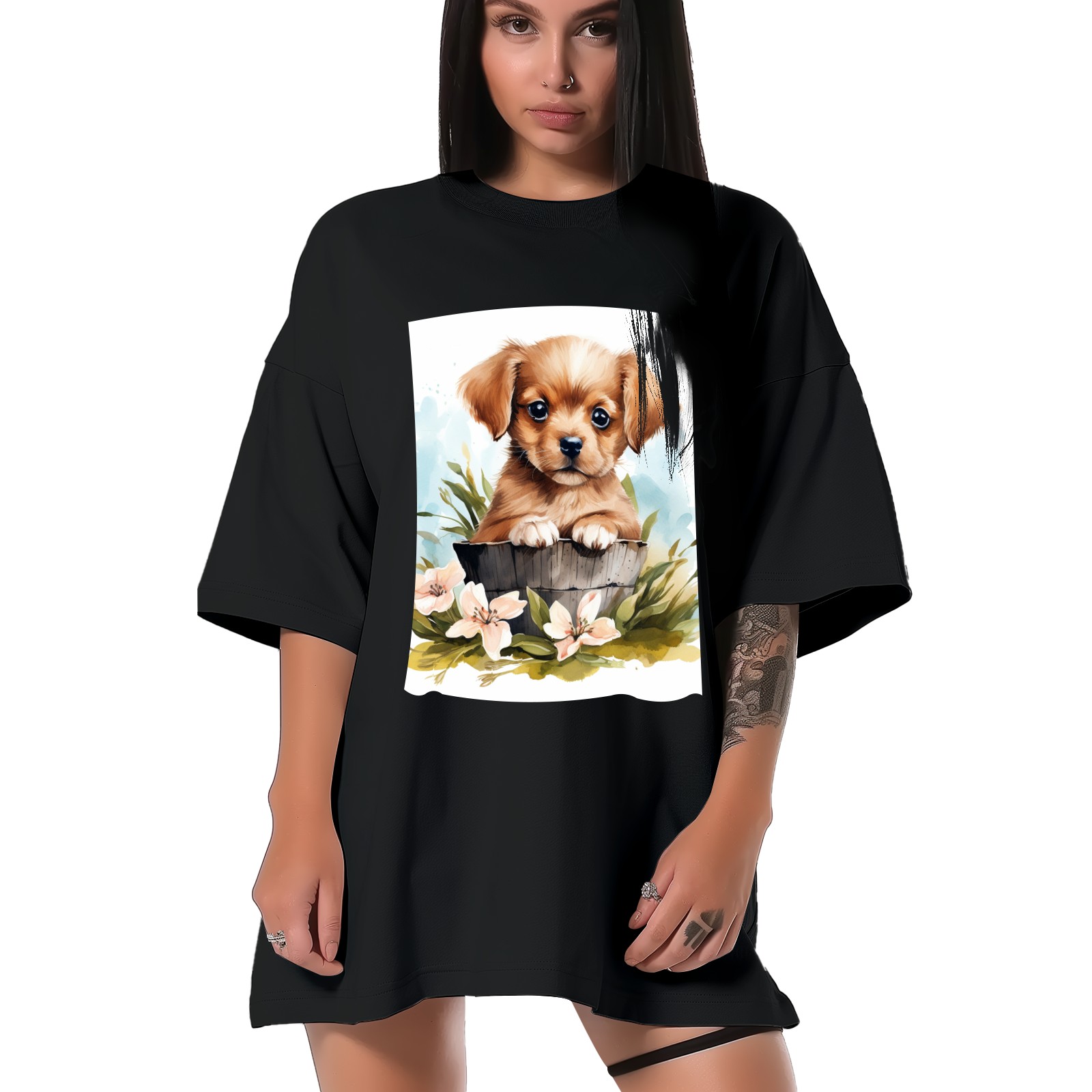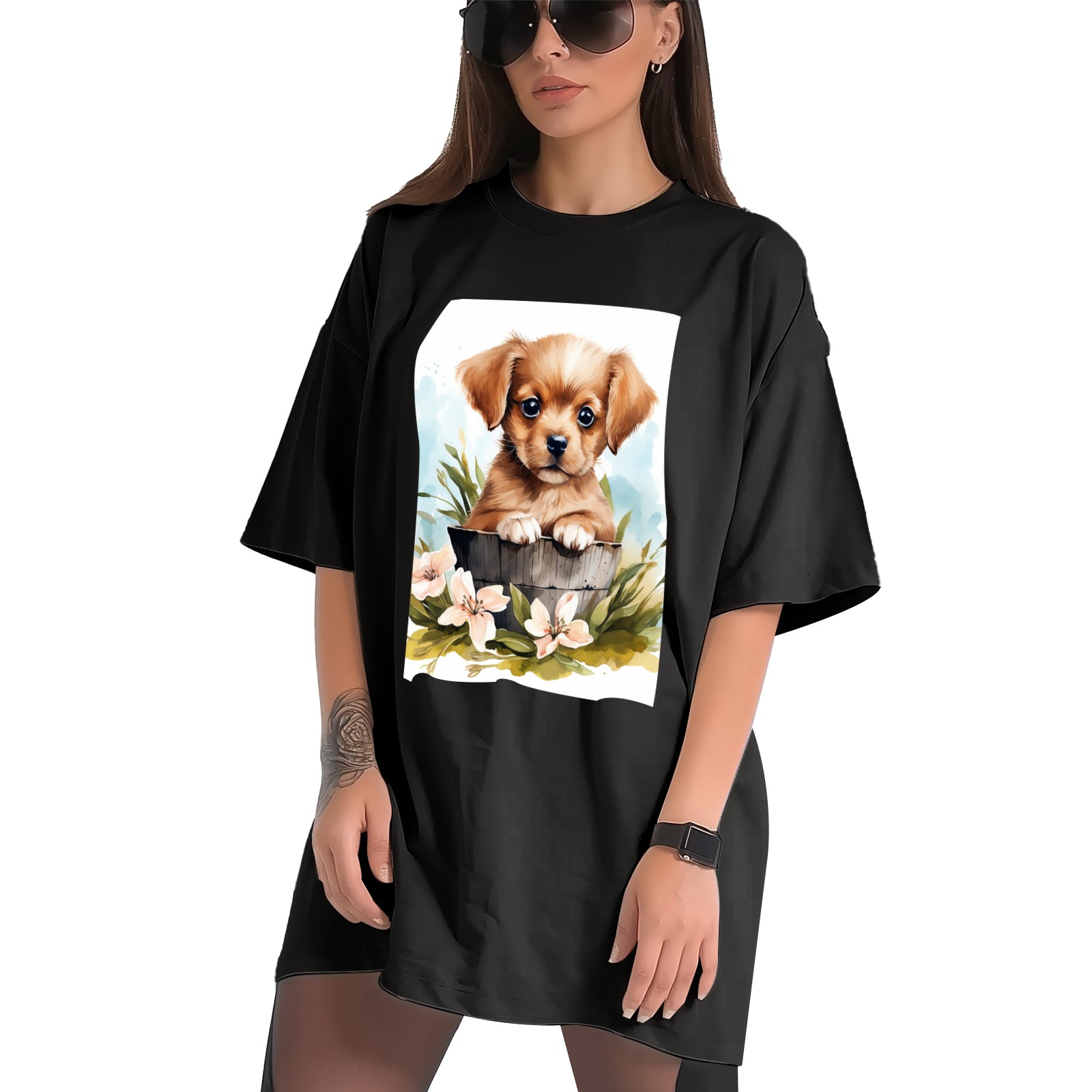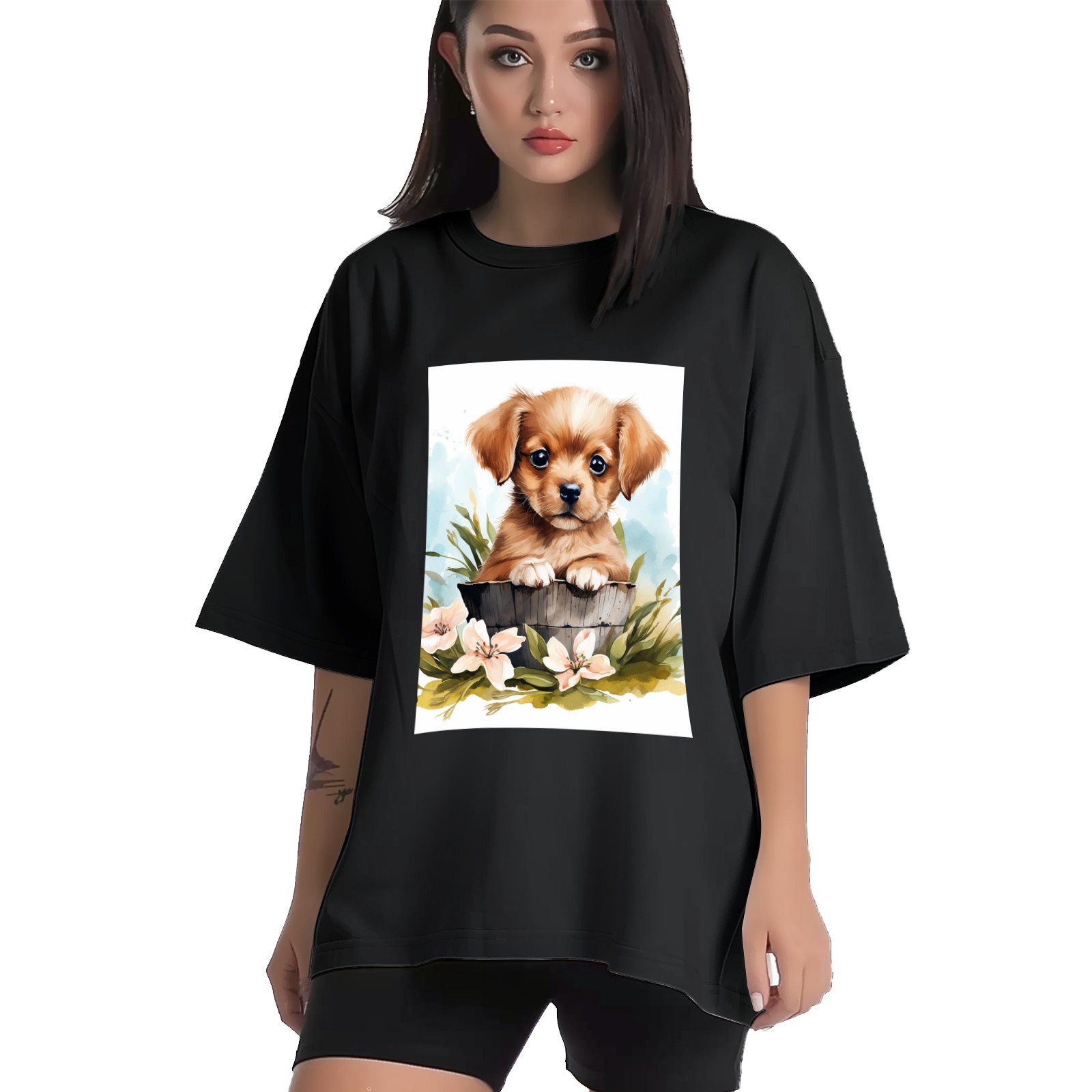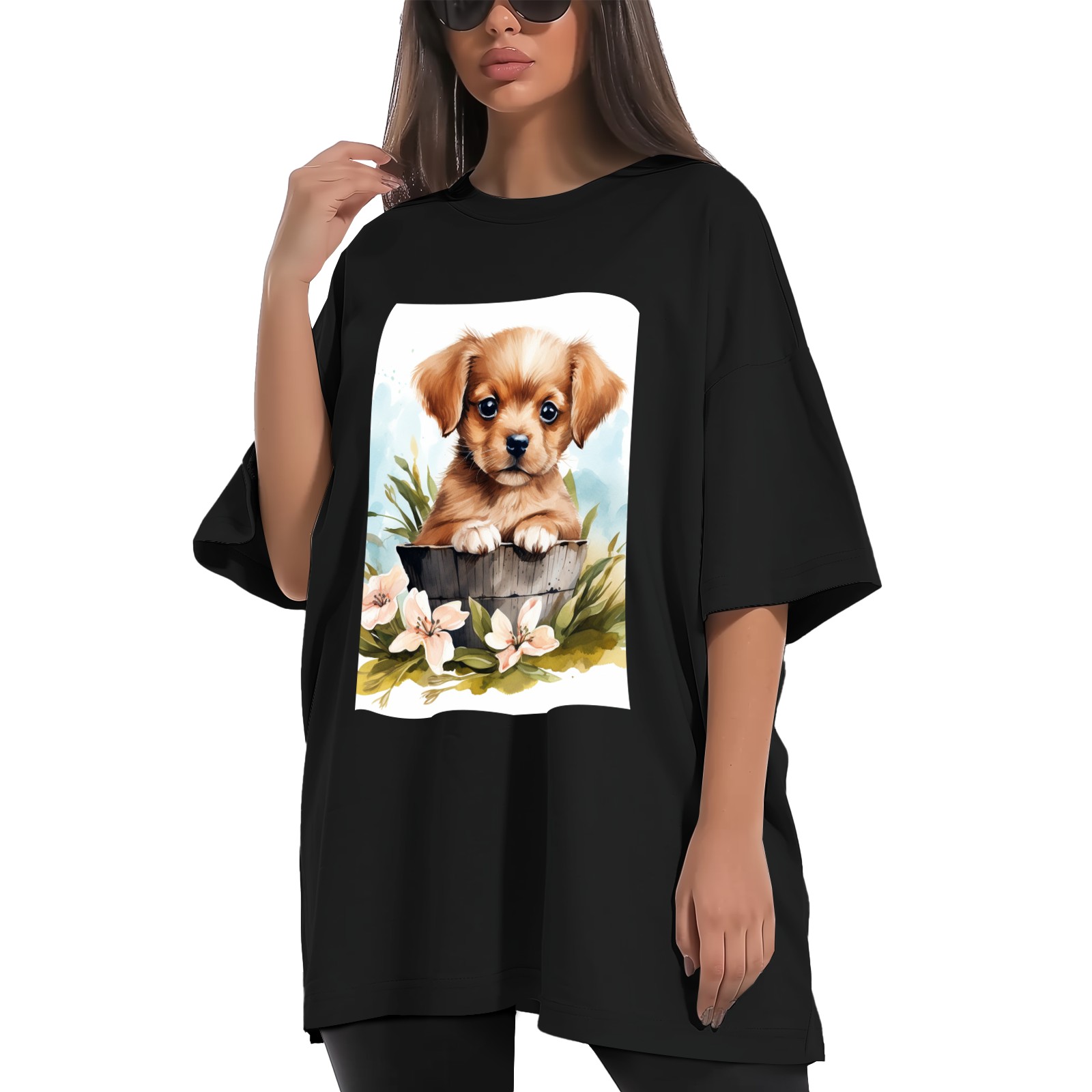 Plus Size Shirt for Women Black Tops for Women Short Sleeves Shirt for Women Puppy 3 T Shirt Crewneck Shirt for Women XS