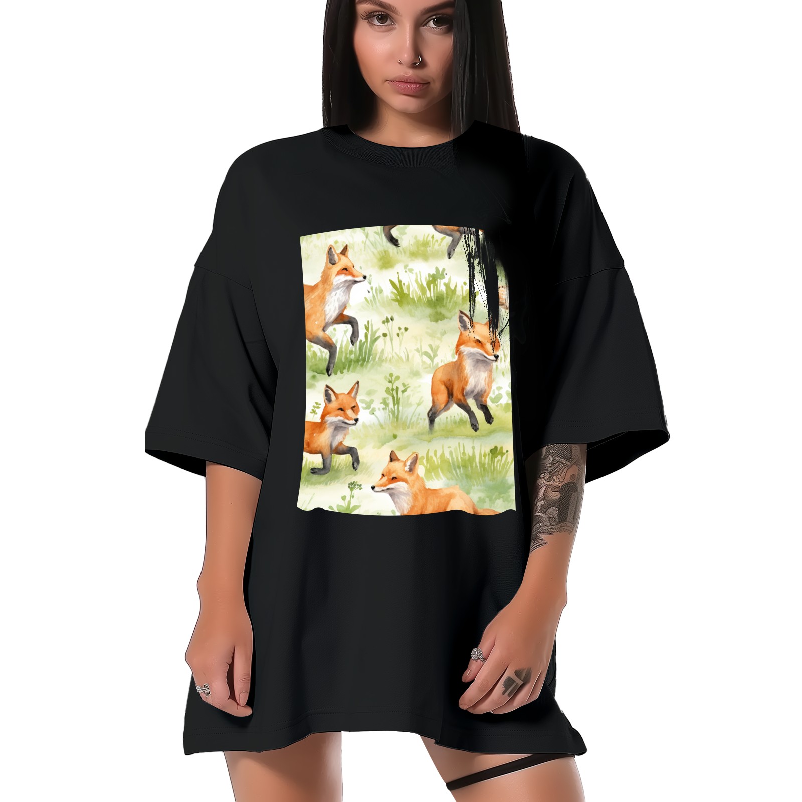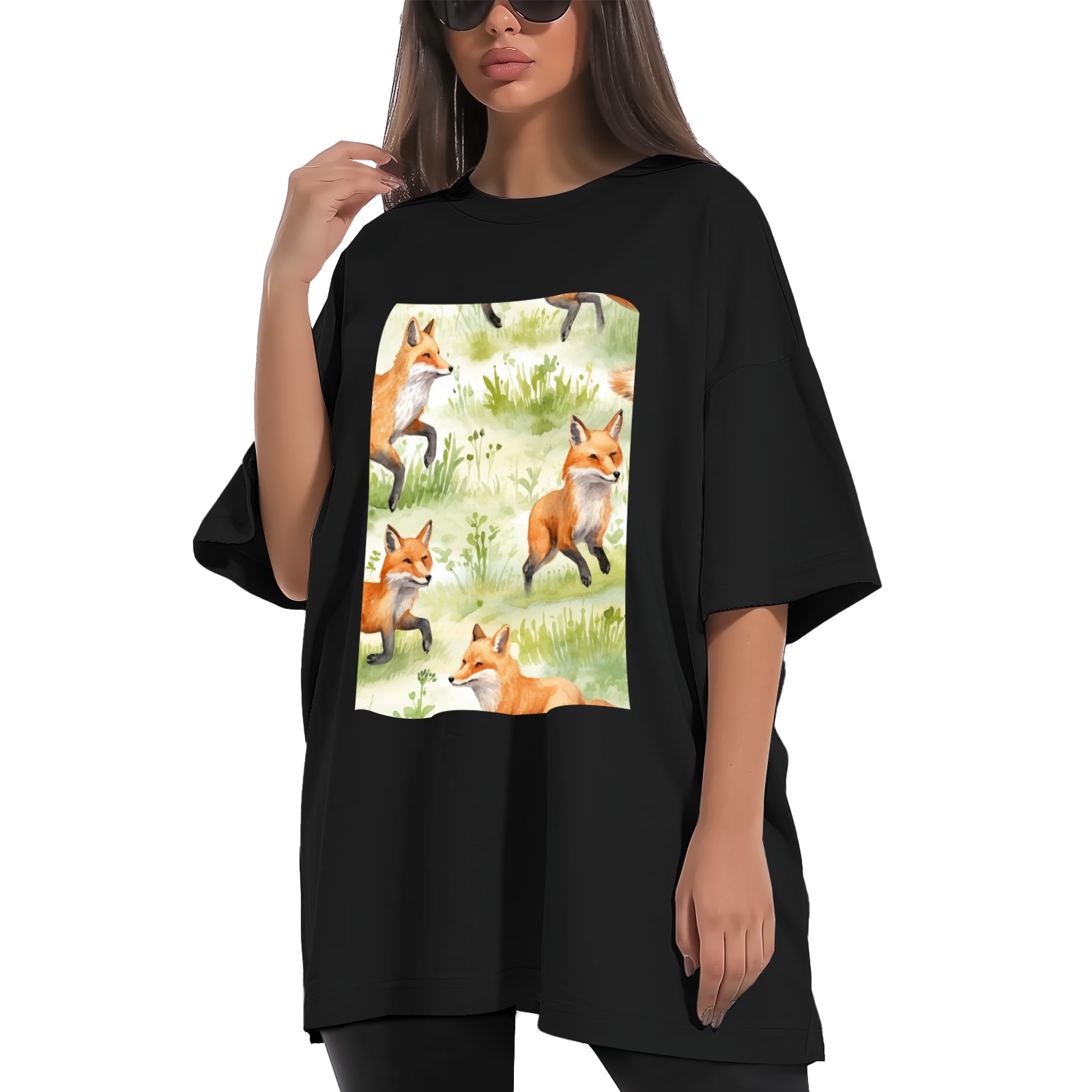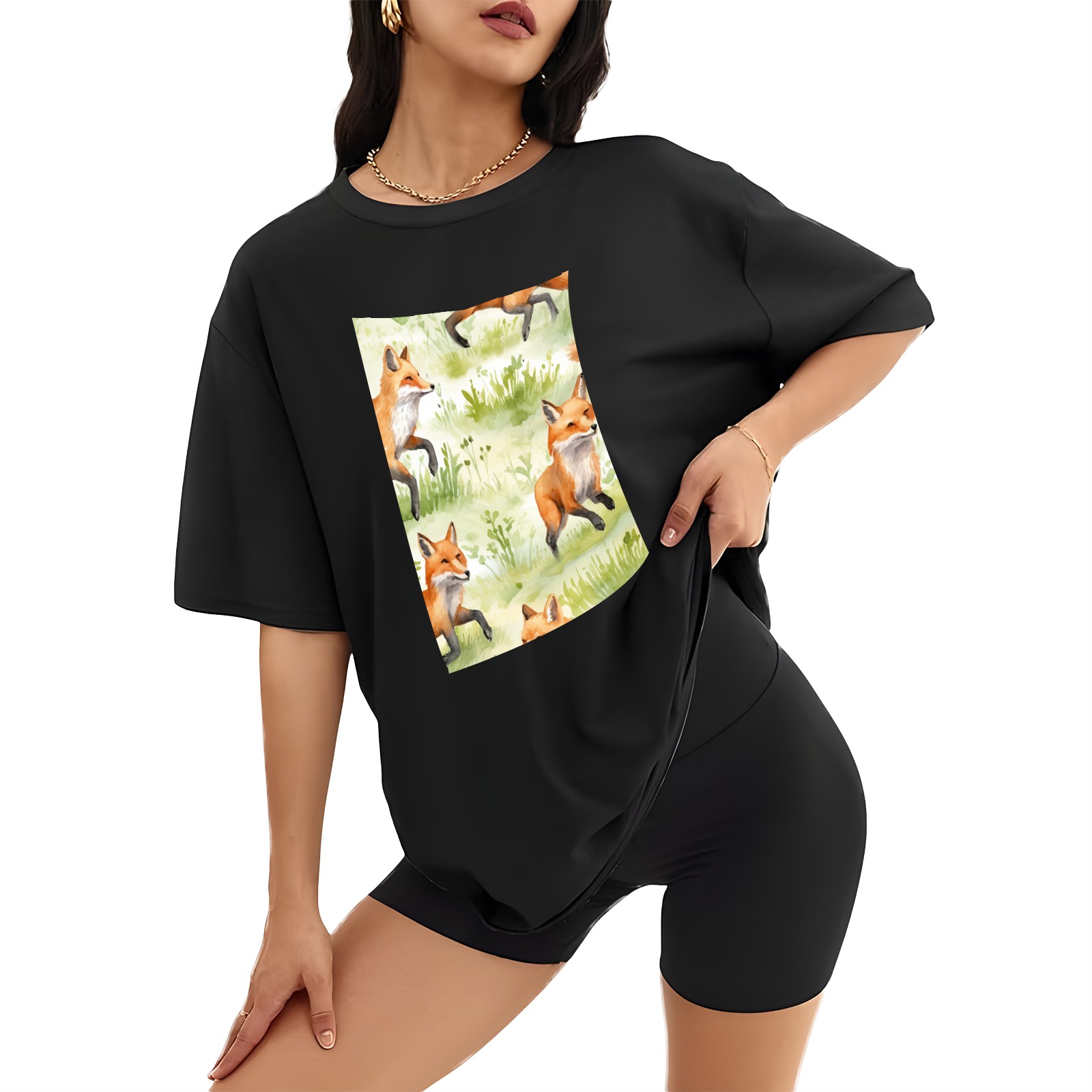 Plus Size Shirt for Women Black Tops for Women Short Sleeves Shirt for Women Fox 46 T Shirt Crewneck Shirt for Women XS