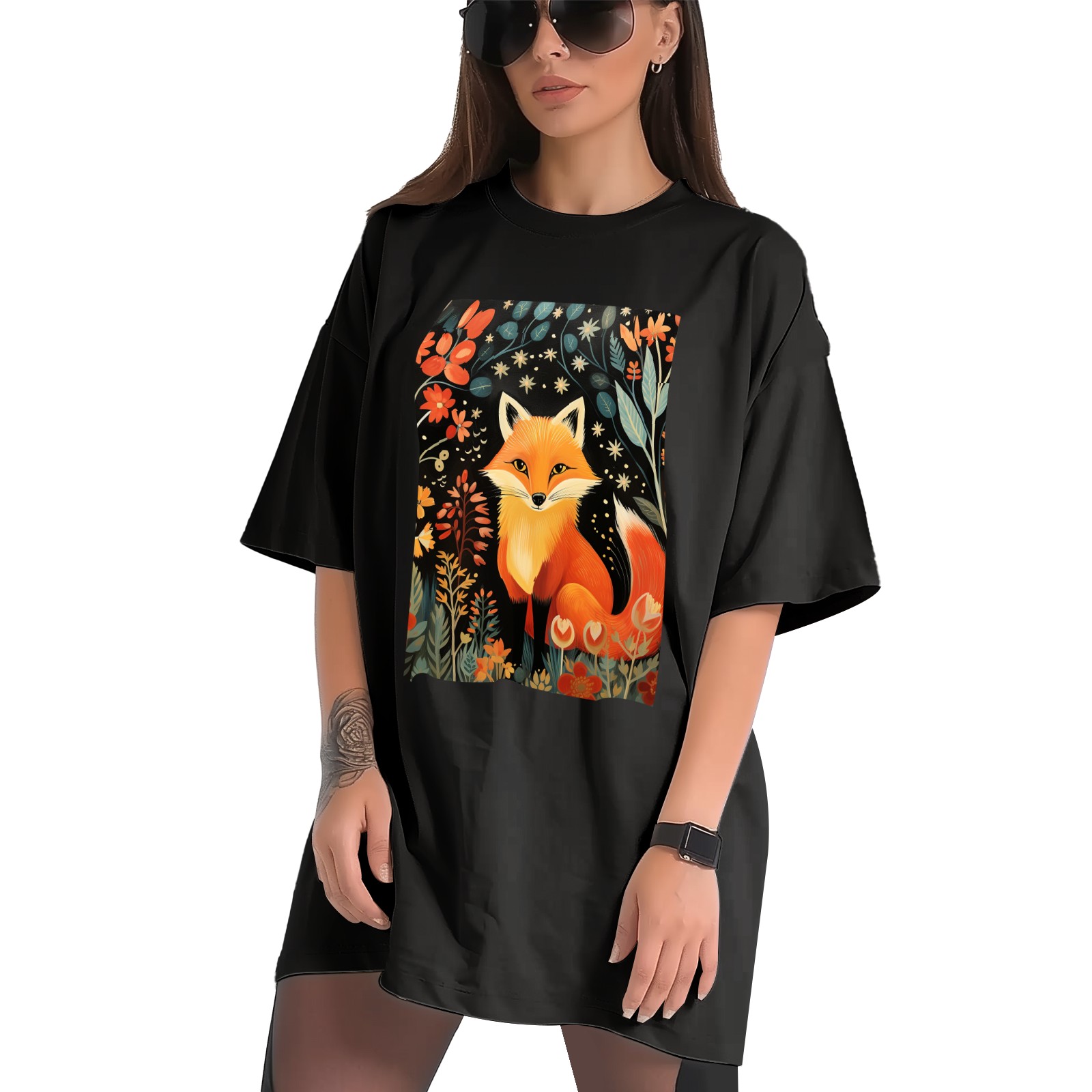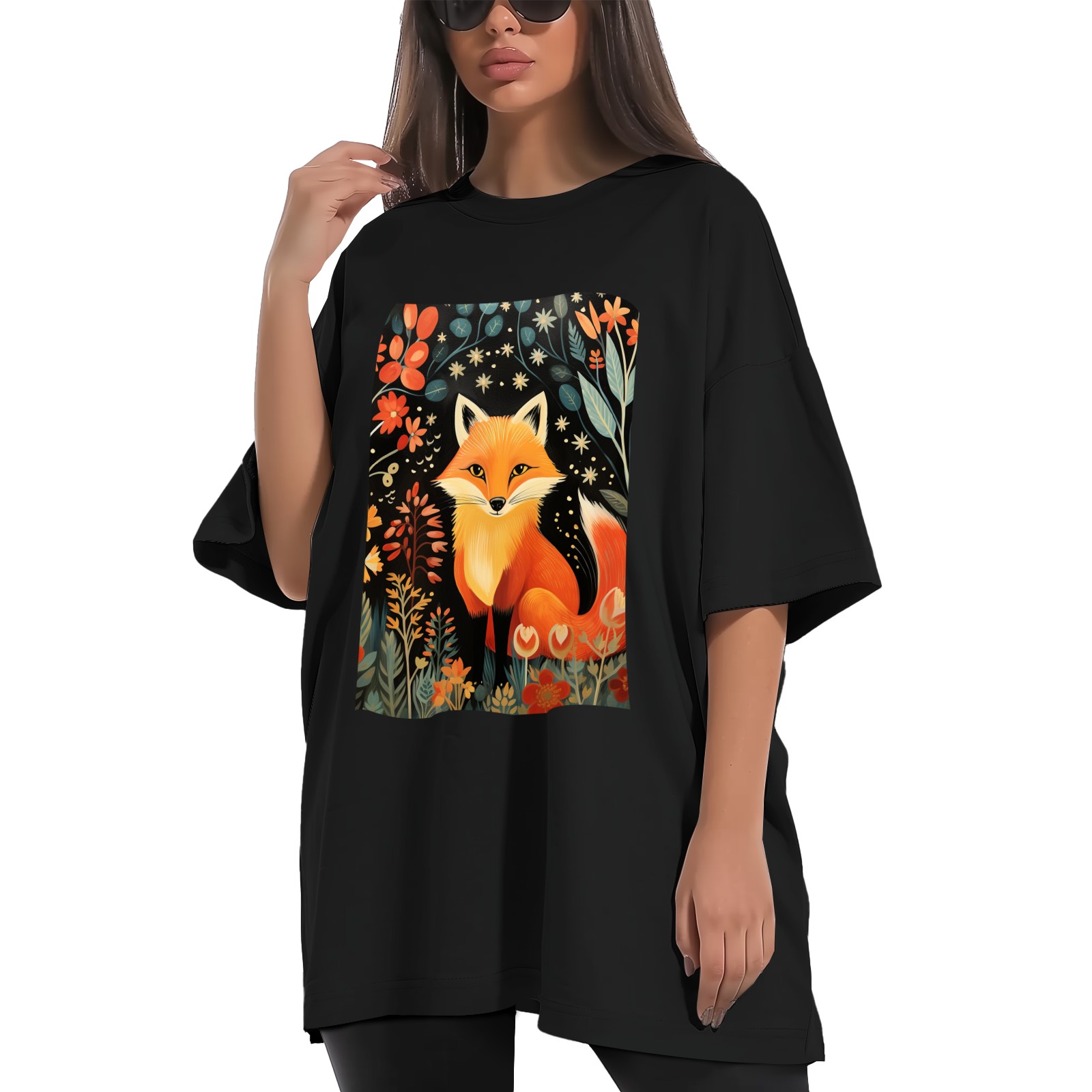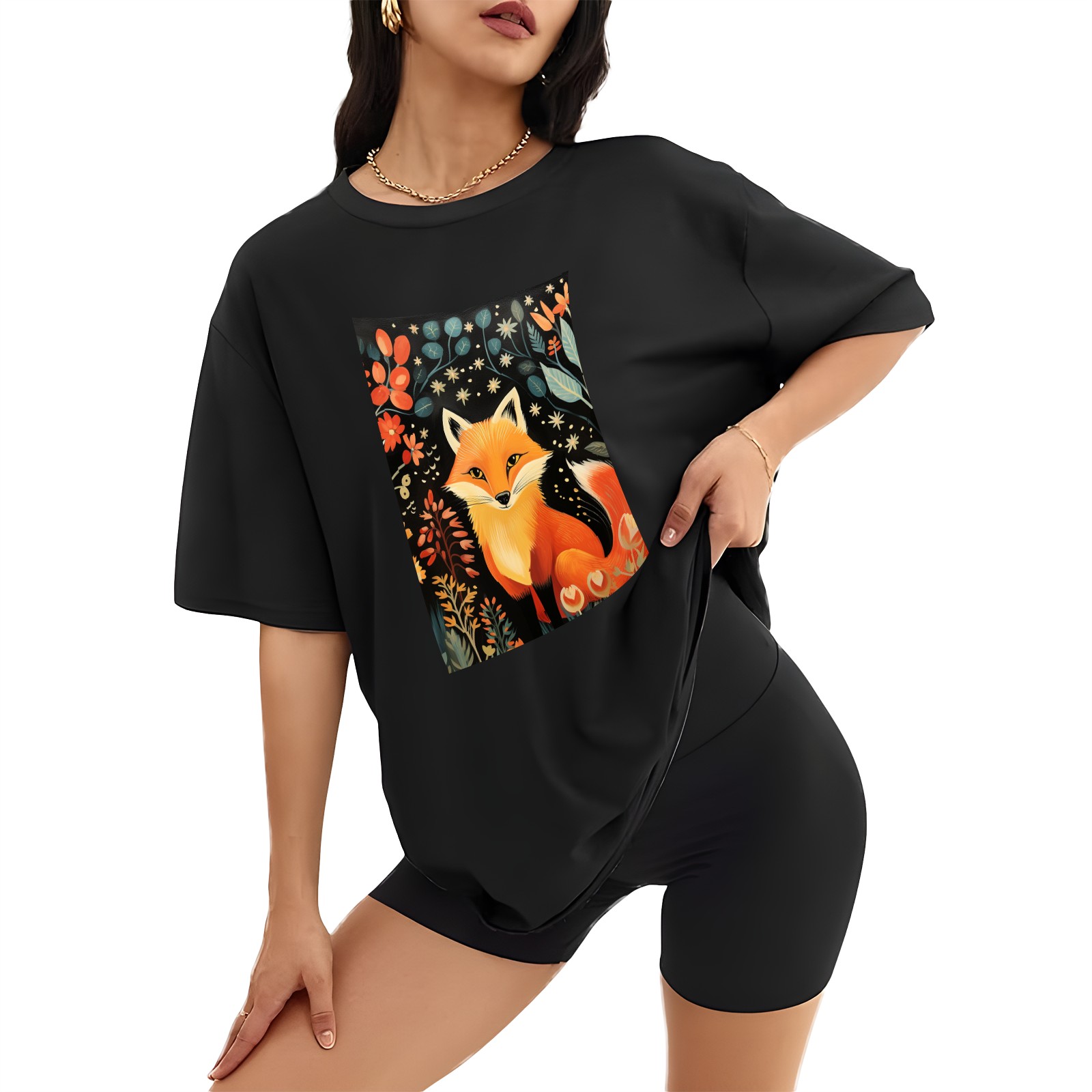 Plus Size Shirt for Women Black Tops for Women Short Sleeves Shirt for Women Fox 41 T Shirt Crewneck Shirt for Women XS