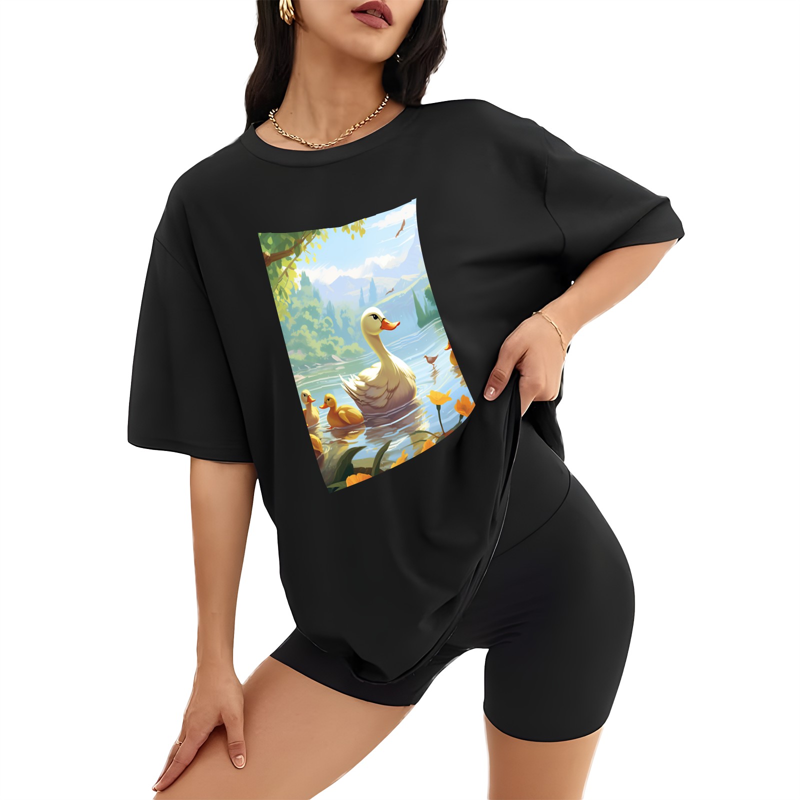 Plus Size Shirt for Women Black Tops for Women Short Sleeves Shirt for Women Duck 49 T Shirt Crewneck Shirt for Women XS