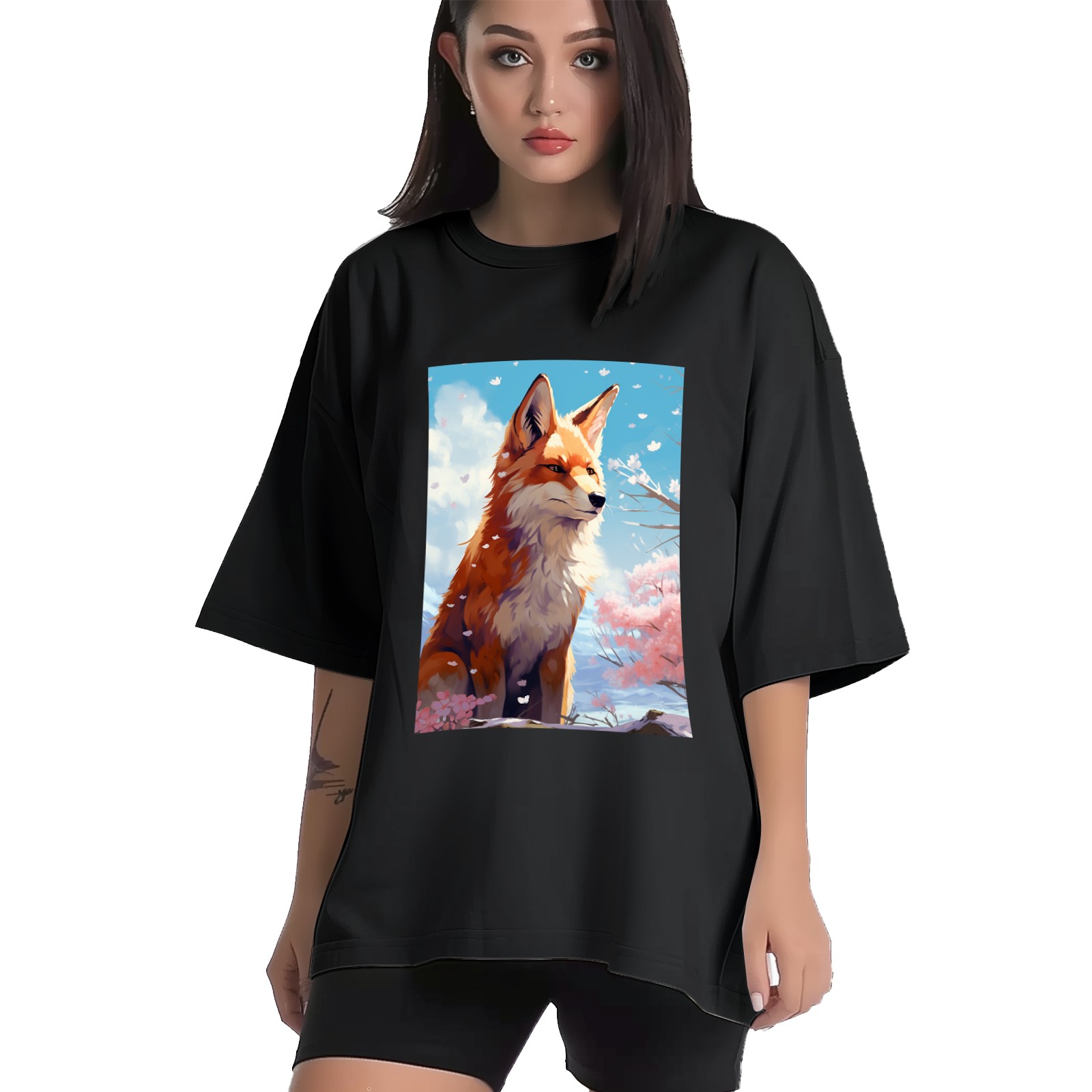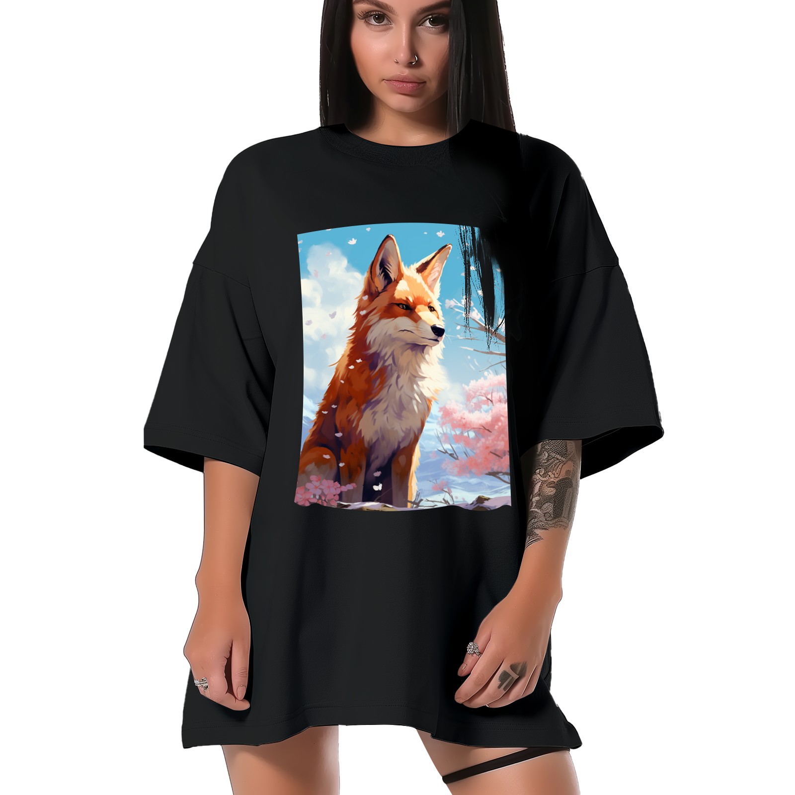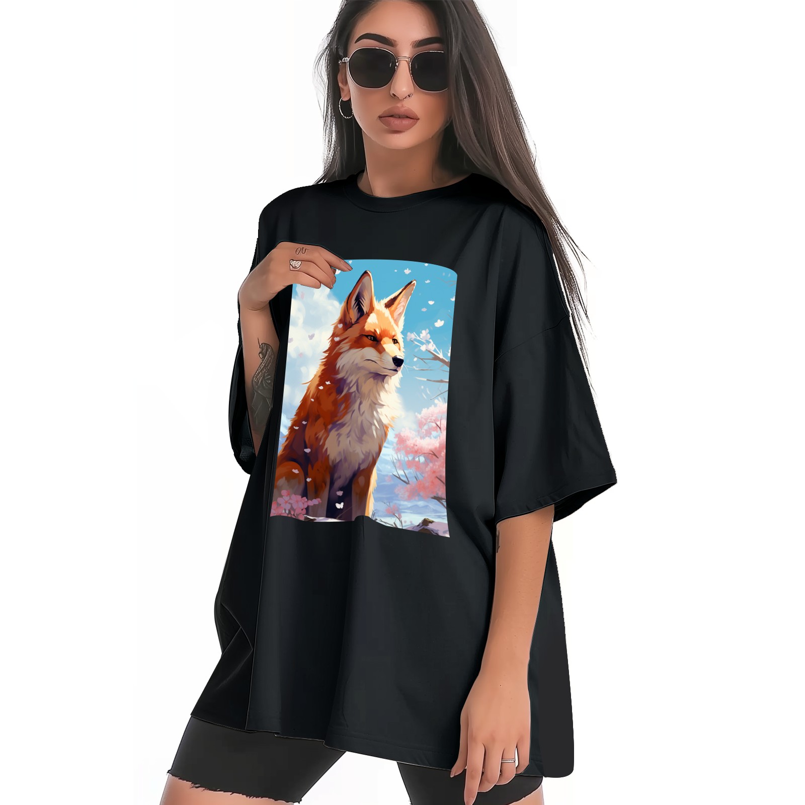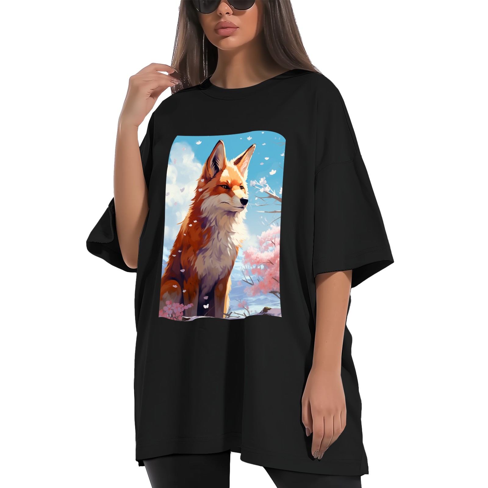 Plus Size Shirt for Women Black Tops for Women Short Sleeves Shirt for Women Fox 36 T Shirt Crewneck Shirt for Women XS