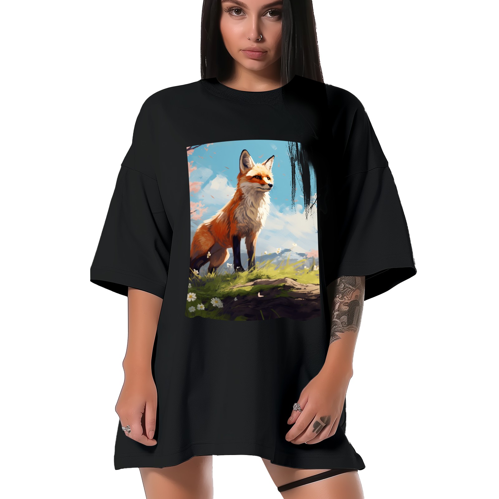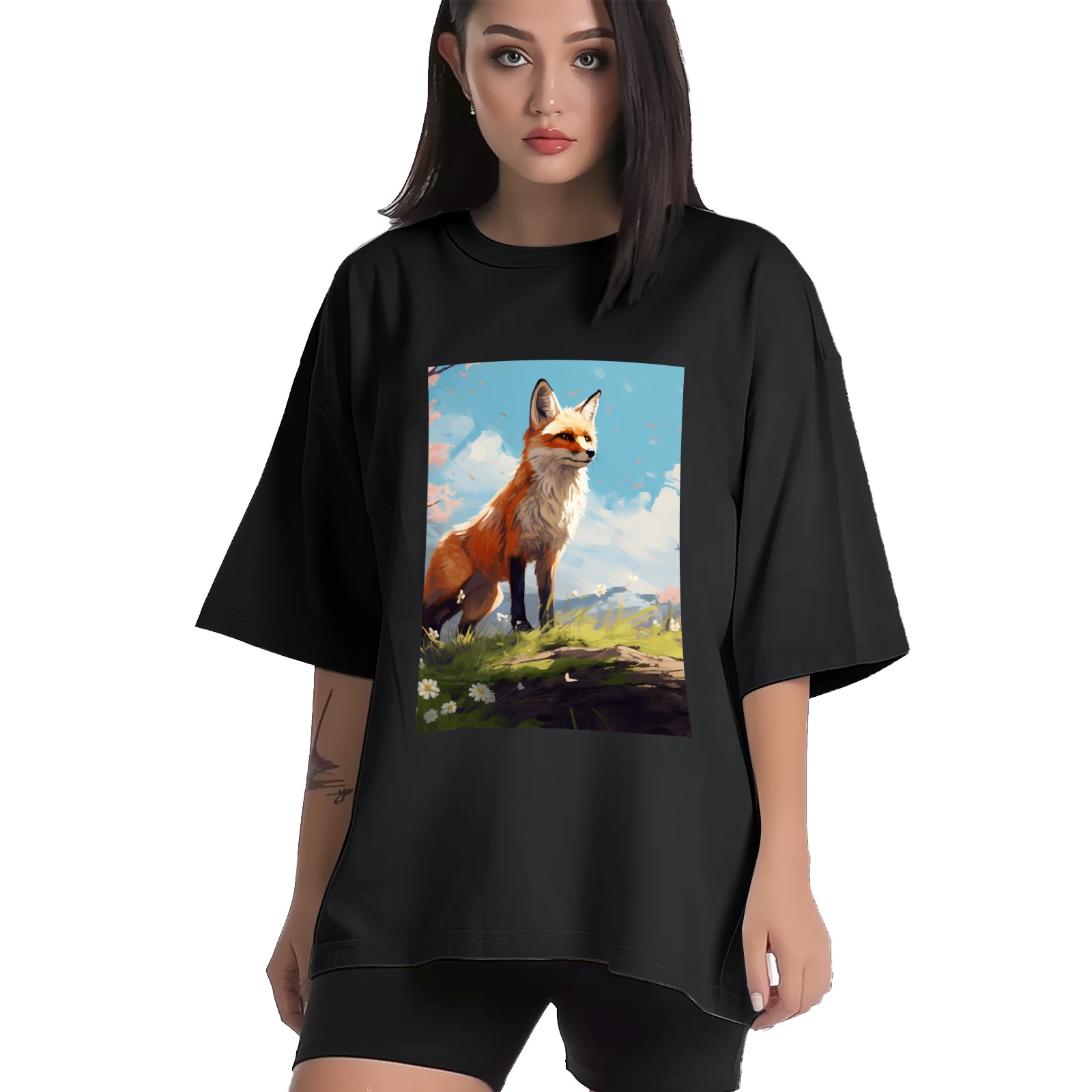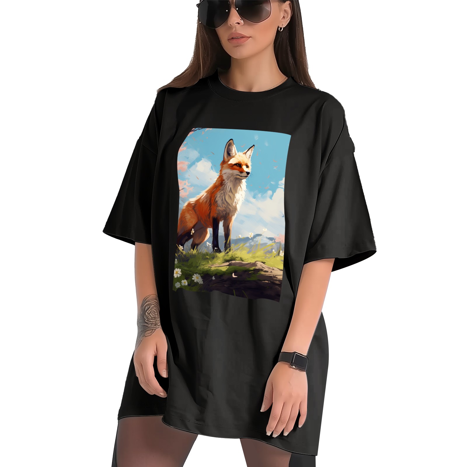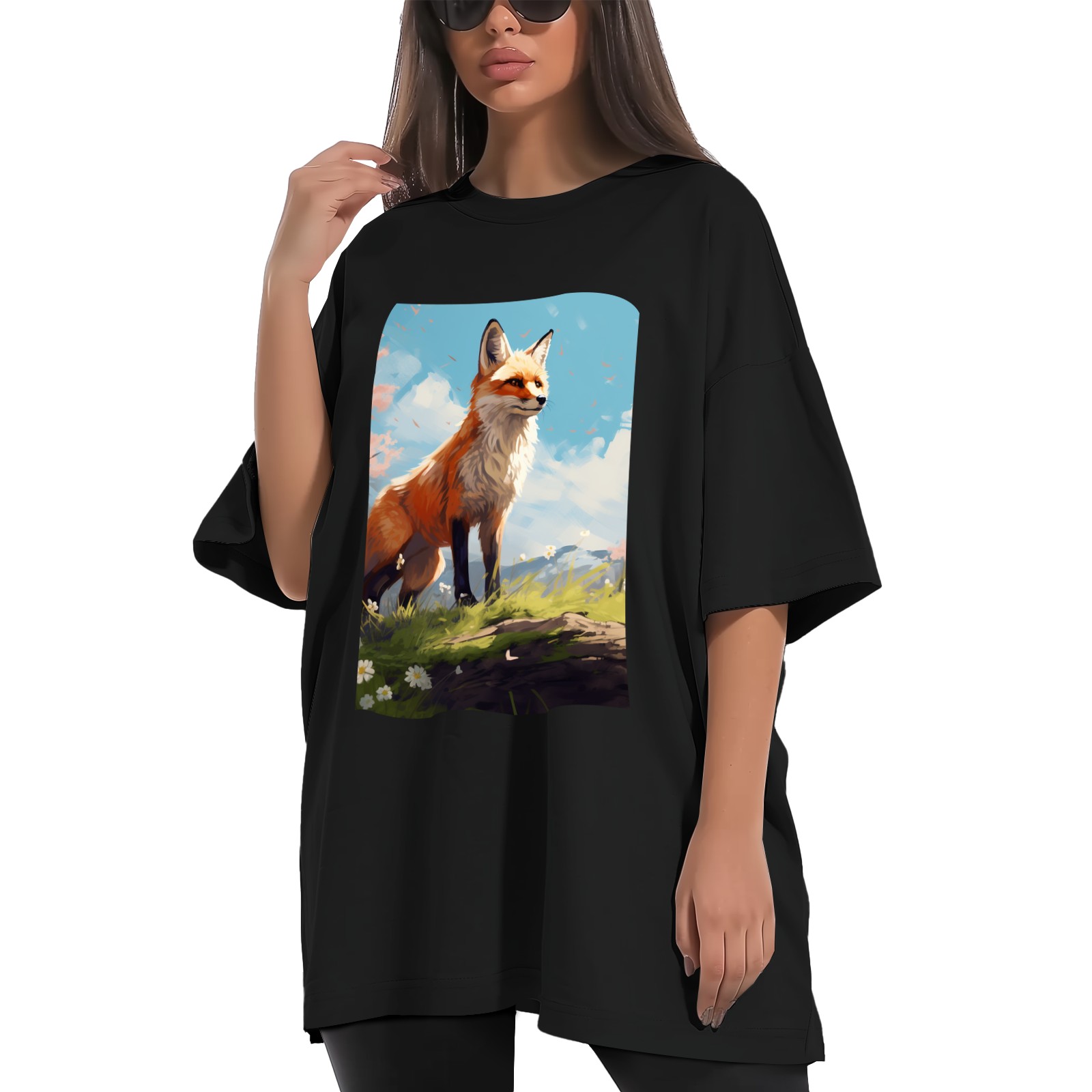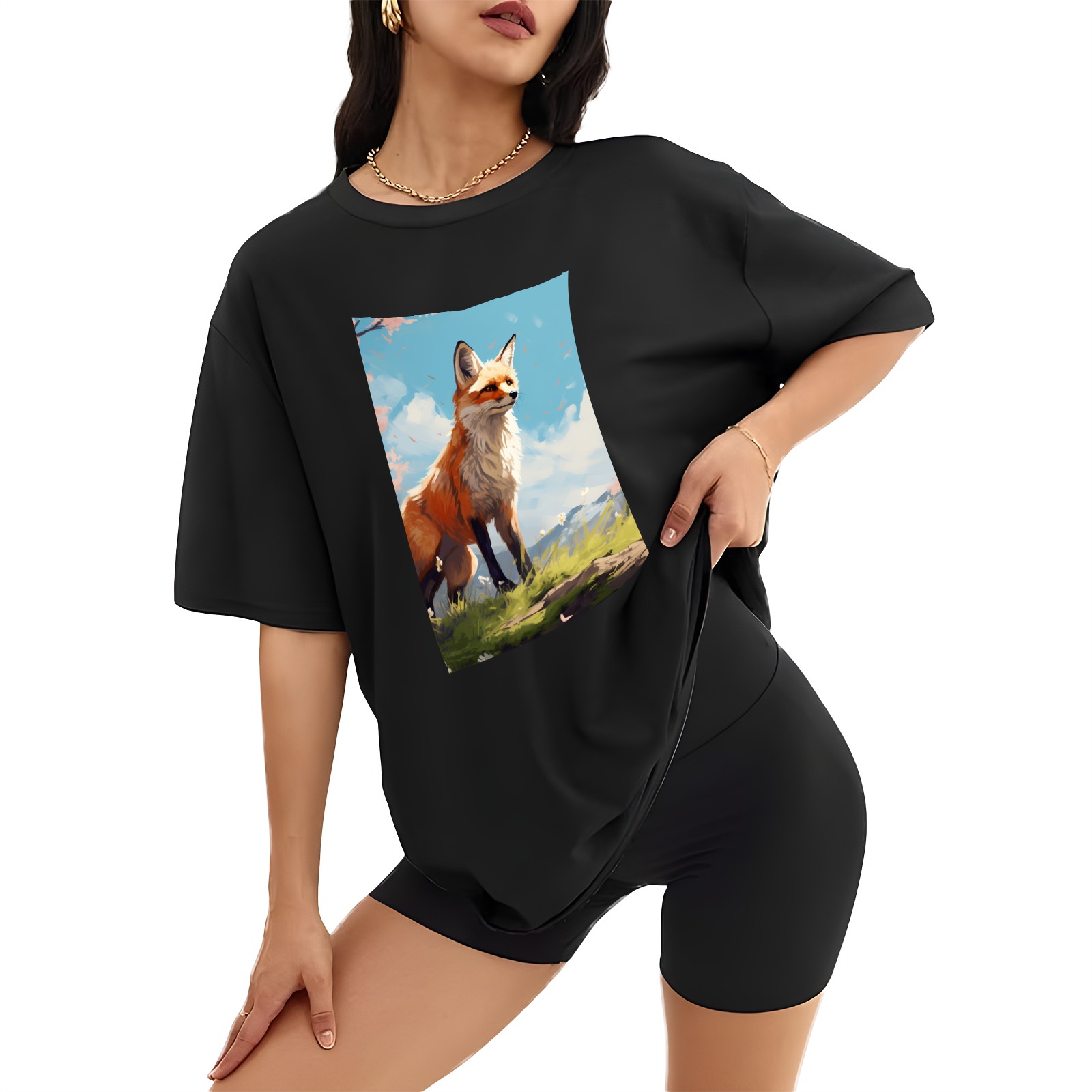 Plus Size Shirt for Women Black Tops for Women Short Sleeves Shirt for Women Fox 35 T Shirt Crewneck Shirt for Women XS