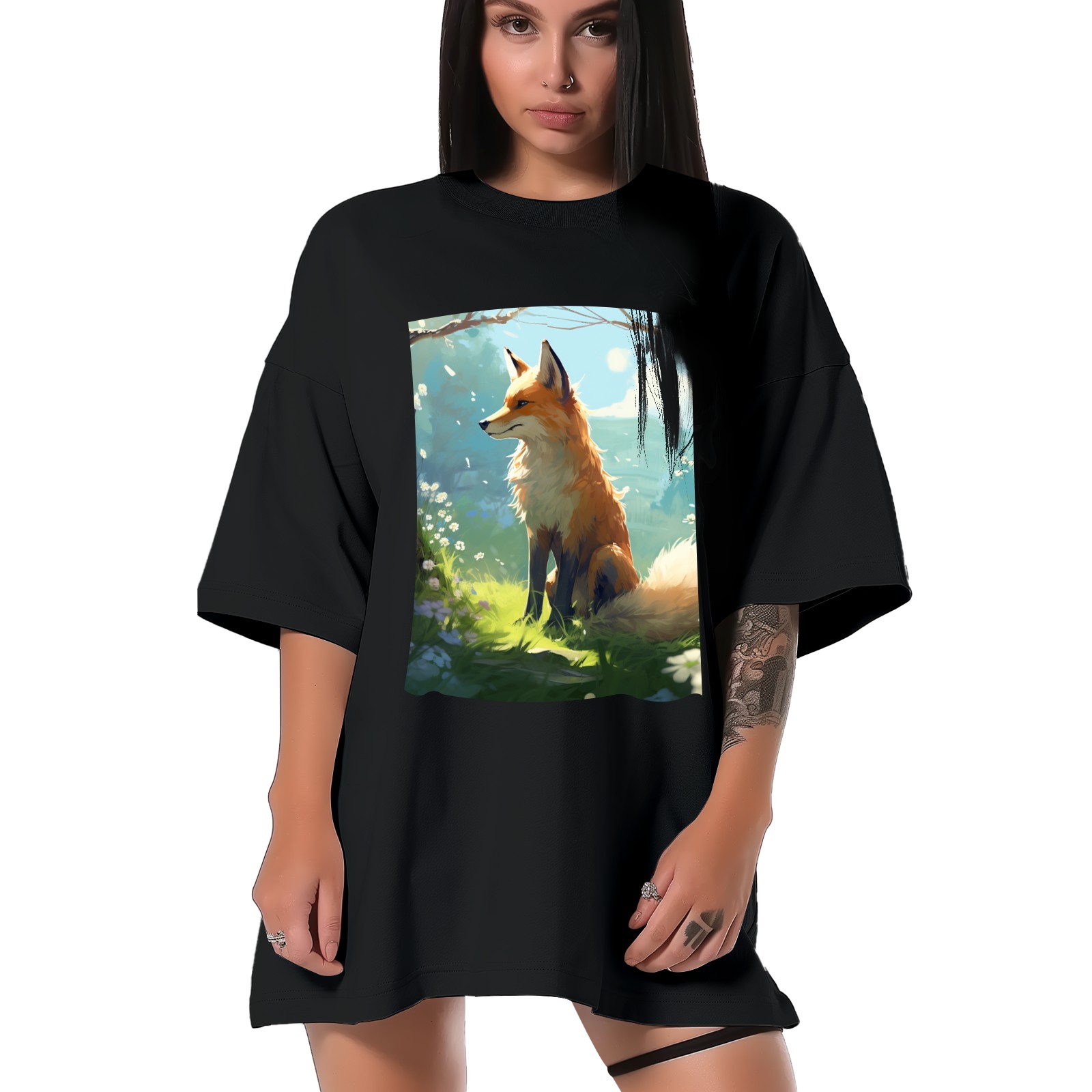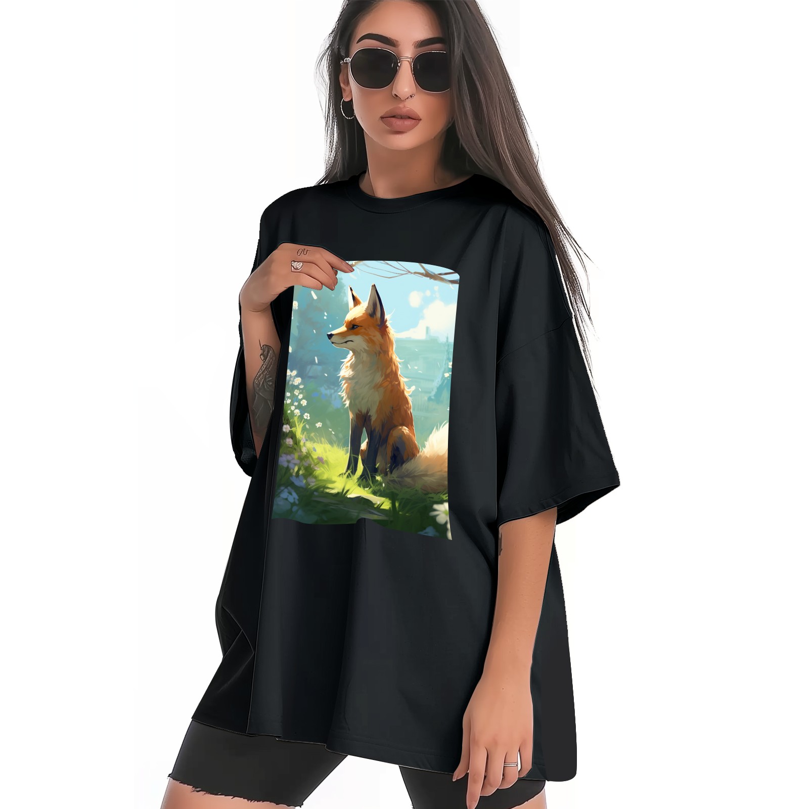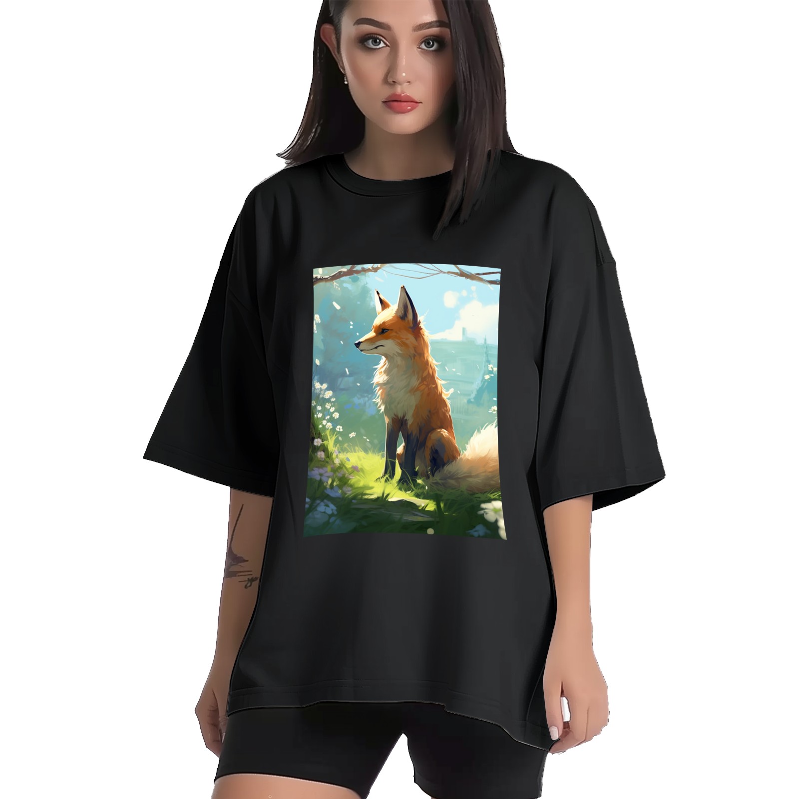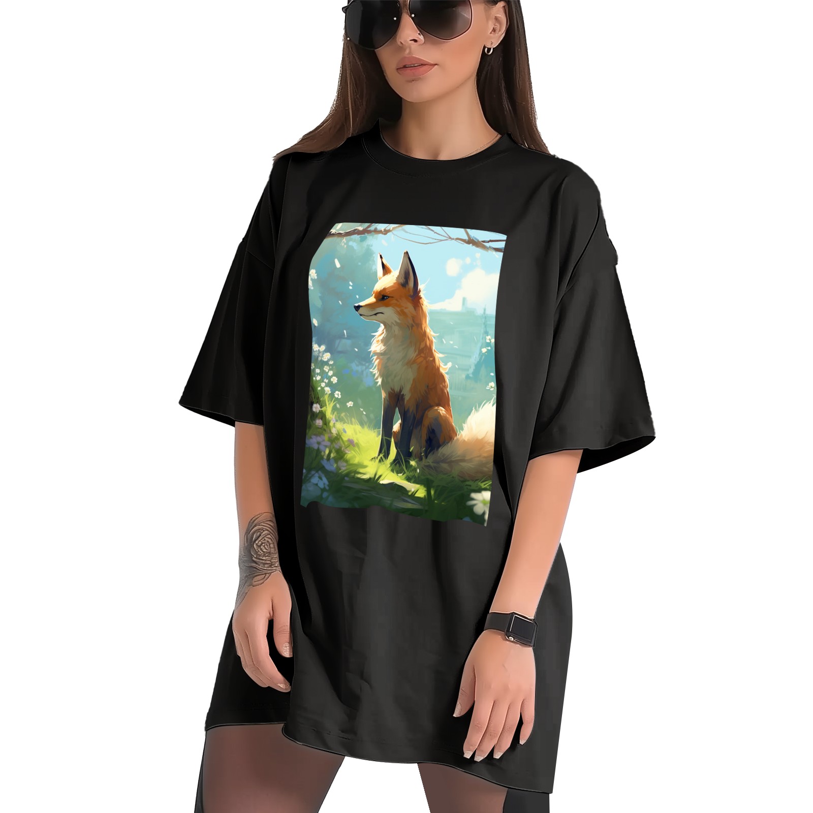 Plus Size Shirt for Women Black Tops for Women Short Sleeves Shirt for Women Fox 34 T Shirt Crewneck Shirt for Women XS