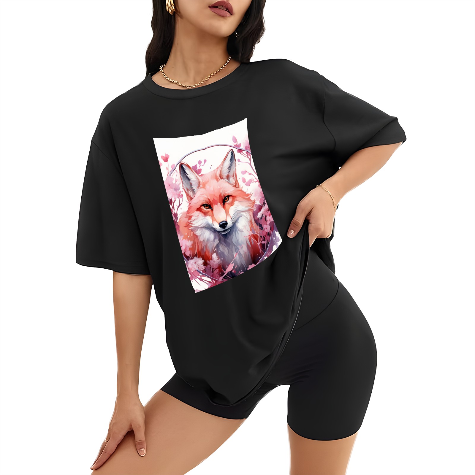 Plus Size Shirt for Women Black Tops for Women Short Sleeves Shirt for Women Fox 33 T Shirt Crewneck Shirt for Women XS