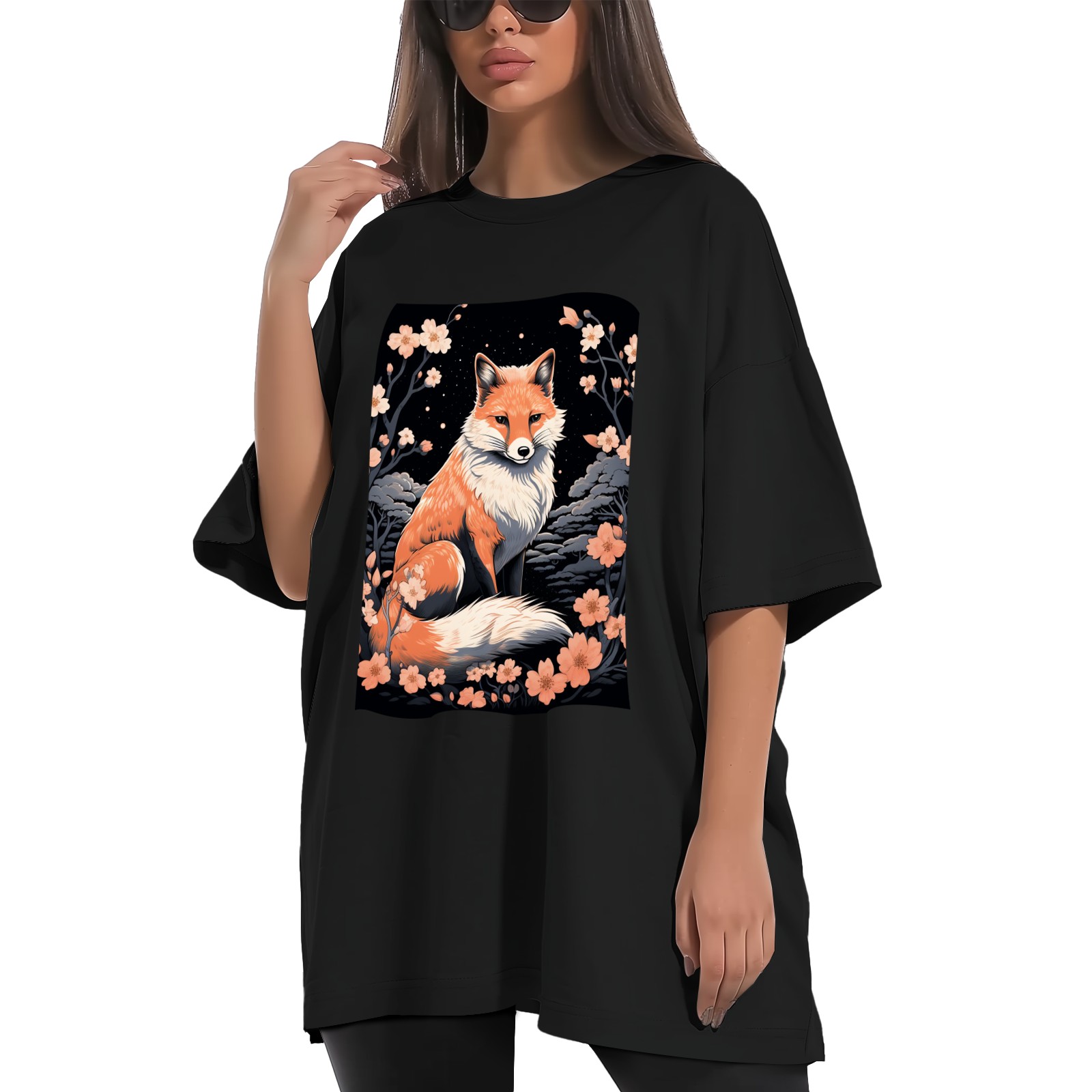 Plus Size Shirt for Women Black Tops for Women Short Sleeves Shirt for Women Fox 31 T Shirt Crewneck Shirt for Women XS