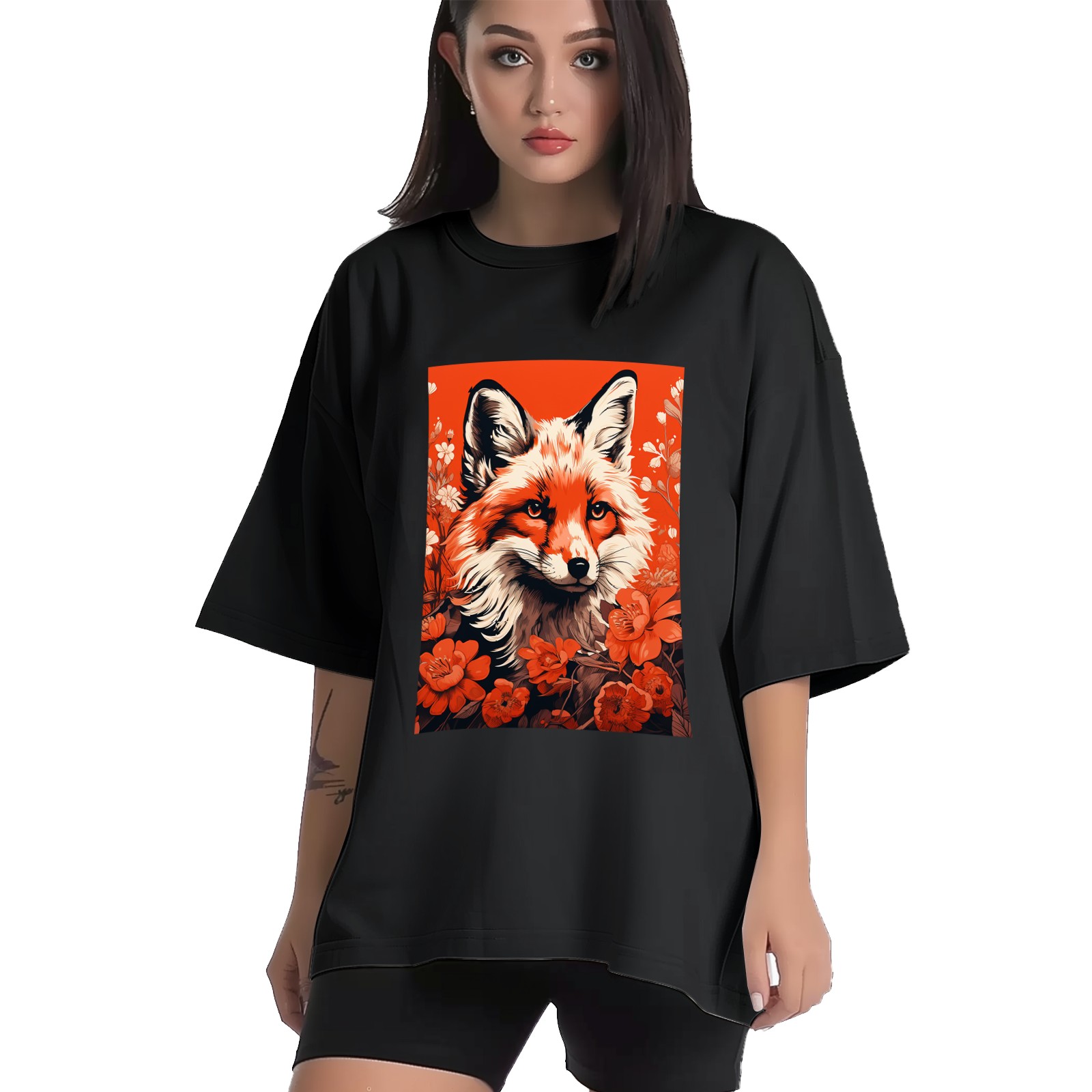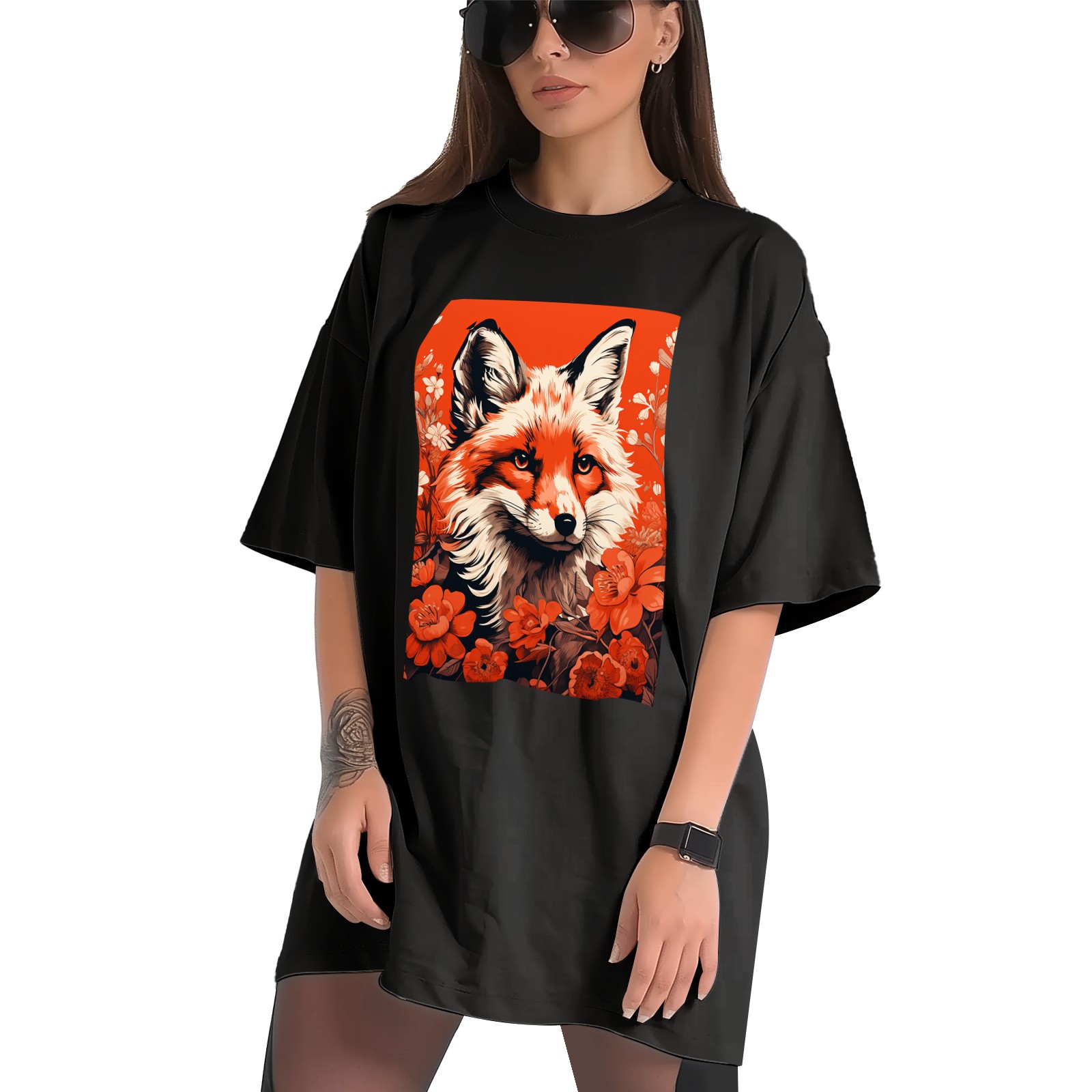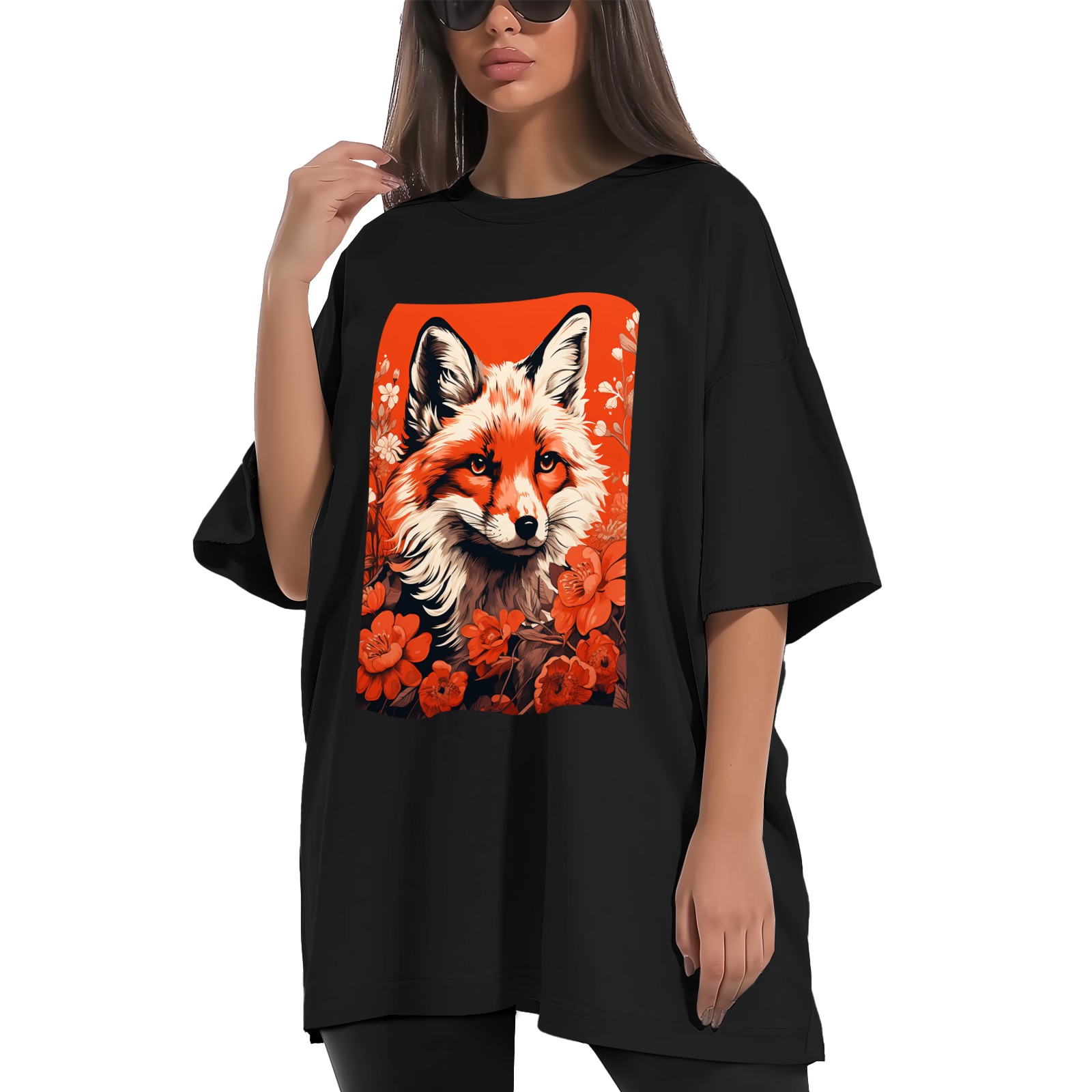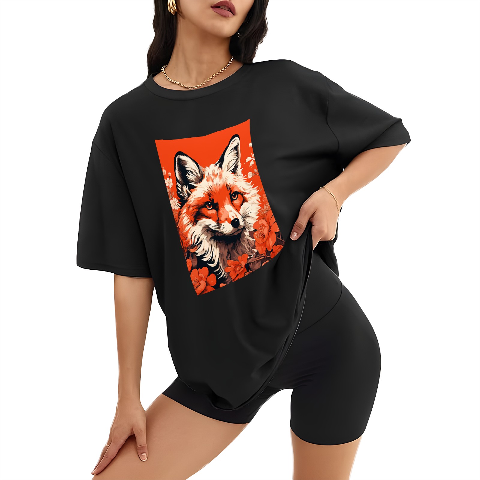 Plus Size Shirt for Women Black Tops for Women Short Sleeves Shirt for Women Fox 28 T Shirt Crewneck Shirt for Women XS